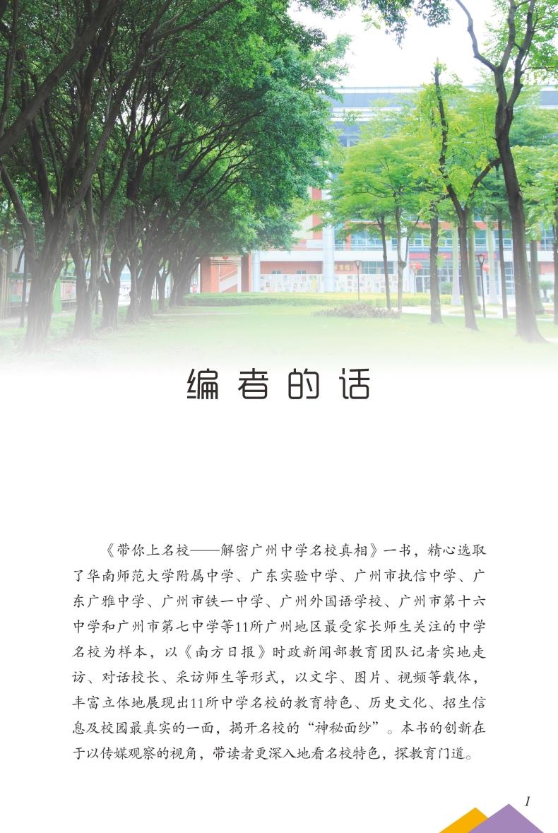 《带你上名校——解密广州中学名校真相》一书详细介绍了广州地区11所名校的最牛特色、校史、名师、学霸和招生政策,揭开了名校的神秘面纱,为广大学子深入了解名校真相、有针对性地选择名校中学就读提供了有效途径。想为中考助力?我们带你上名校!