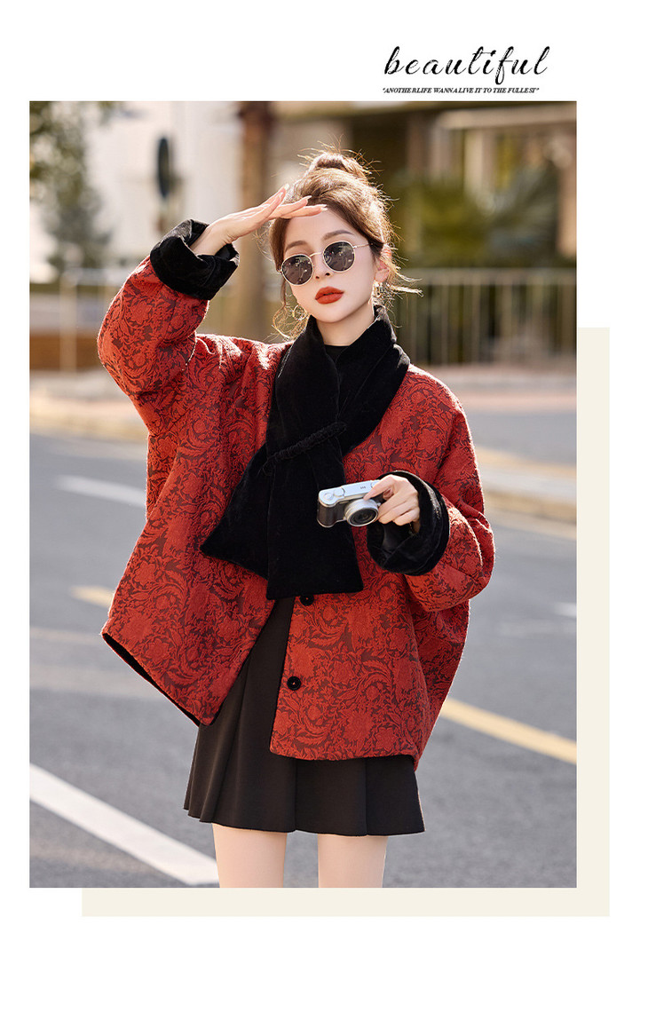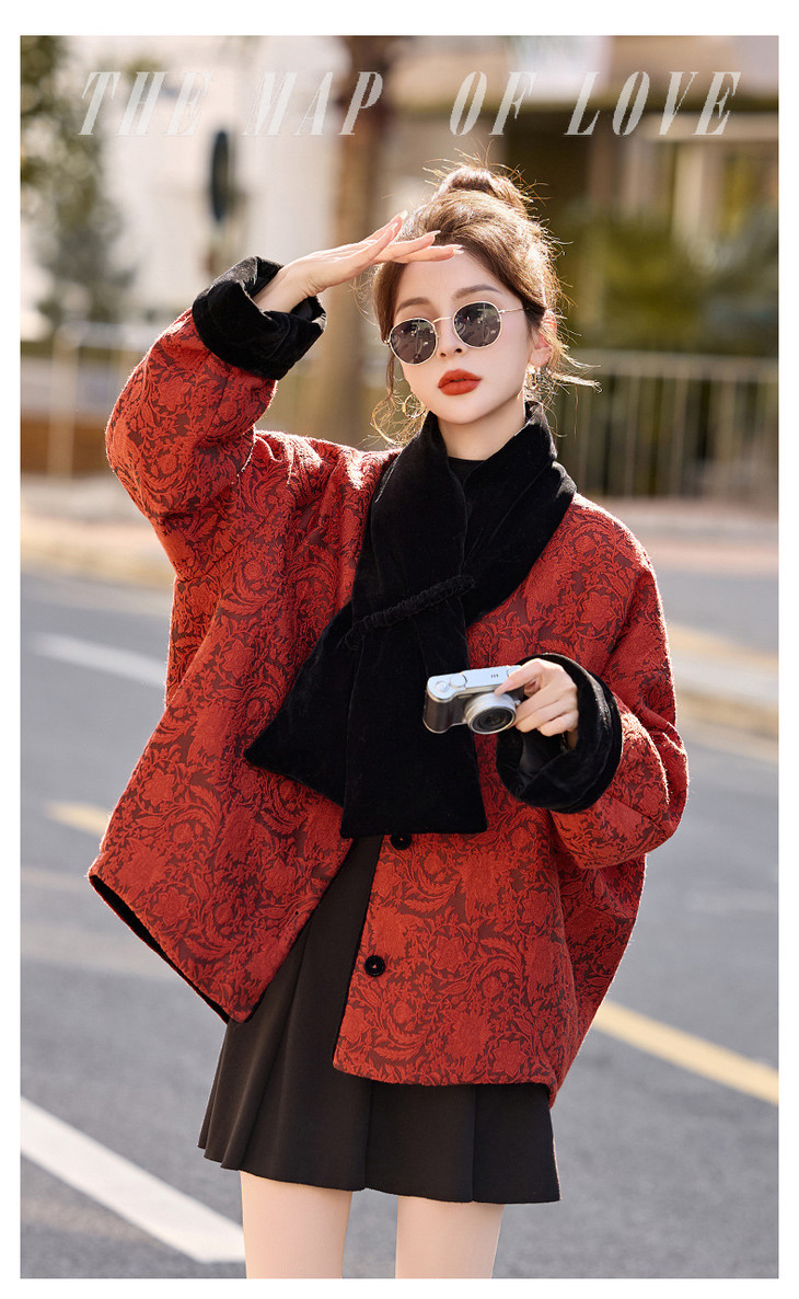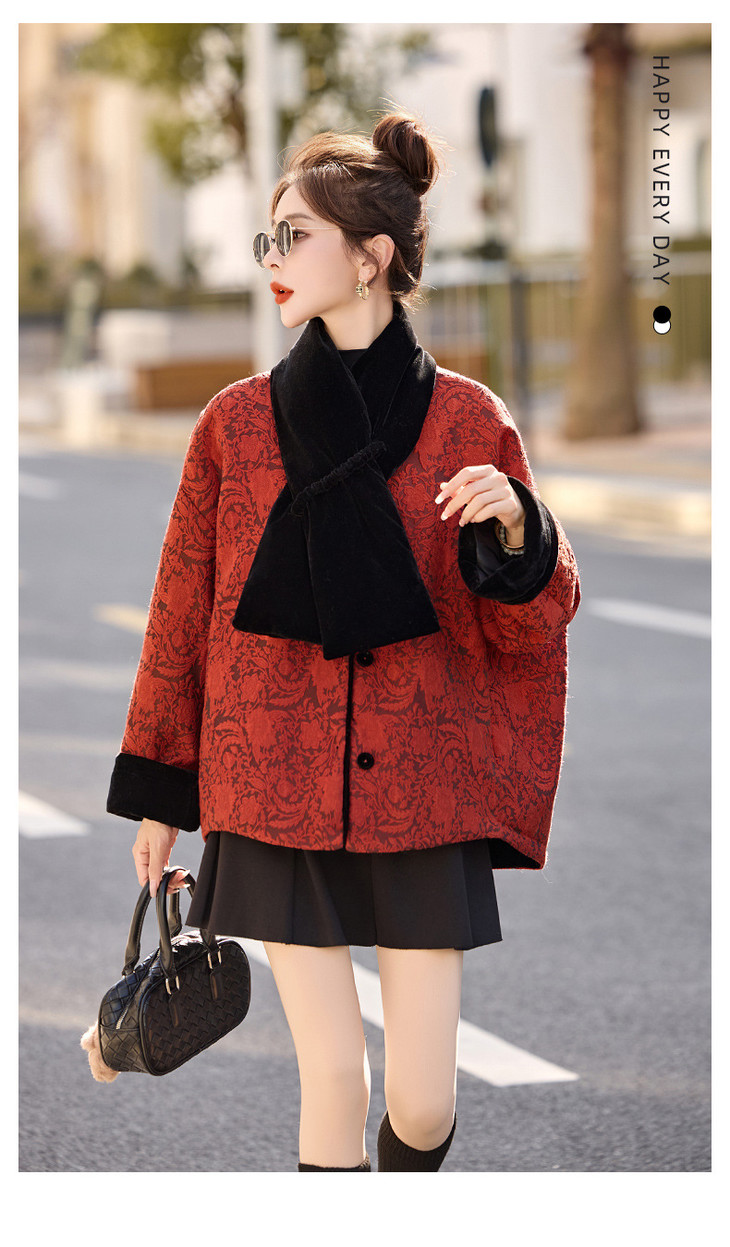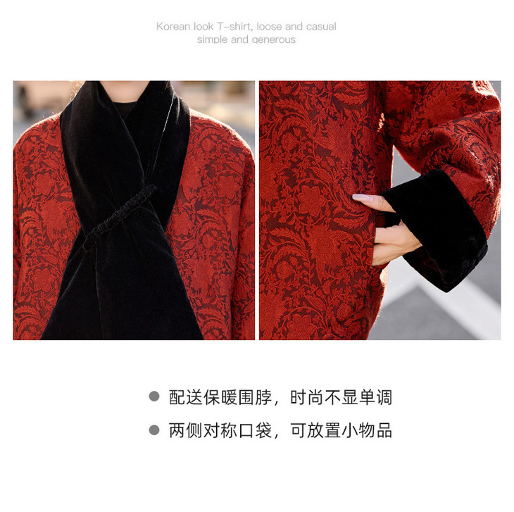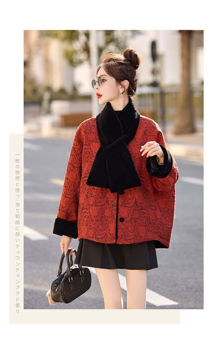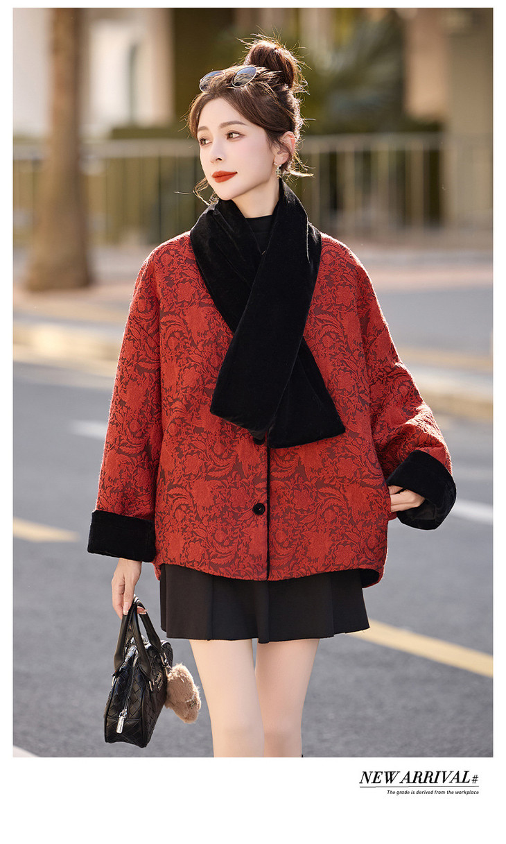 女式羽绒服新中式国风,白鸭绒外套配围巾HR-B5212 商品图4