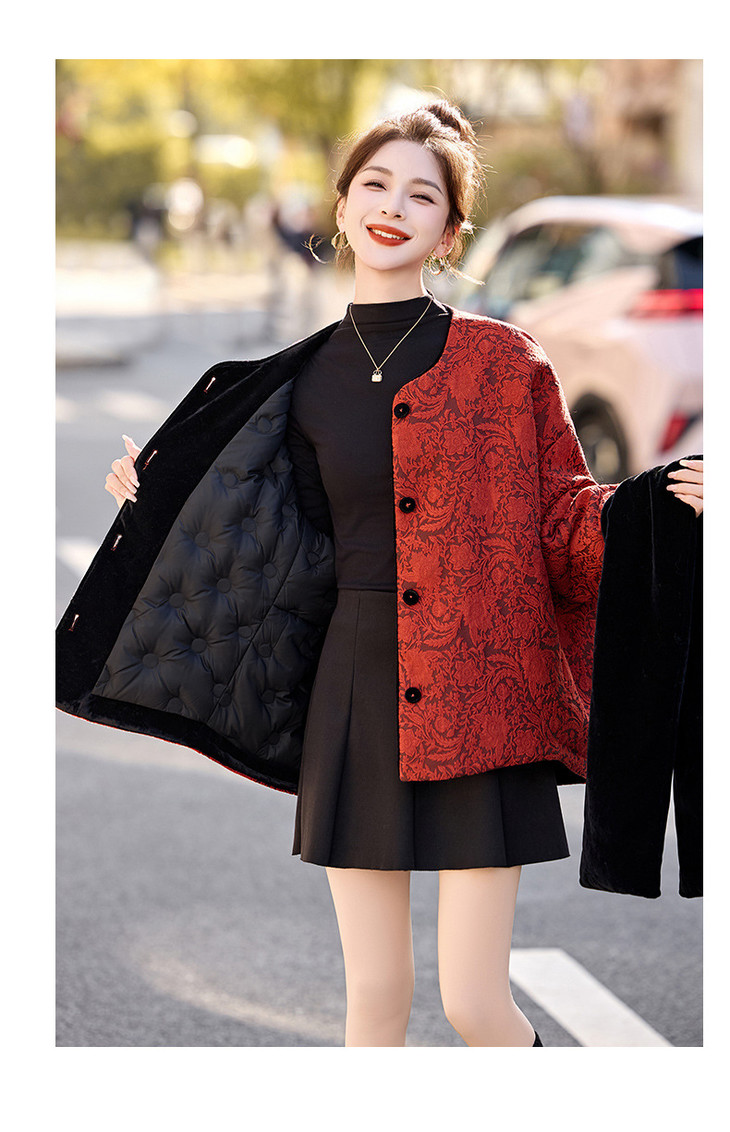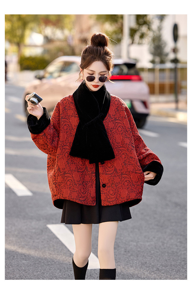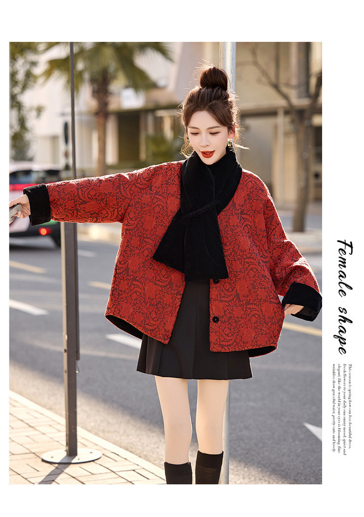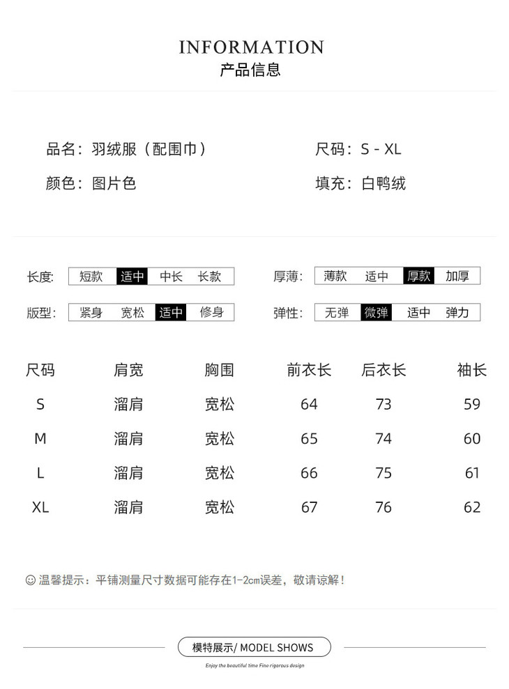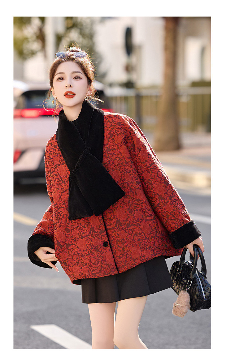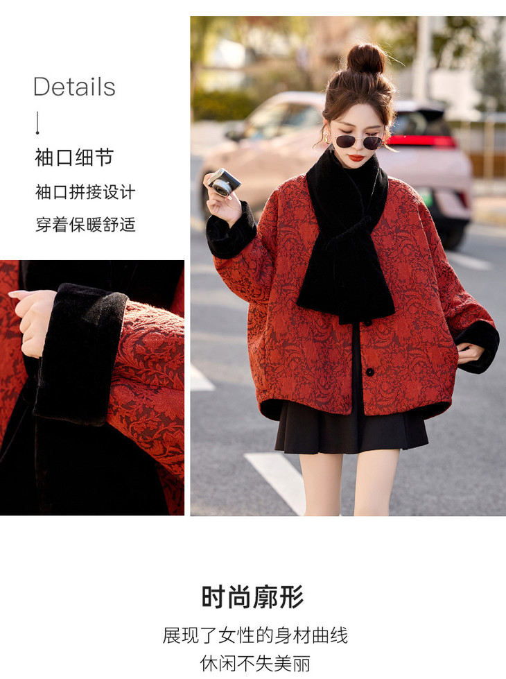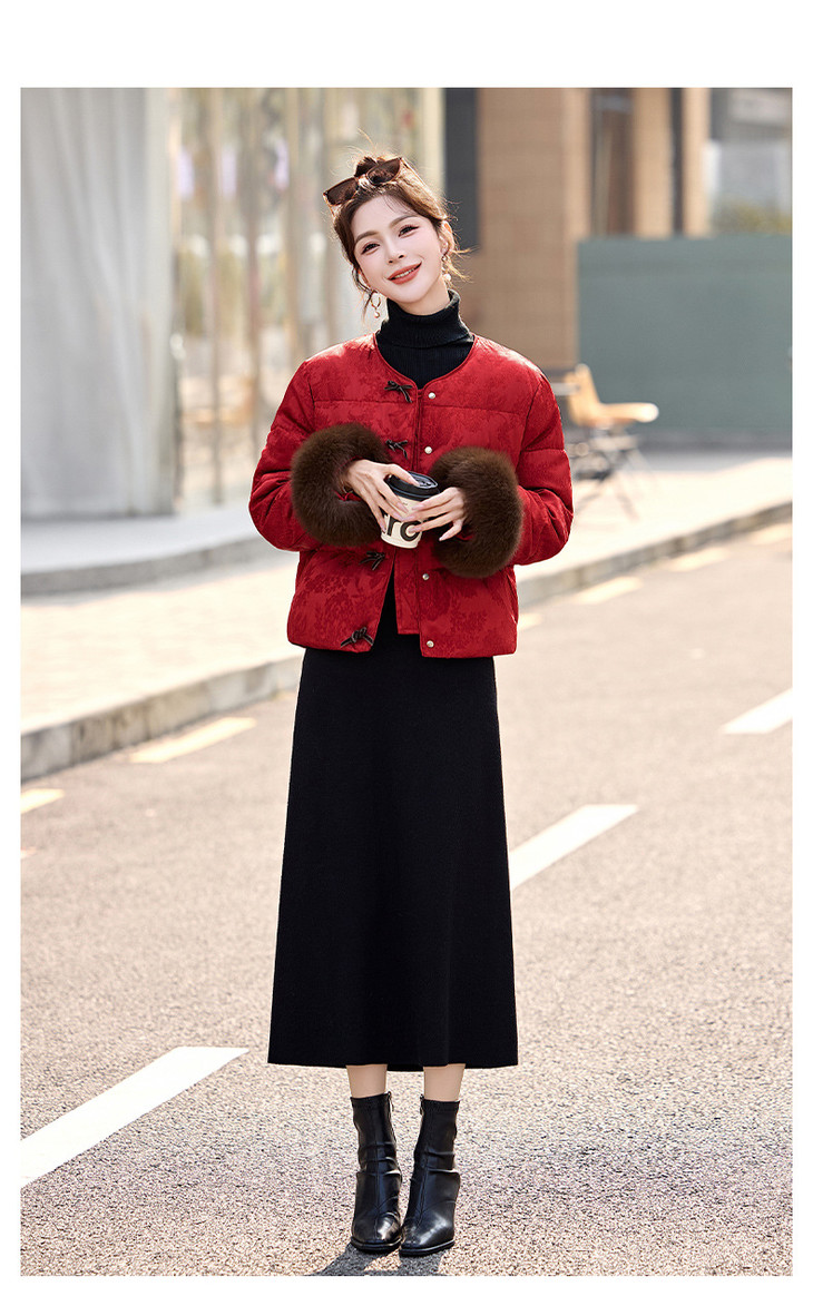 女式羽绒服新中式国风,白鸭绒外套配围巾HR-B5212 商品图4