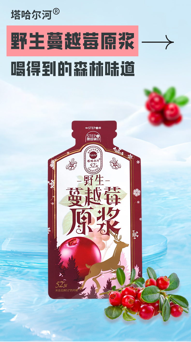 塔哈尔河野生蔓越莓鲜榨原浆果汁整果鲜榨50ml*7袋饮品