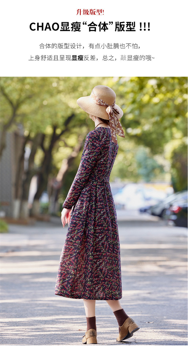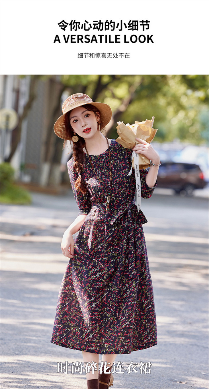 气质遮肚子减龄棉麻,复古裙子长袖碎花连衣裙HR-SYY2657 商品图2