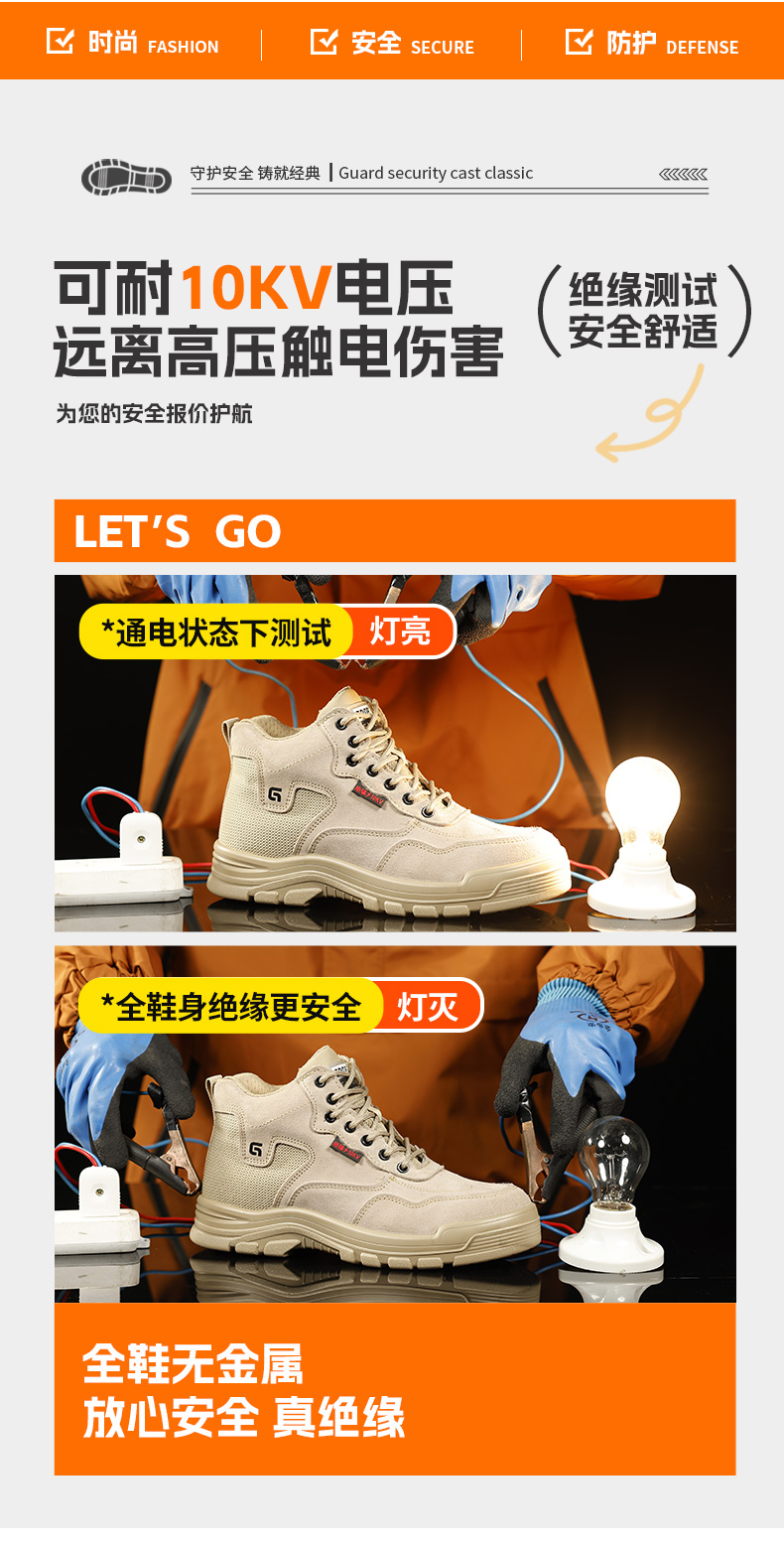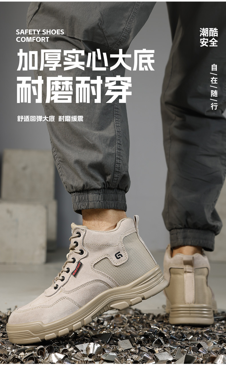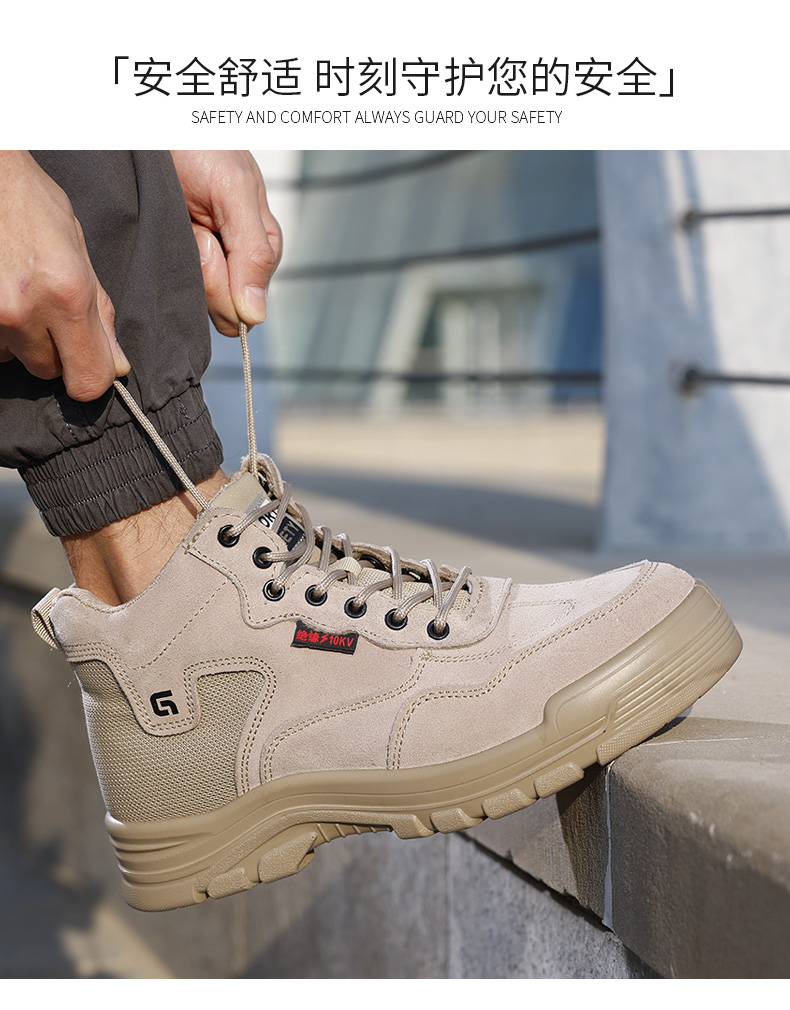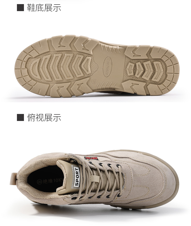 2025新款四季款劳保鞋防砸防刺穿绝缘10KV达标塑包头凯夫拉底实心底反绒皮棕色高帮安全鞋