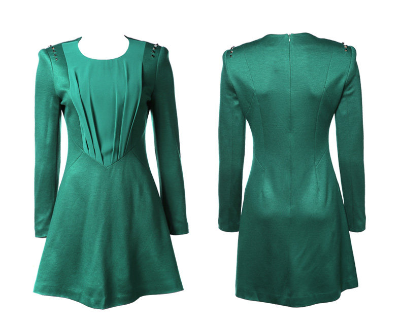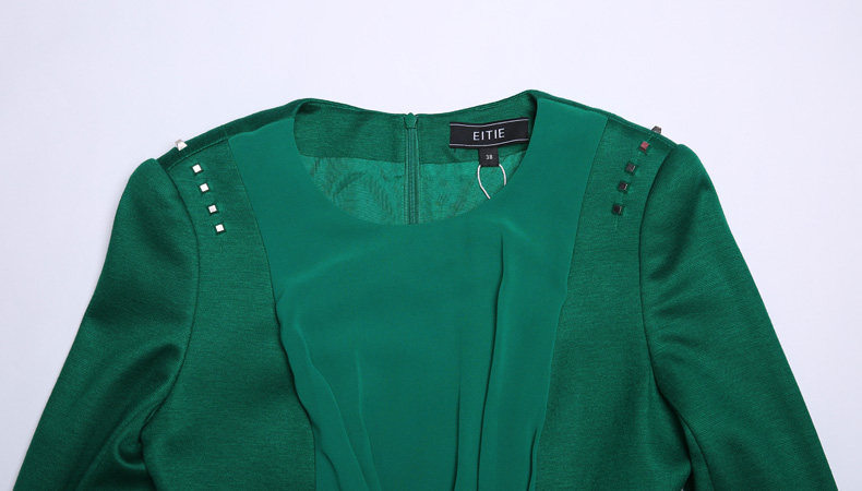 运,修身效果显而易见;肩部金属铆钉装饰,点缀衣身,