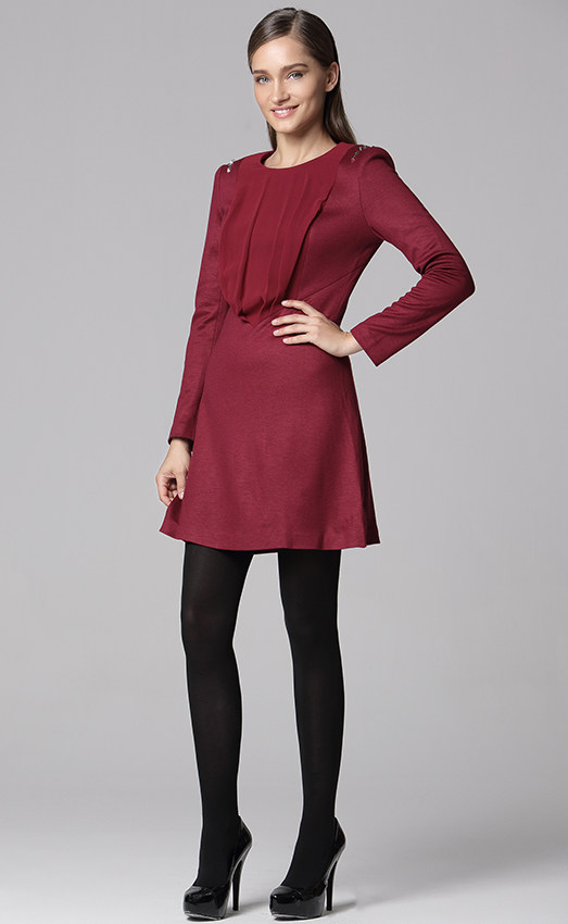 同色系异材质拼接,融入褶皱元素,立体灵动,视觉层次更丰盈;腰部V形分割设计,匠心独
