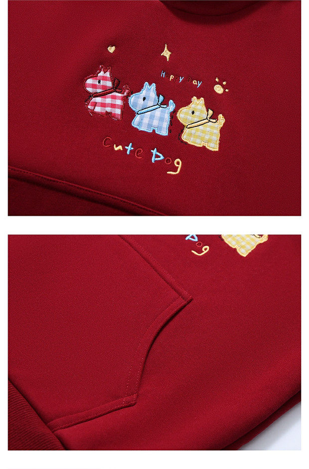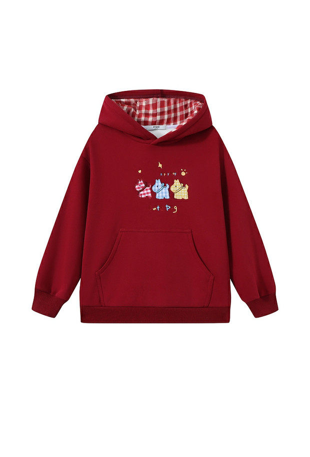 【MQD】【马年限定】童装女童新年连帽卫衣冬季加绒儿童卡通拜年服