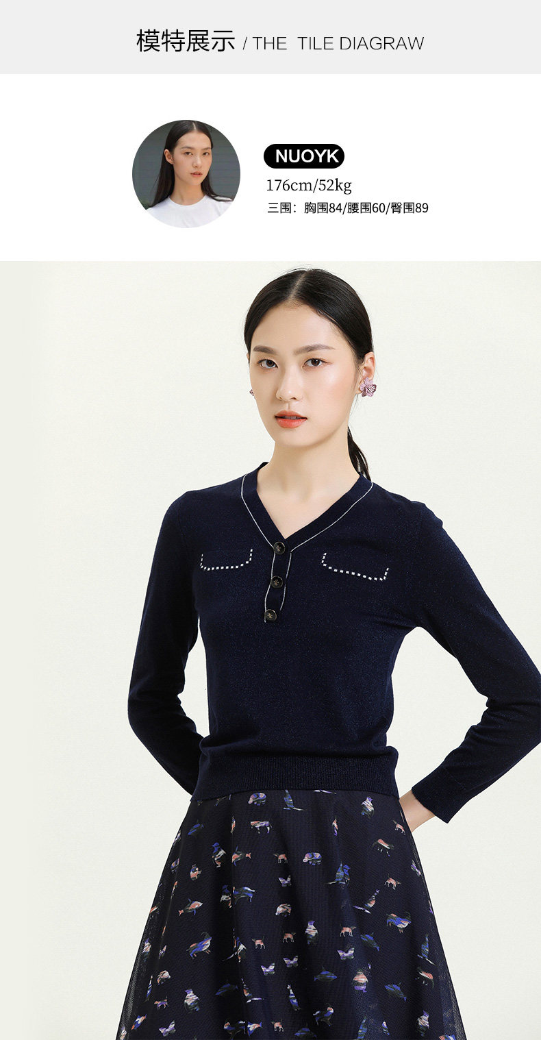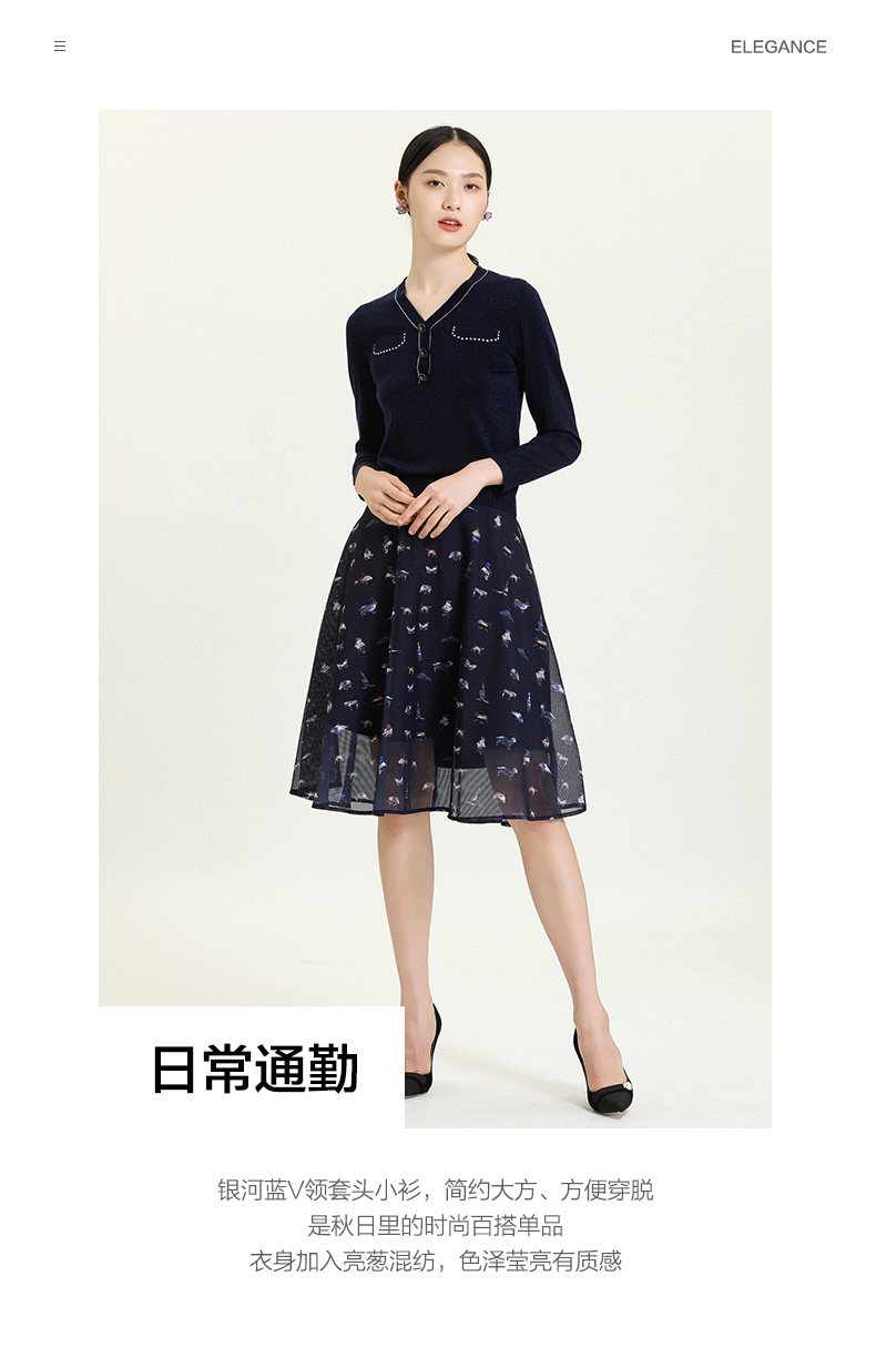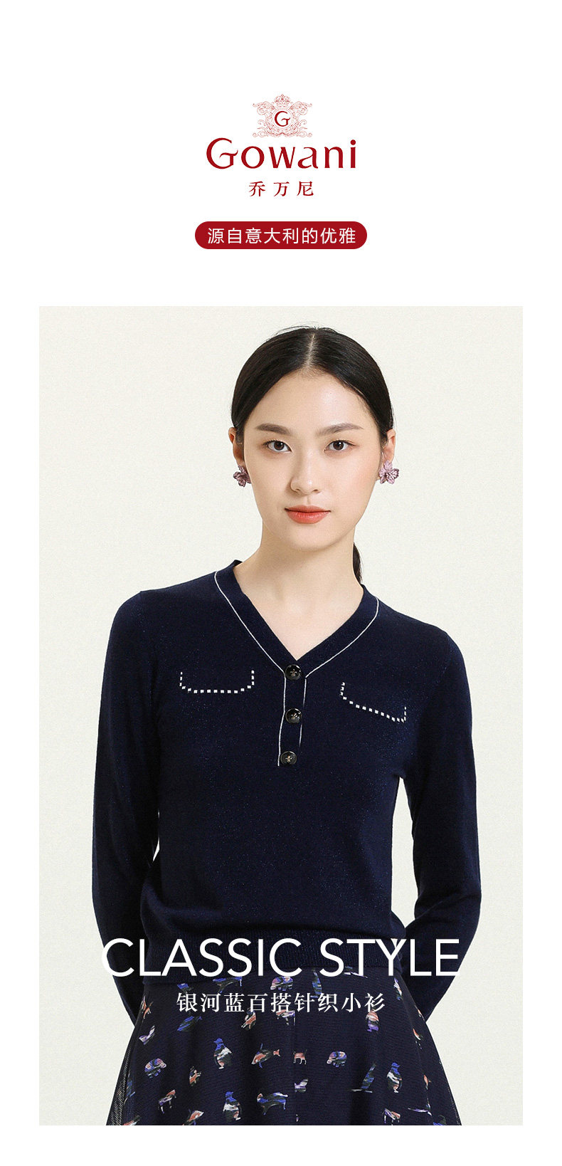 乔万尼秋新款针织衫V领显瘦小衫百搭休闲气质优雅套头上衣ES3M603
