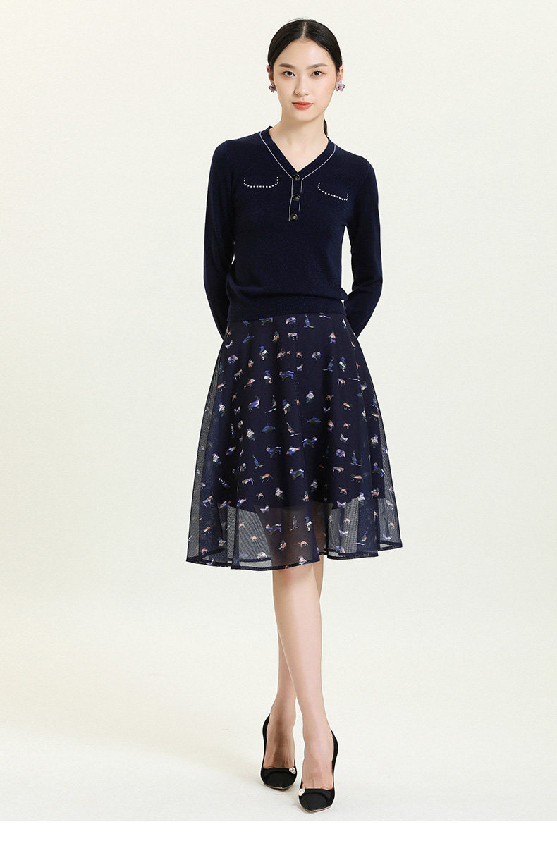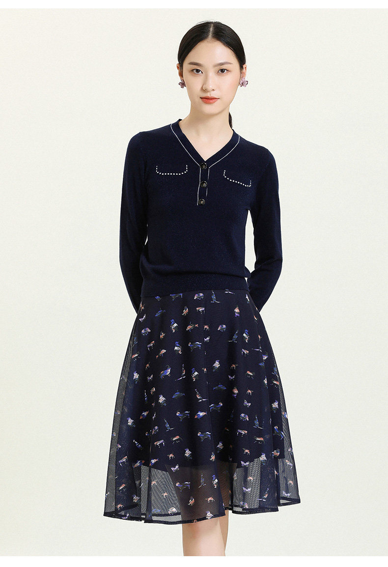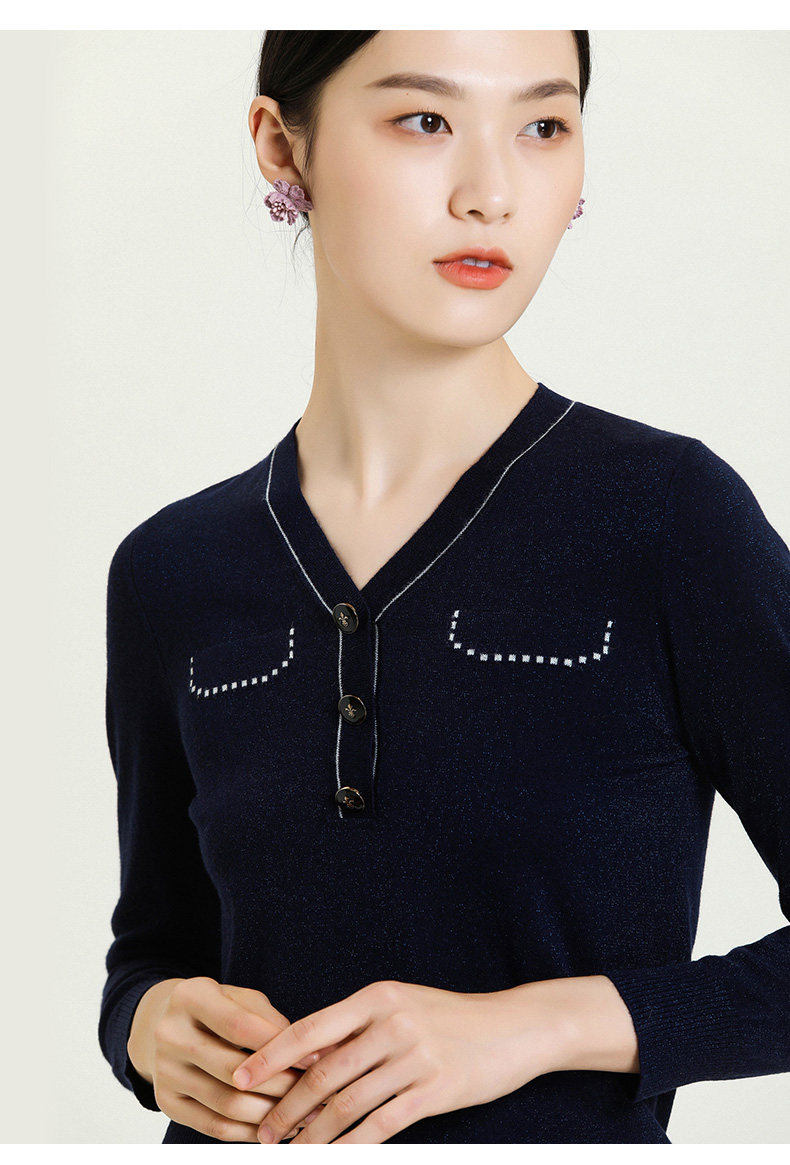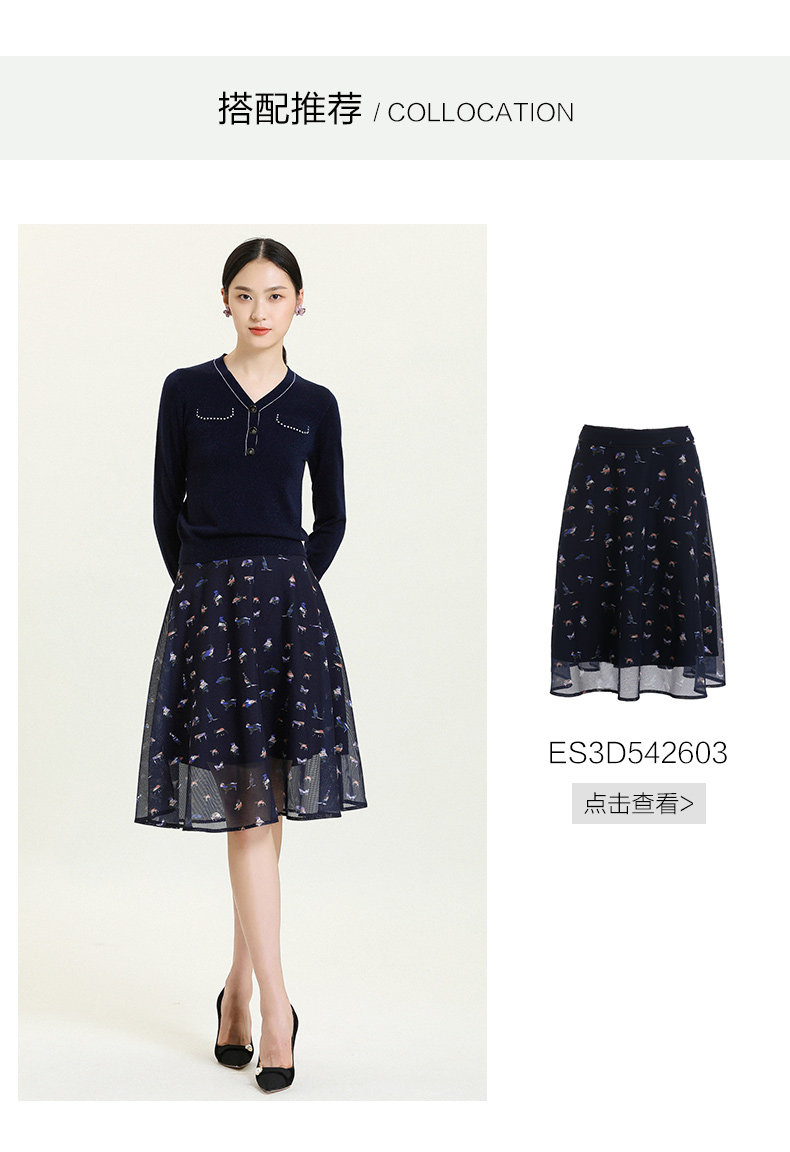 乔万尼秋新款针织衫V领显瘦小衫百搭休闲气质优雅套头上衣ES3M603