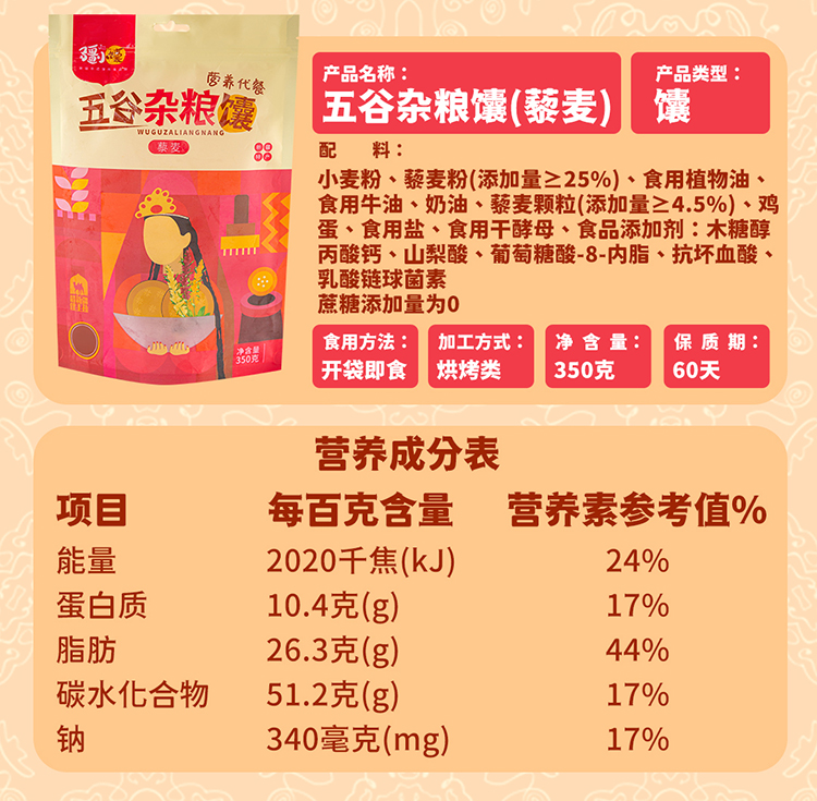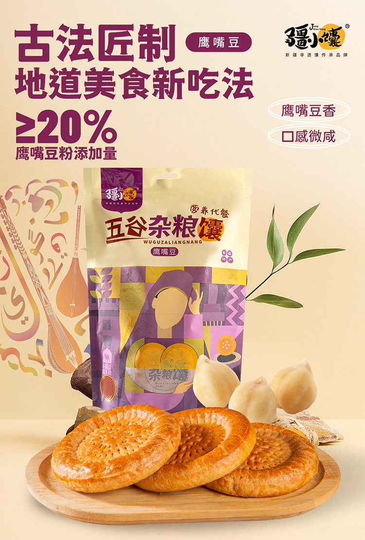 五谷杂粮馕350g 玉米高粱藜麦鹰嘴豆燕麦 营养代餐 新疆礼物新疆特产美食