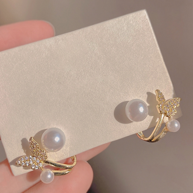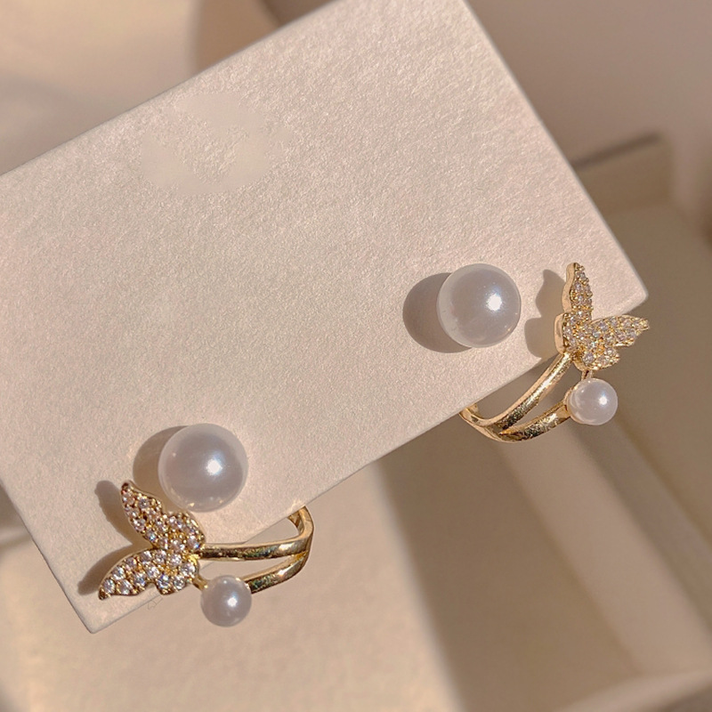 JU-A392新款鱼尾珍珠耳环女 小众设计感蝴蝶耳坠气质耳钉耳饰