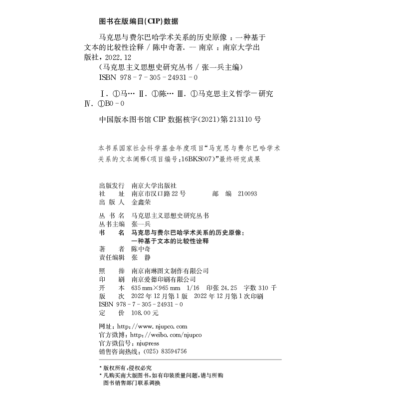 本书以文本学解读为基础,遵循逻辑与历史相统一的方法,全面梳理了马克思与费尔巴哈之间的学术关系的形成、发展和演变的全过程,厘清了马克思与费尔巴哈之间的思想债务关系,提出了诸多具有独到价值的学术观点,能够为当前国内学界系统深化对这一问题的研究提供有益借鉴。