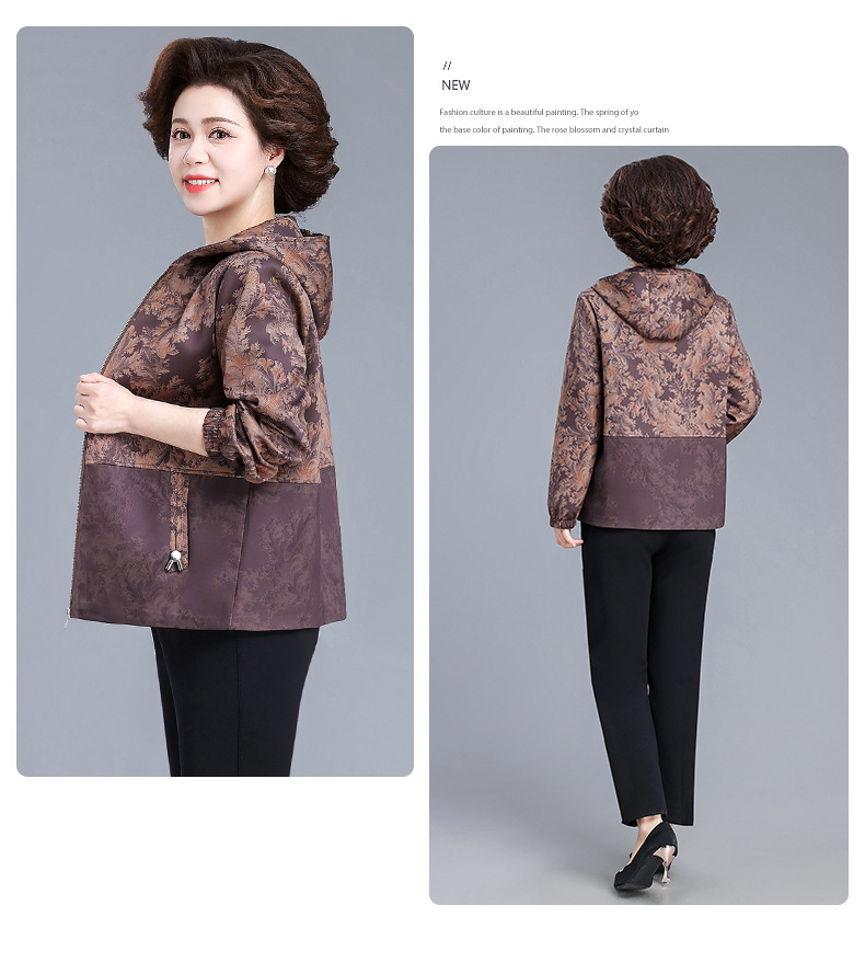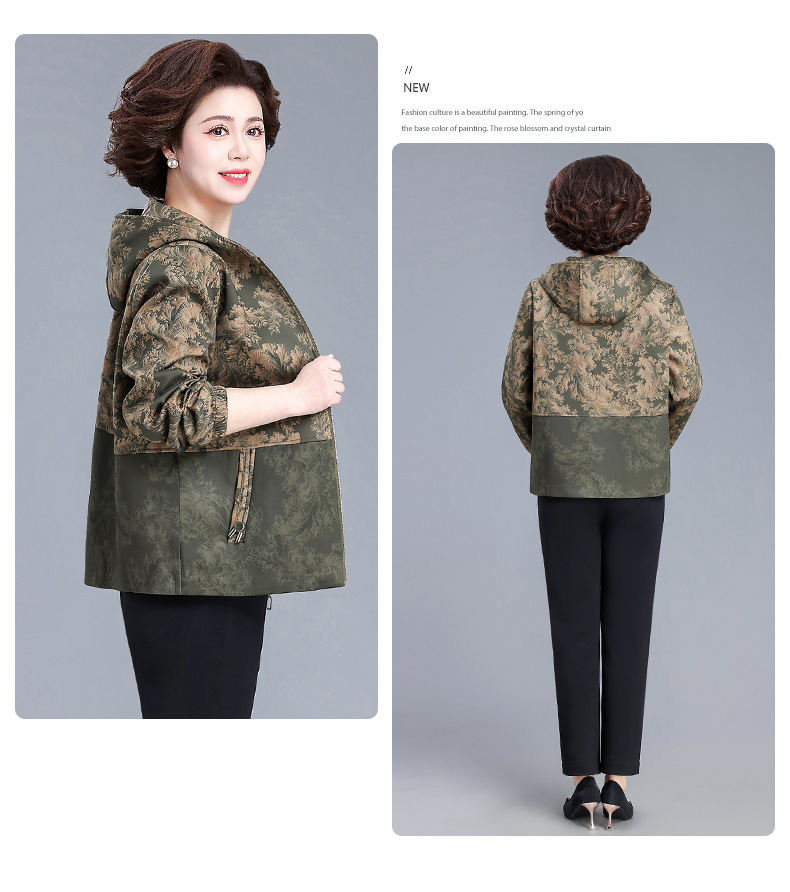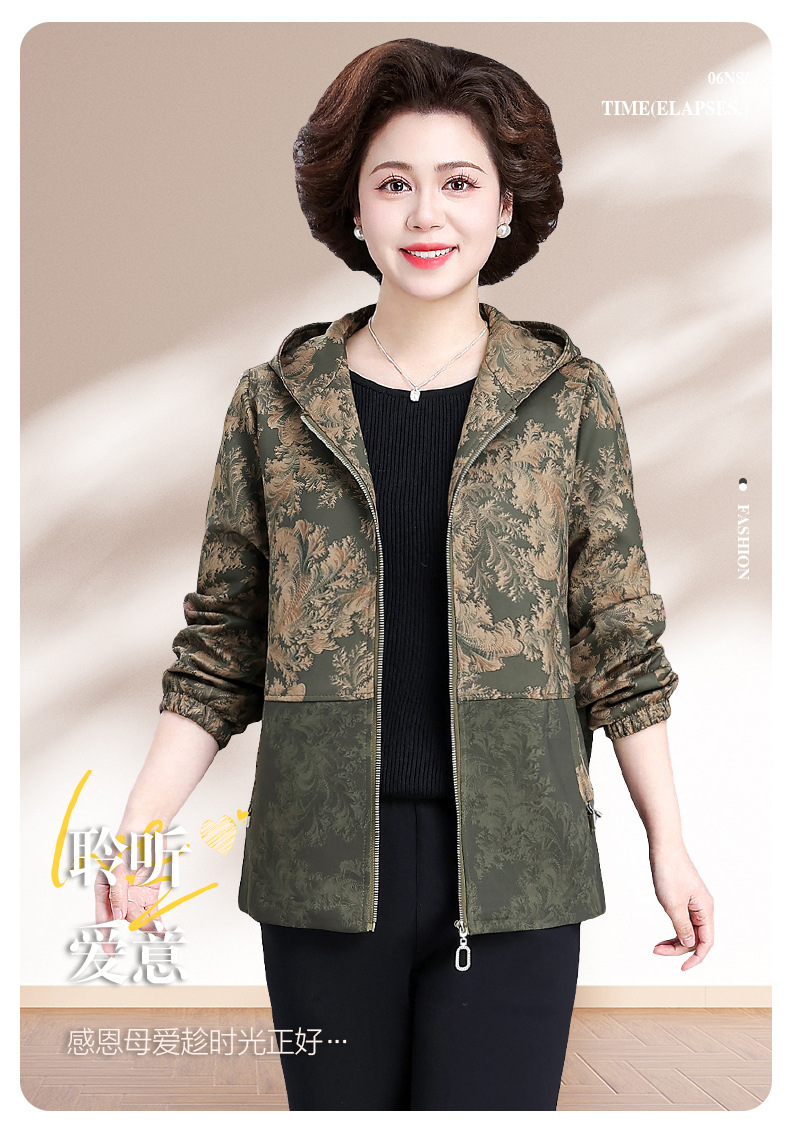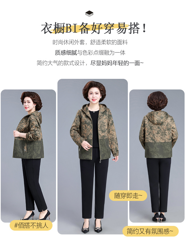 XY-6619妈妈春装外套2025新款中老年人春秋季休闲夹克上衣奶奶大码风衣女