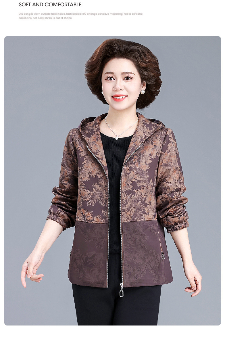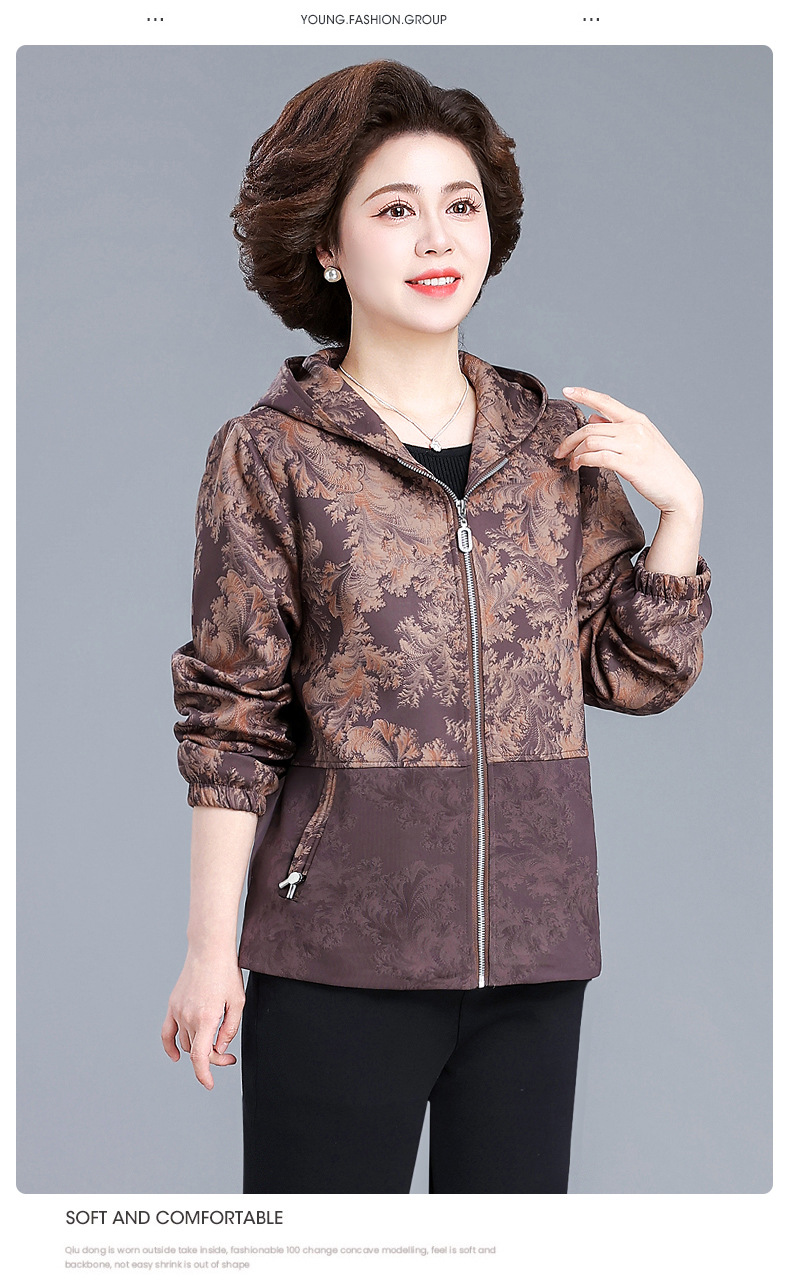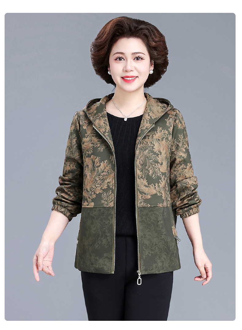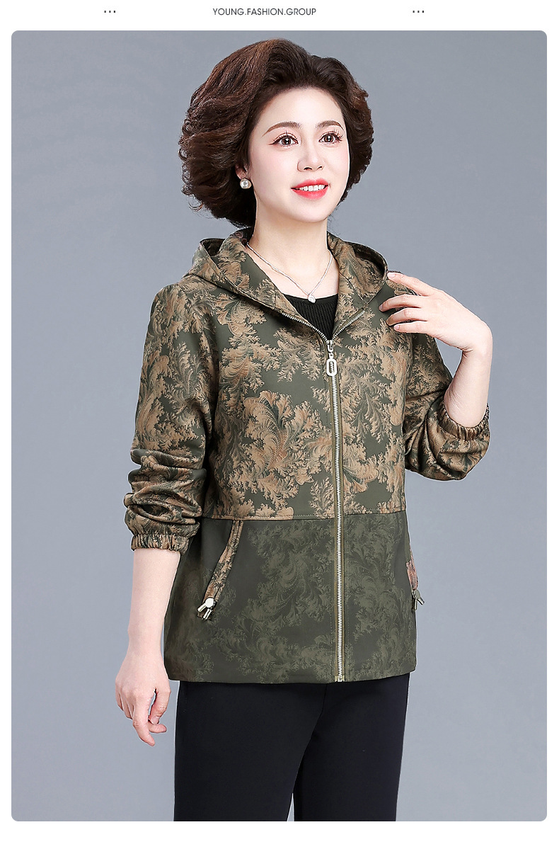 XY-6619妈妈春装外套2025新款中老年人春秋季休闲夹克上衣奶奶大码风衣女