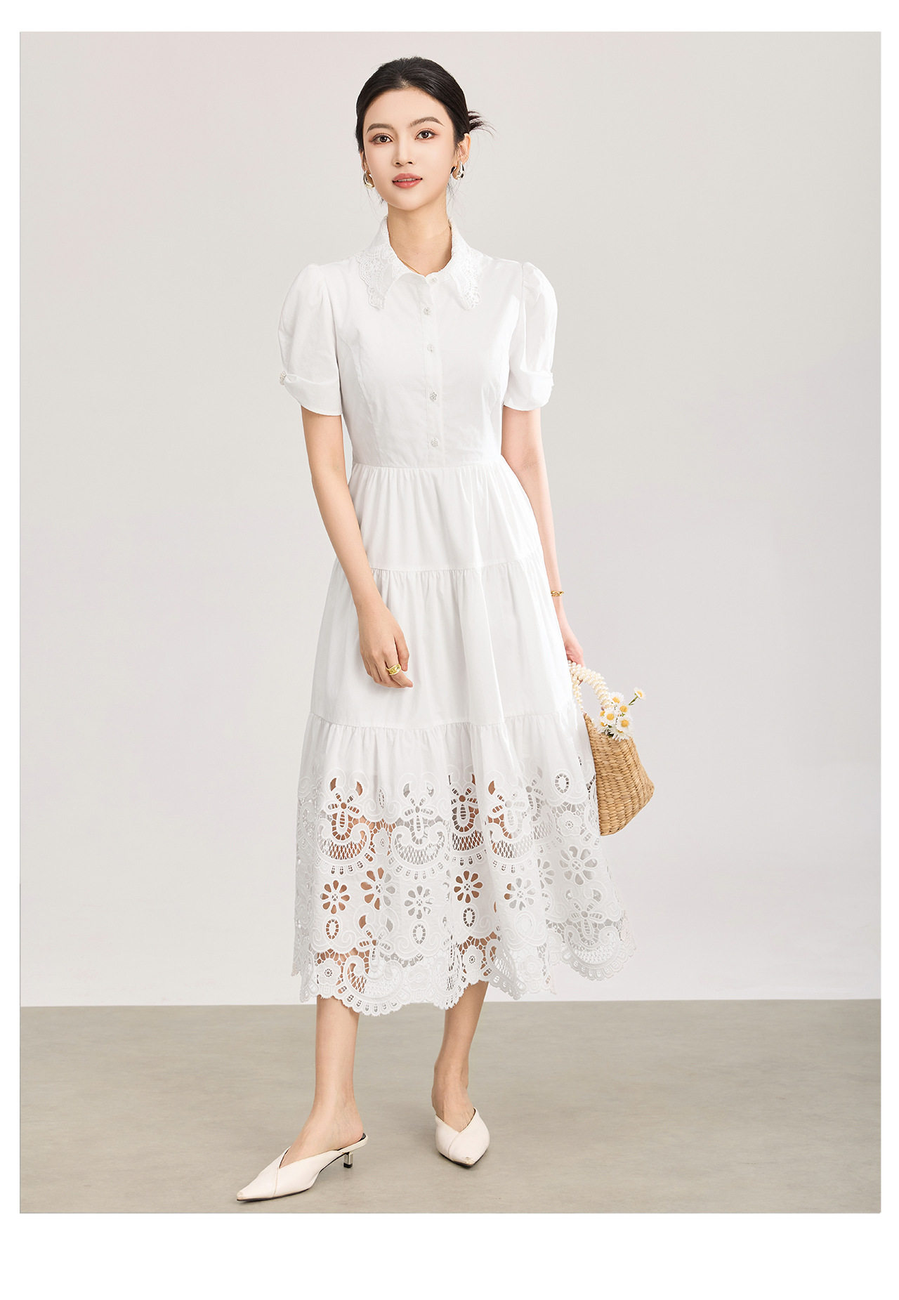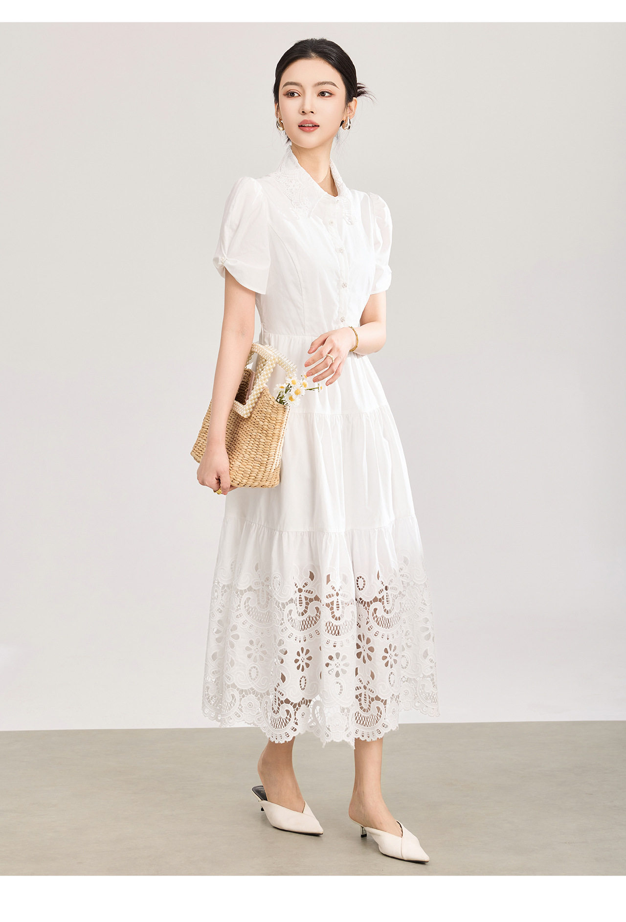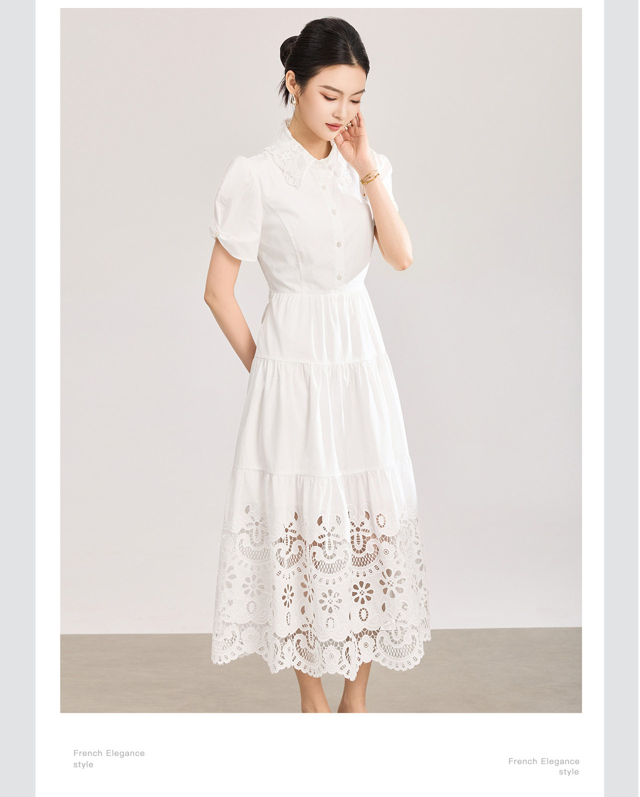 「高货wl」全新升级【铂金会员367/天猫489/差价122】(12734)洛诗琳法式气质镂空绣花连衣裙2026夏季水溶蕾丝收腰裙