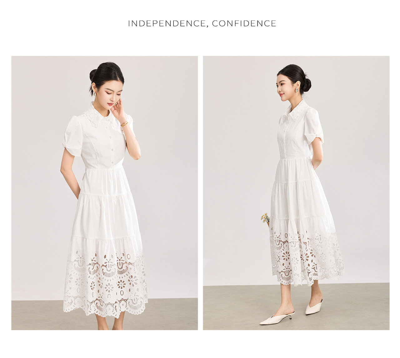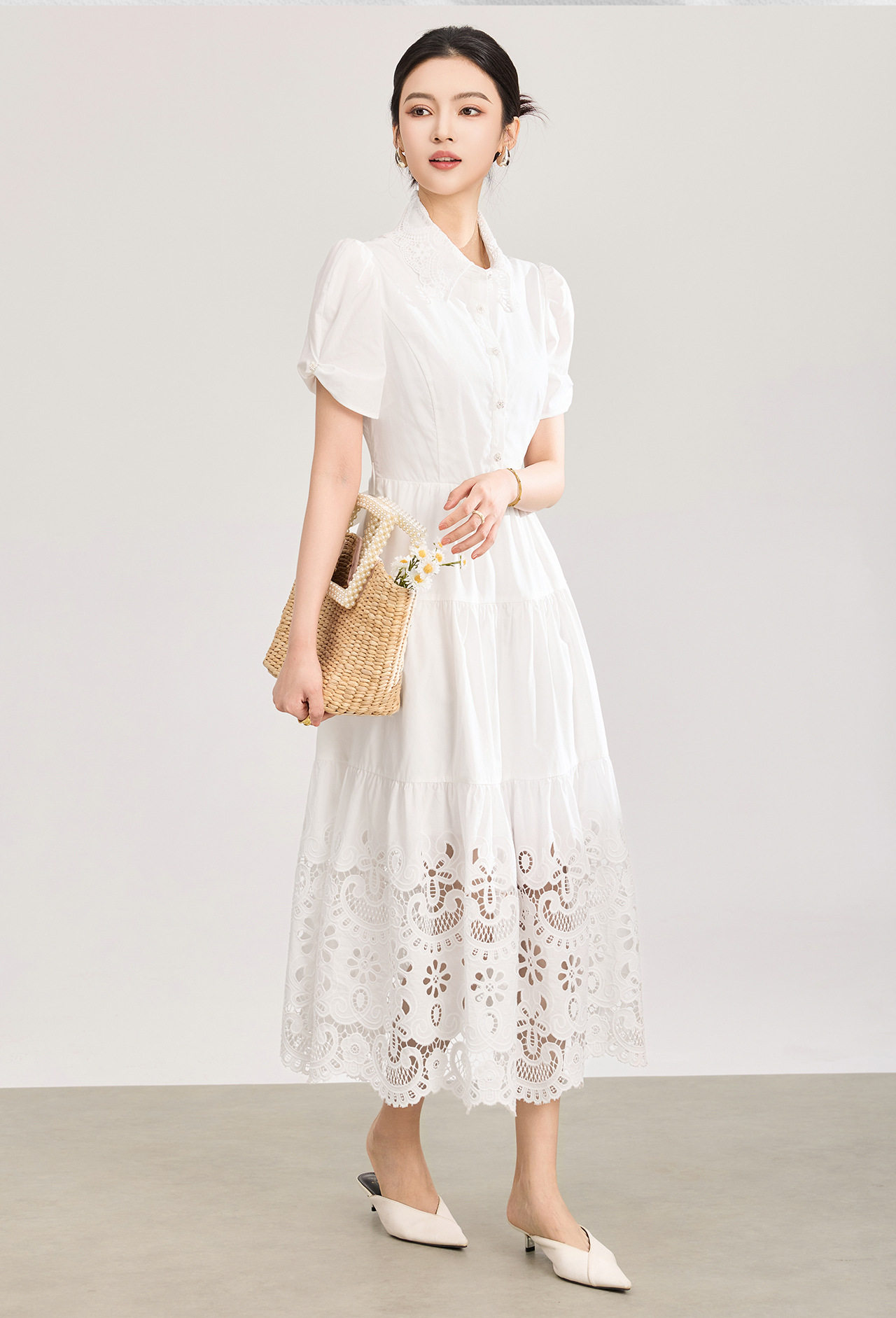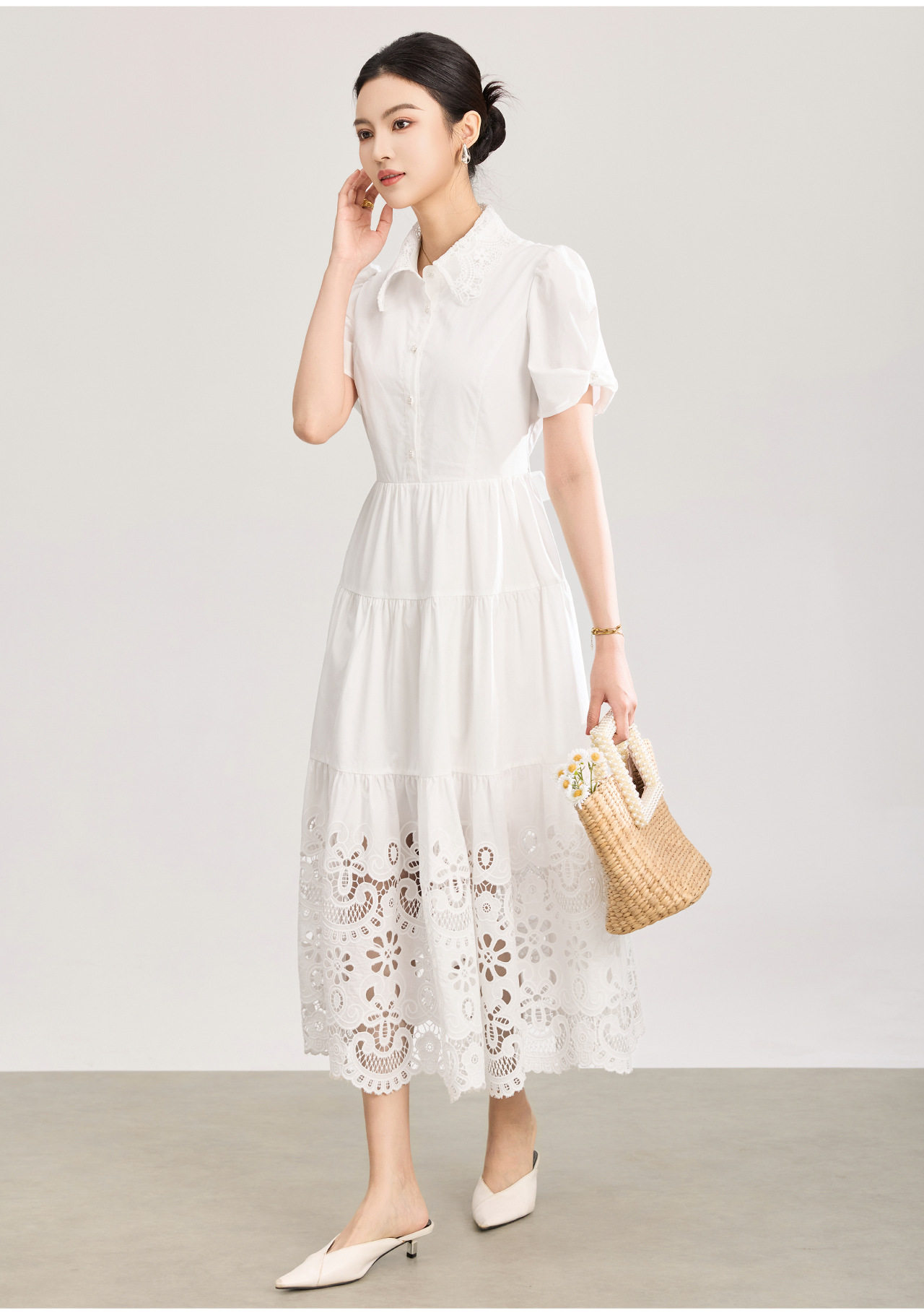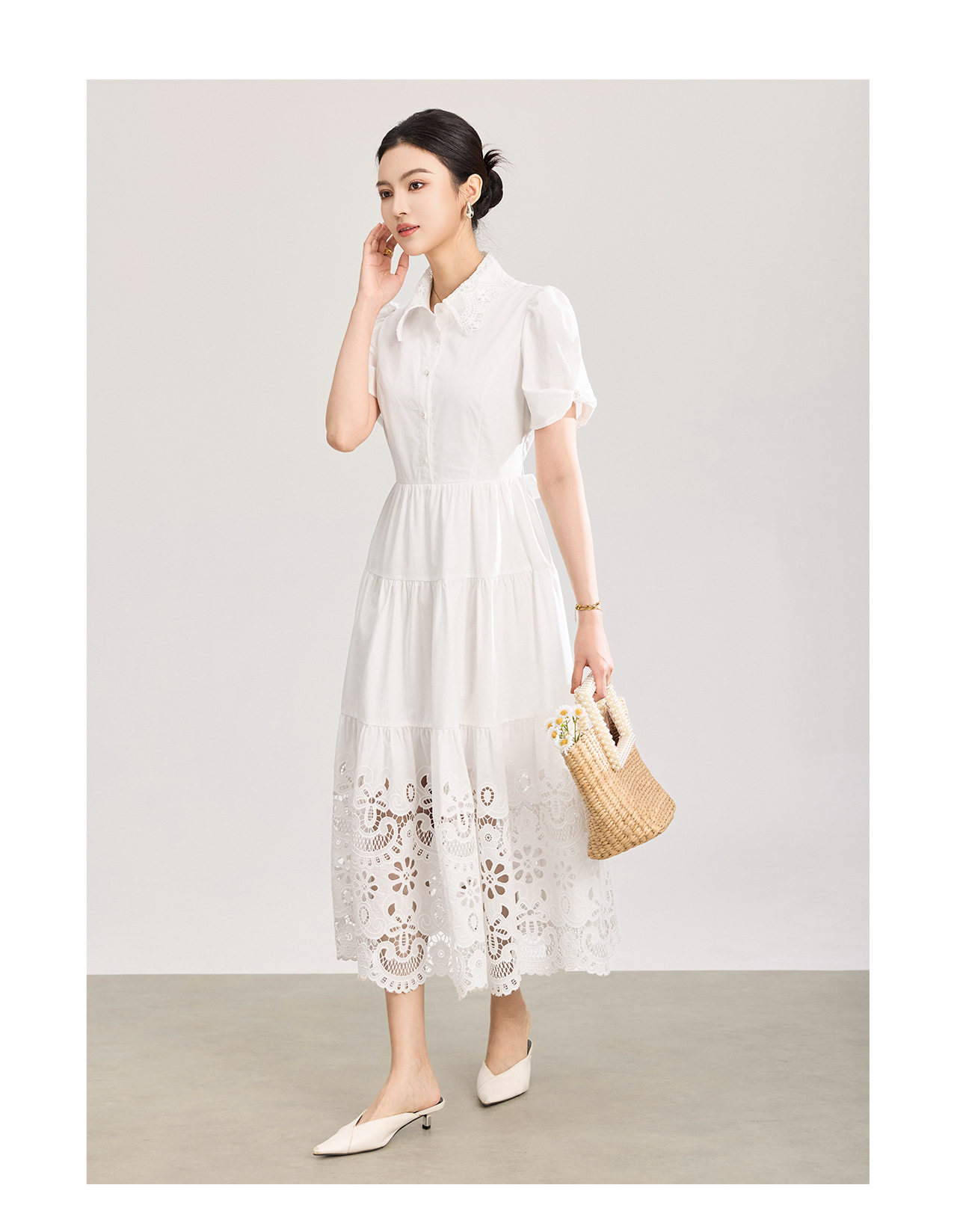 「高货wl」全新升级【铂金会员367/天猫489/差价122】(12734)洛诗琳法式气质镂空绣花连衣裙2026夏季水溶蕾丝收腰裙