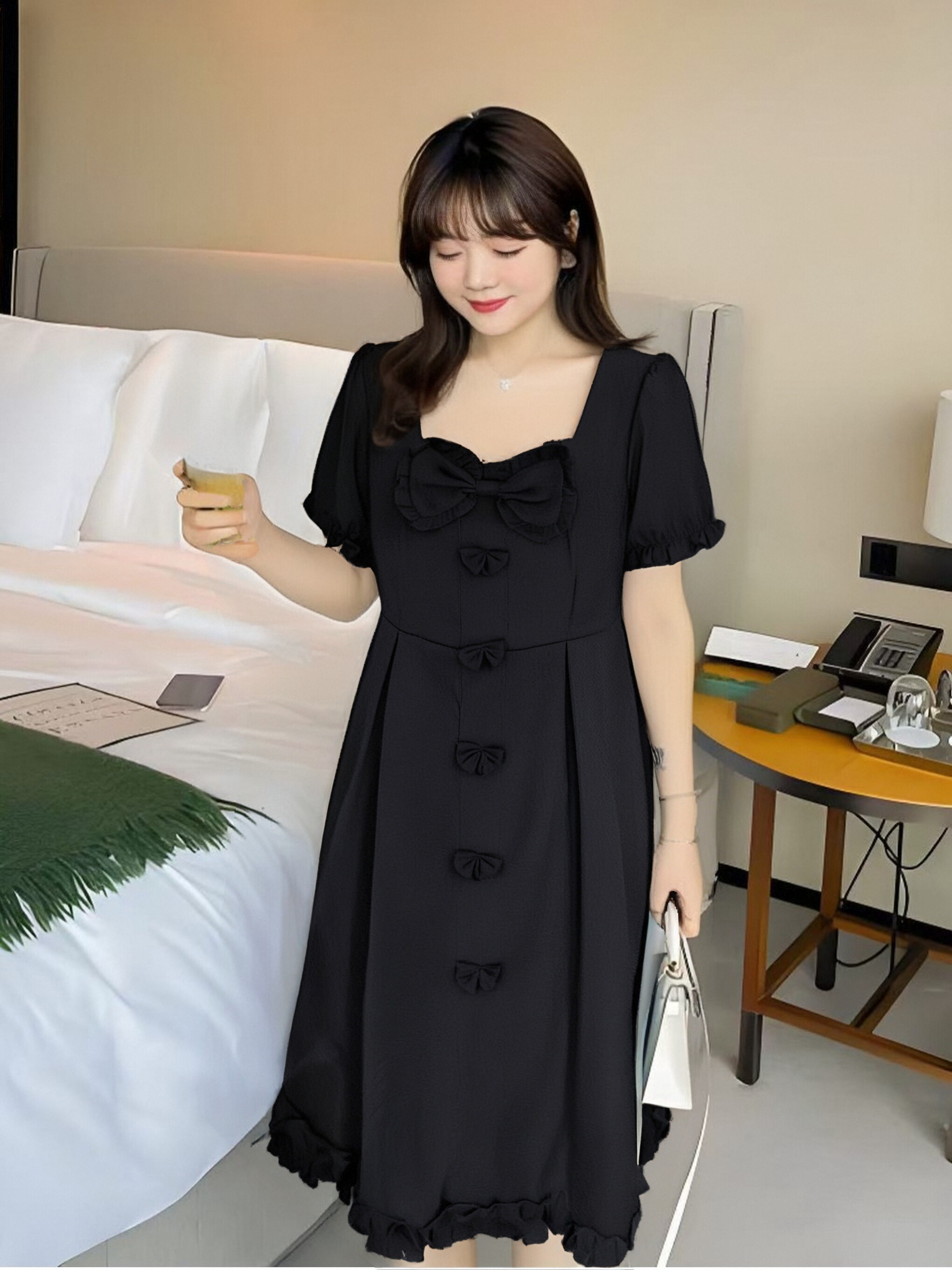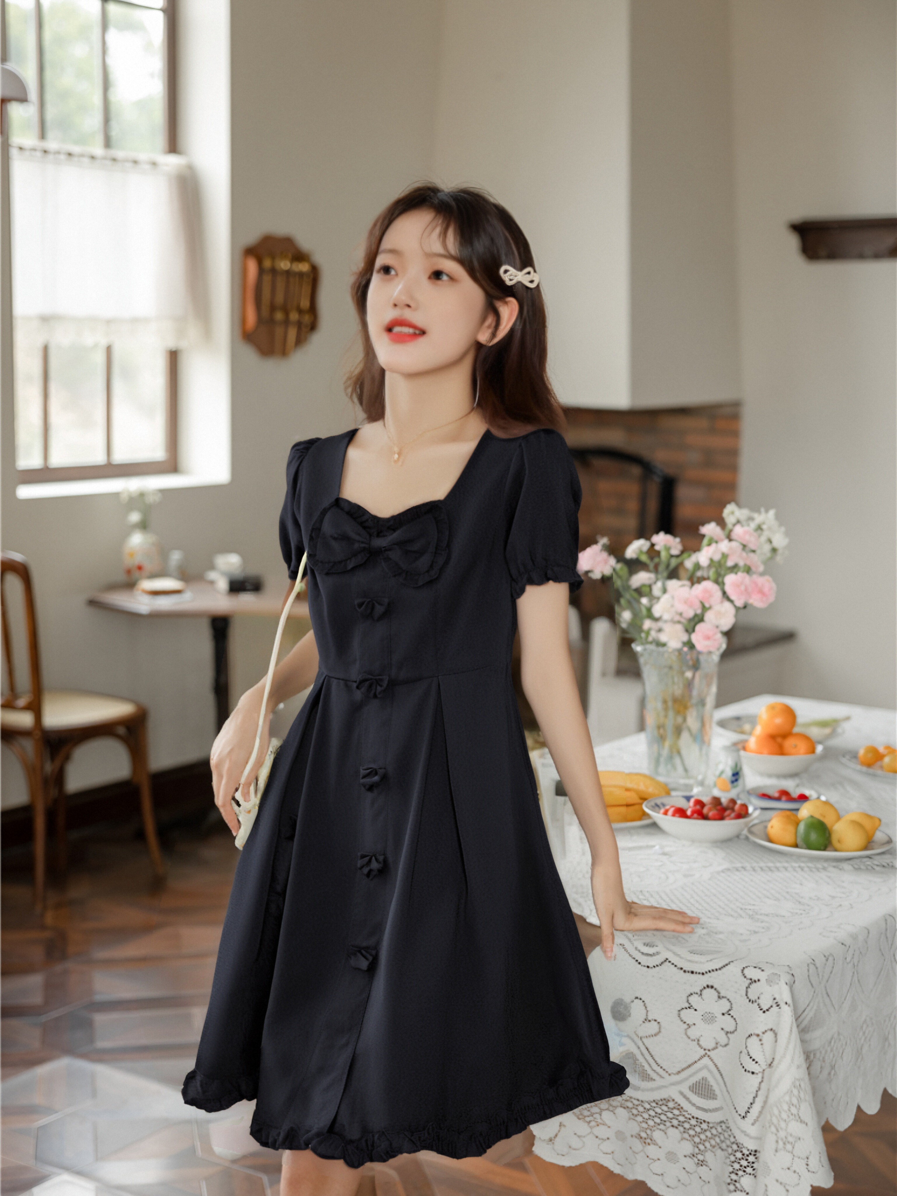 超值购【诗铭洛可】XCA394 连衣裙蝴蝶结花边下摆宽松裙子A9-3