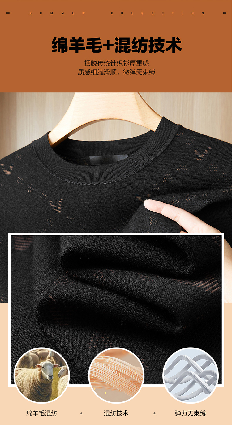 【丝光羊绒】【DKP】大依优型丝光羊绒云感绵羊毛短袖男士秋季新款保暖时尚男大码针织加肥丝光肥佬短袖毛衣7A抗菌