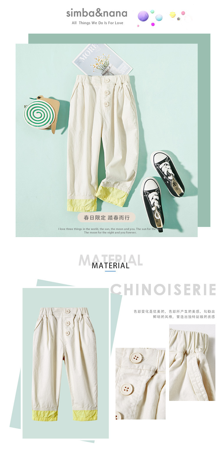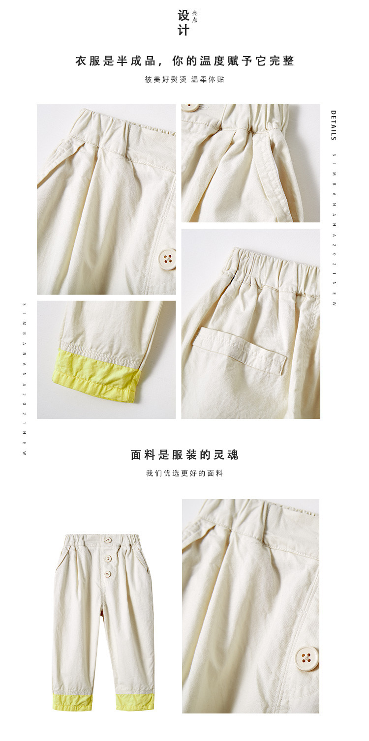 【辛巴娜娜】simbanana新款男童小口袋直筒裤儿童撞色休闲长裤