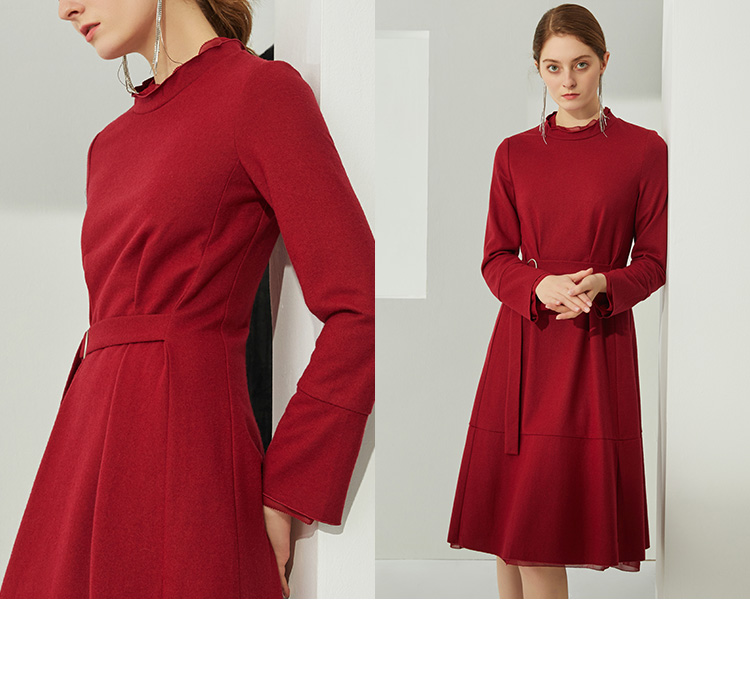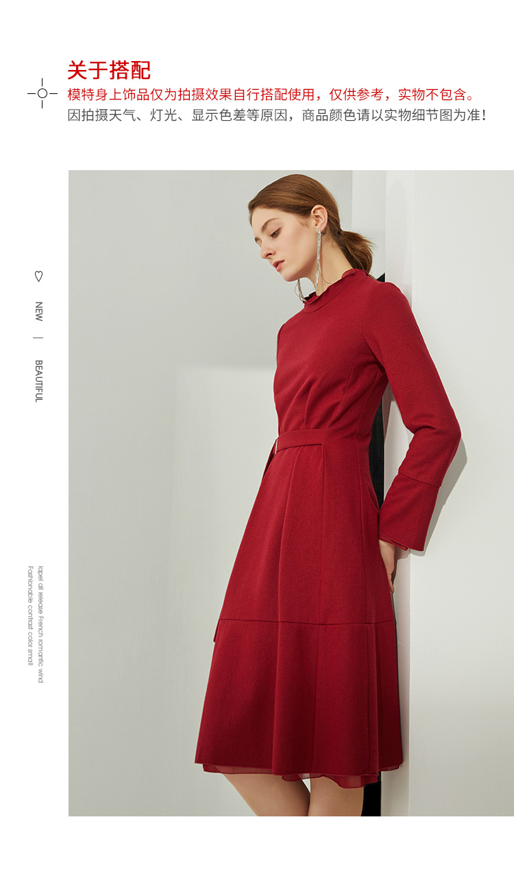 EITIE爱特爱品牌女装秋款优雅纯色日常婚宴礼服中长款A字裙5877509
