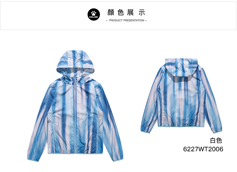 卡尔美轻薄防晒皮肤衣女夏季新款速干连帽梭织外套户外
