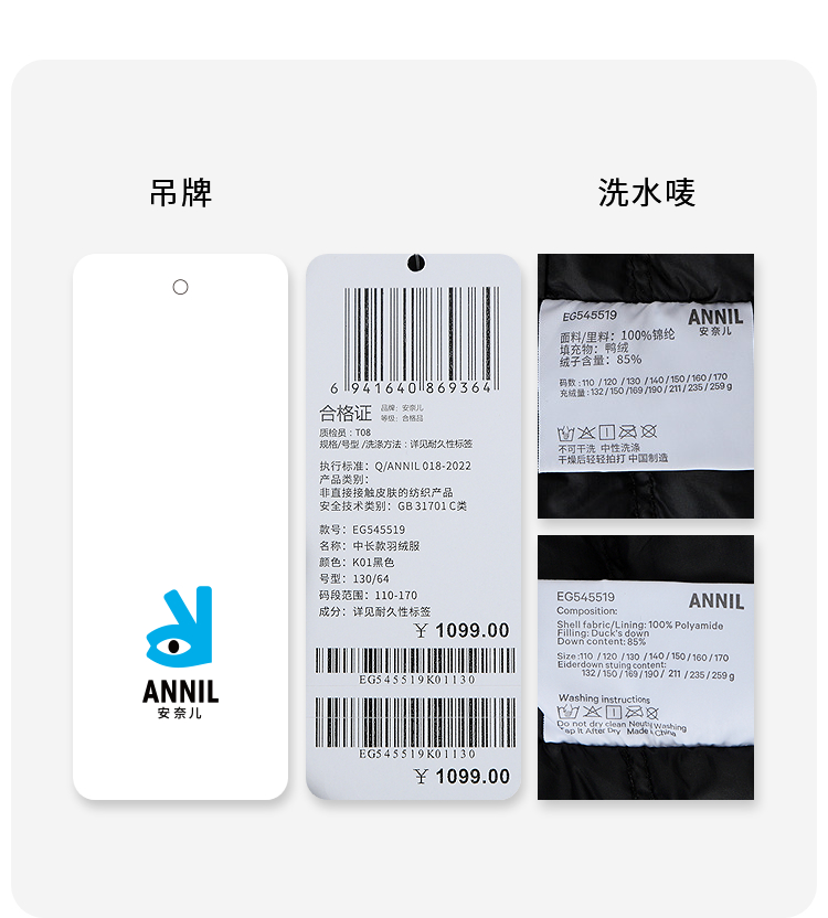 女童中长款羽绒服冬季新款安奈儿童装EG545519