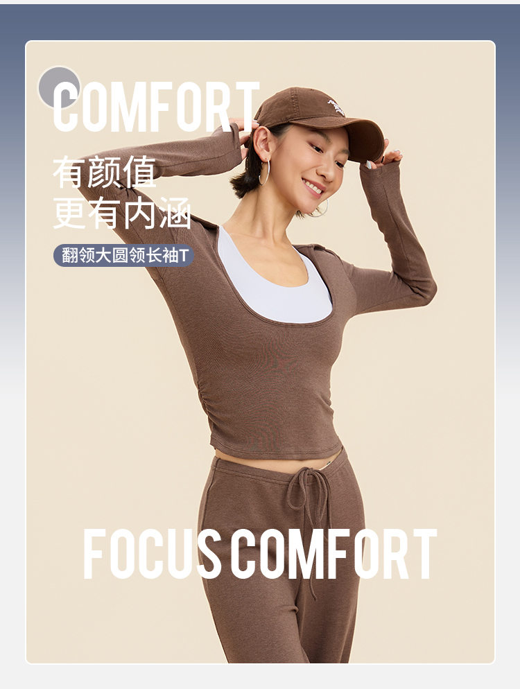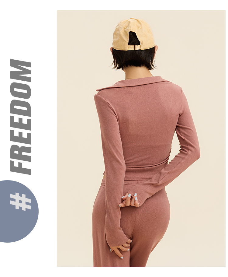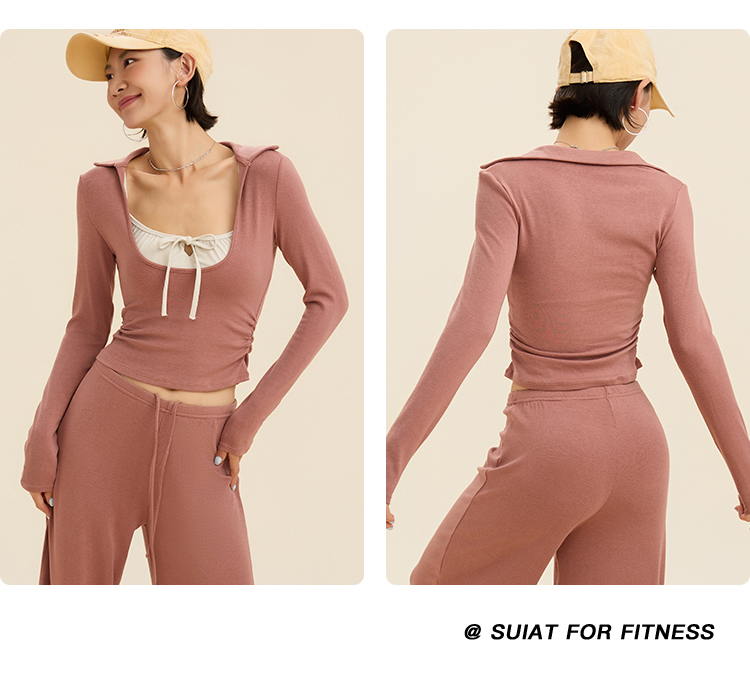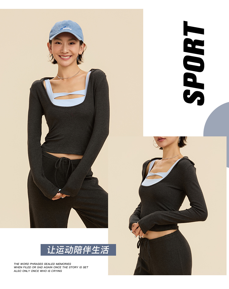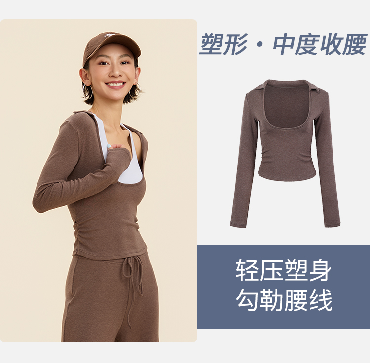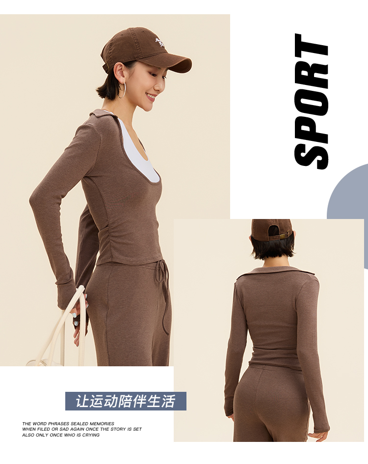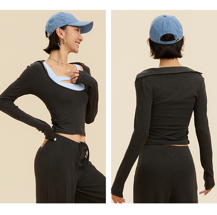 跃牌【禅语梵心】翻领大领口健身服女芭蕾运动上衣跑步长袖T恤弹力瑜伽服CX3526