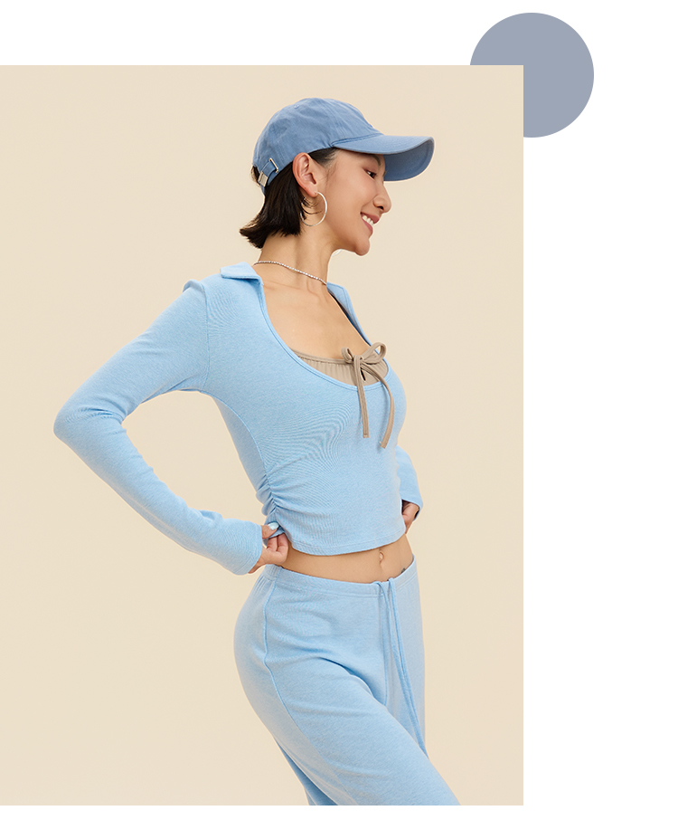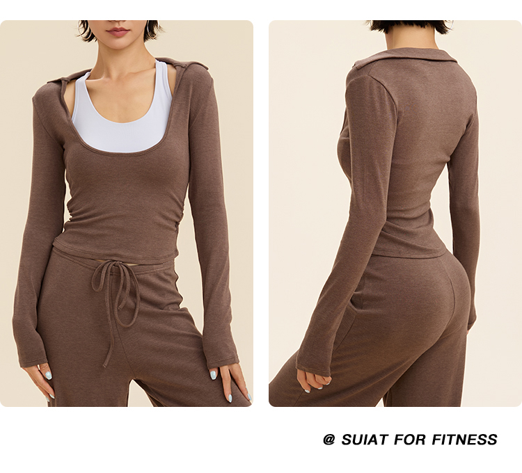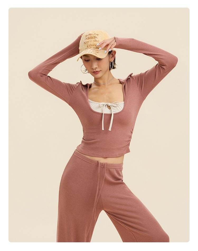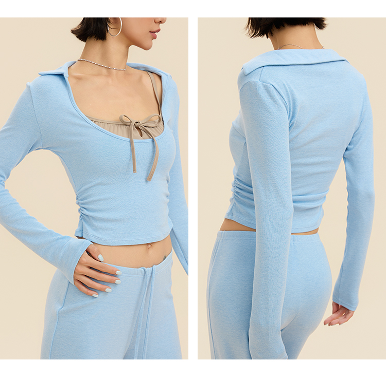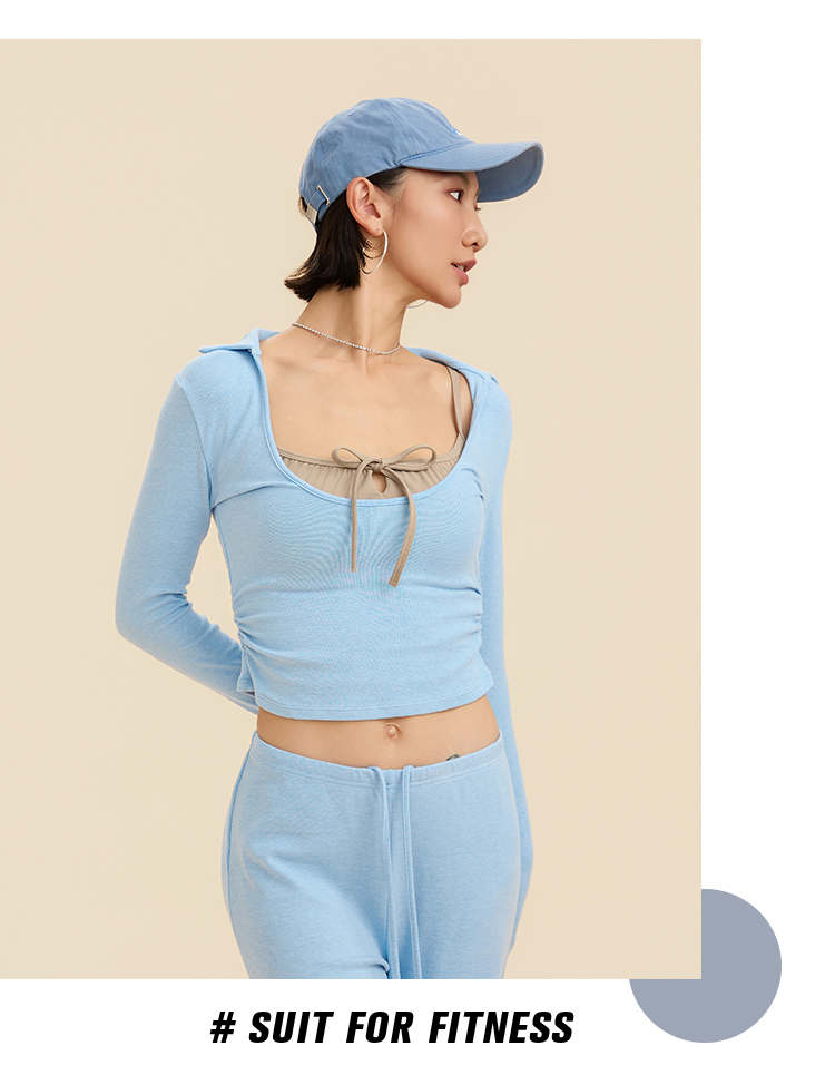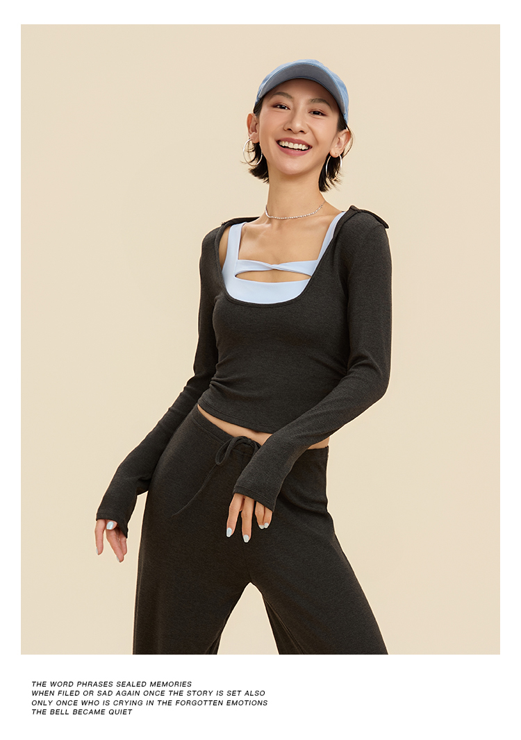 跃牌【禅语梵心】翻领大领口健身服女芭蕾运动上衣跑步长袖T恤弹力瑜伽服CX3526