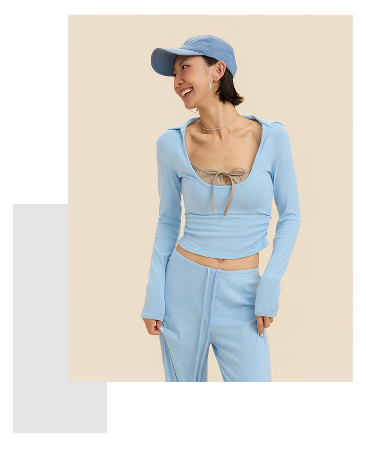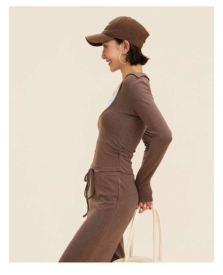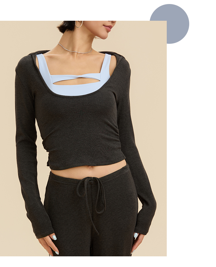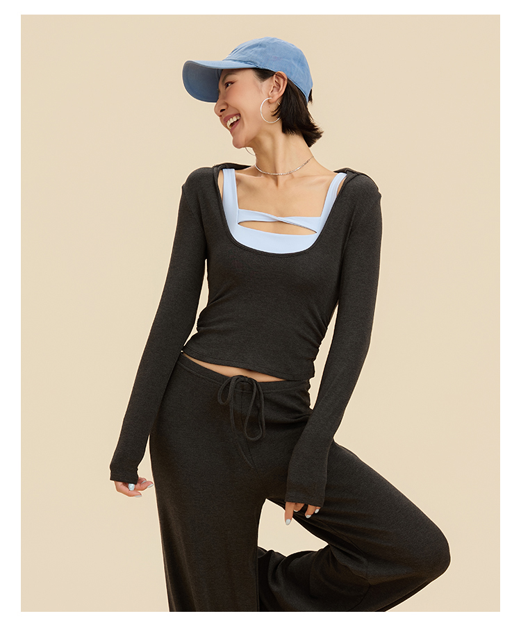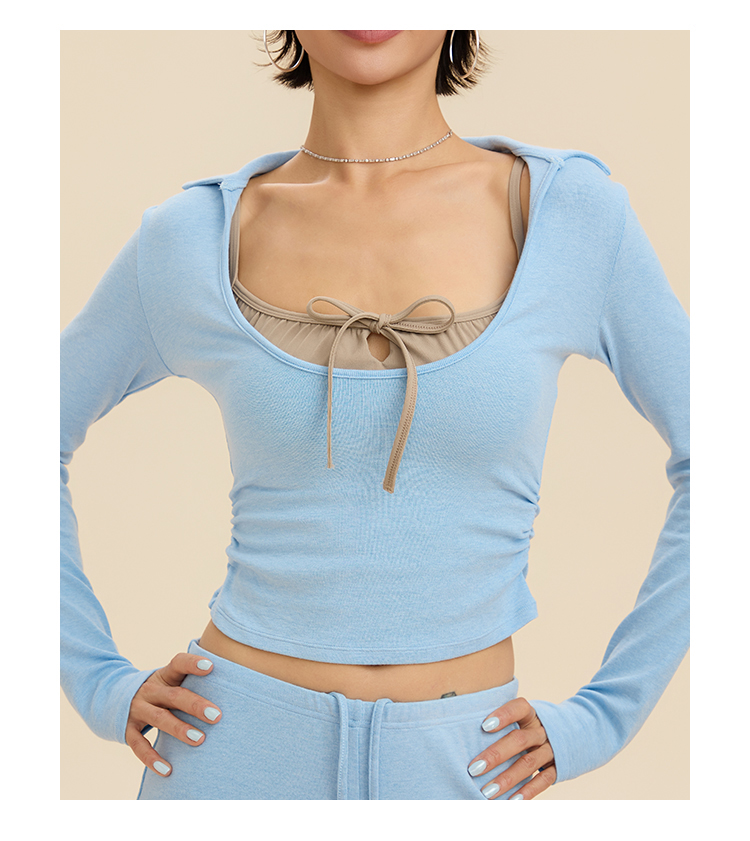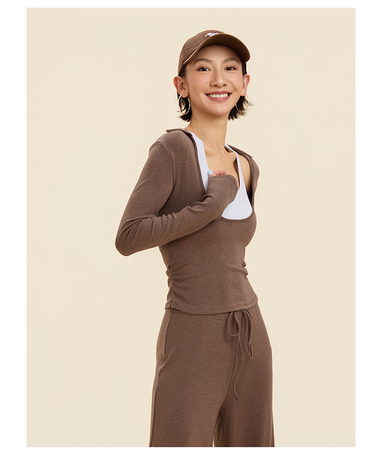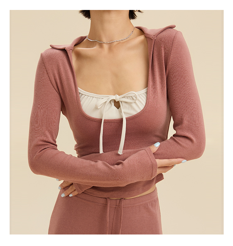跃牌【禅语梵心】翻领大领口健身服女芭蕾运动上衣跑步长袖T恤弹力瑜伽服CX3526