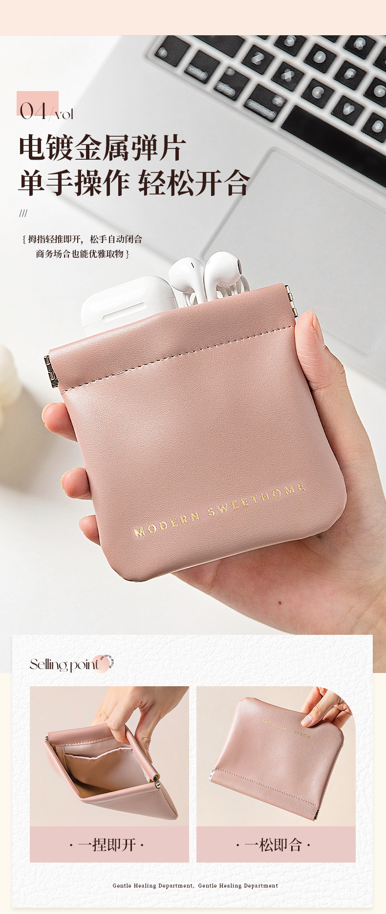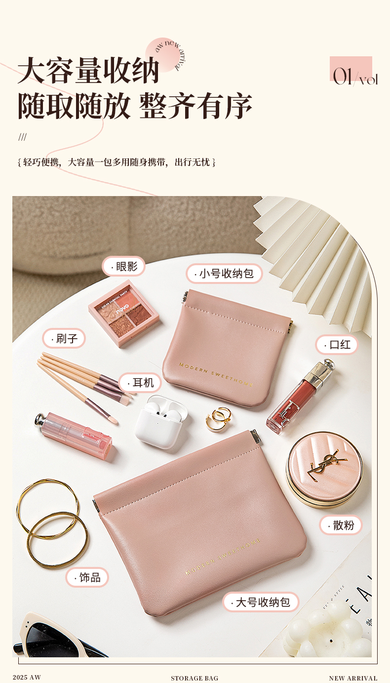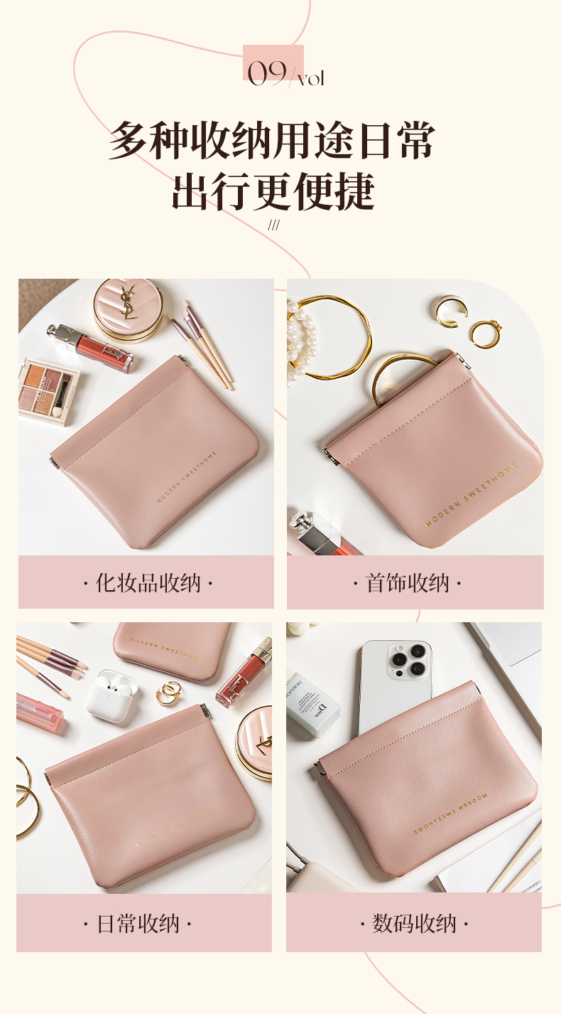 摩登主妇化妆收纳包自动闭合数据线内胆小包弹片卡包便携式零钱包
