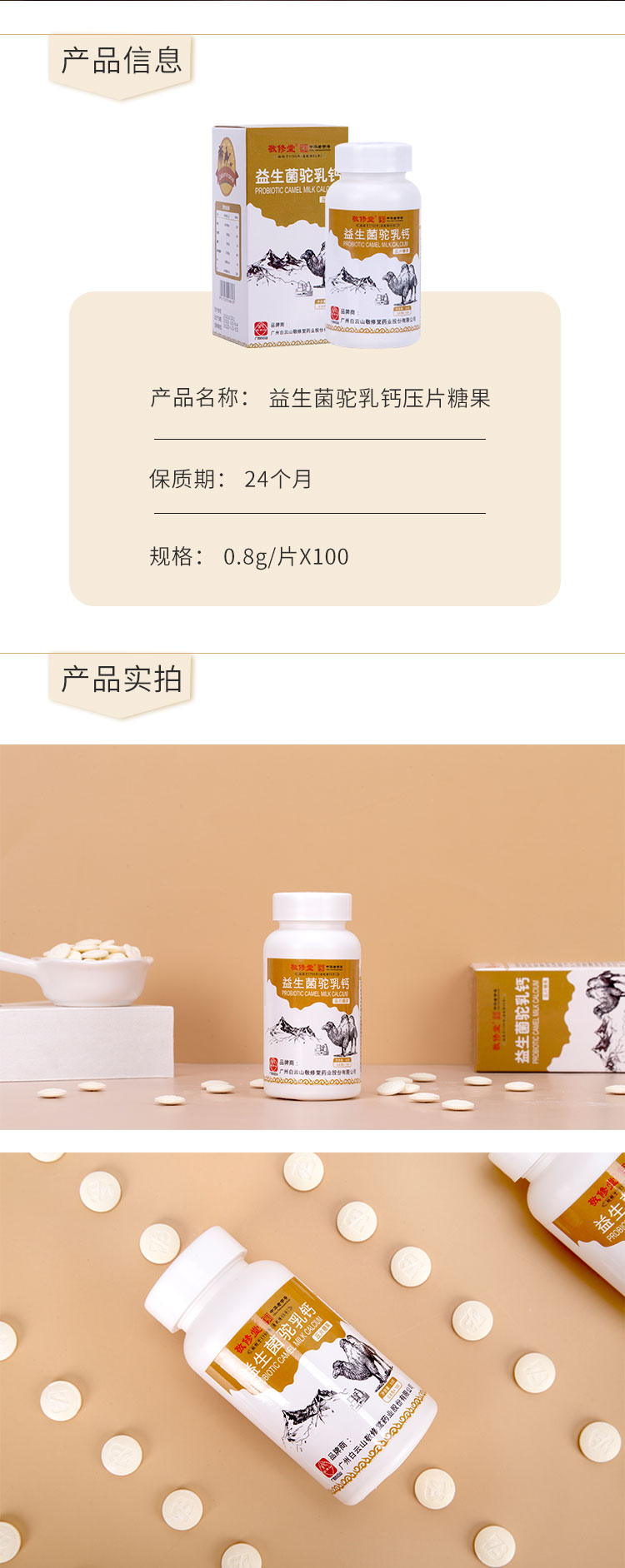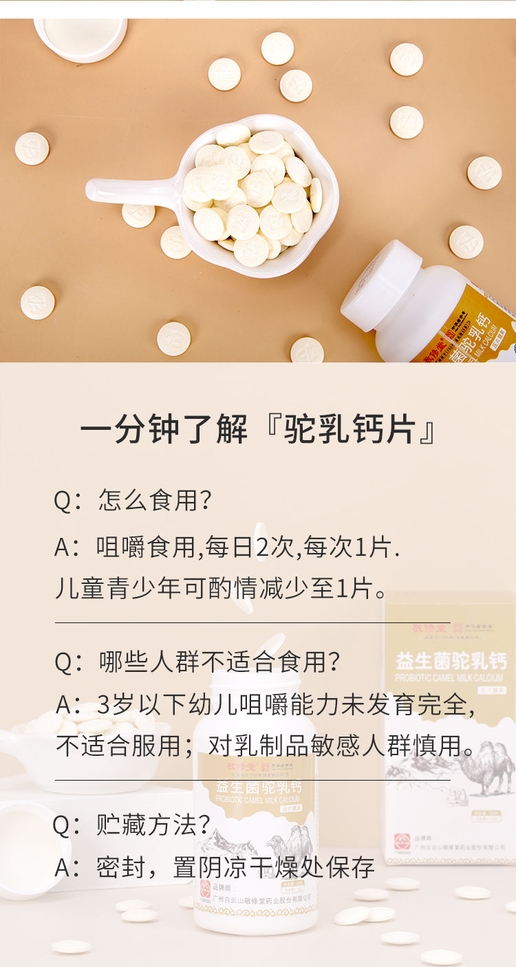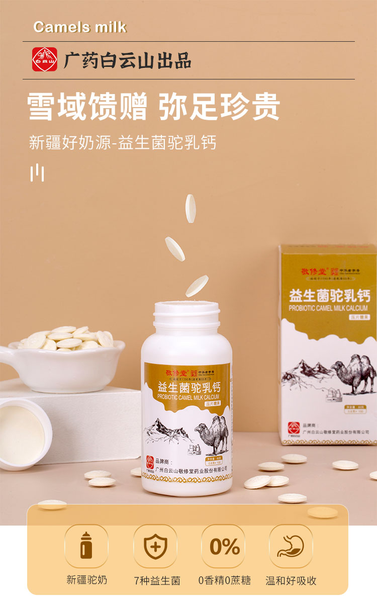 【买1送1,买2送2再减10,多买优惠】白云山敬修堂益生菌驼乳钙片