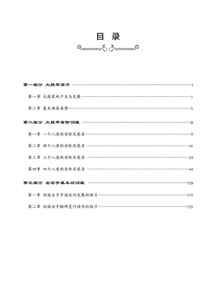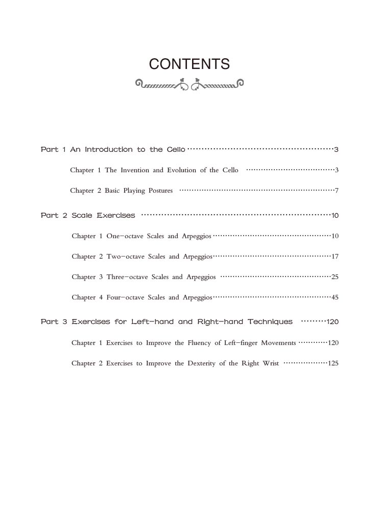 《大提琴训练教程》是一本大提琴音阶训练及左右手基本功训练的教材。音阶练习及其他基本练习是掌握演奏技巧必不可缺的训练项目。因此本书分为三个部分:第一部分为“大提琴简介”、第二部分为“大提琴音乐训练”、第三部分为“左右手基本功训练”。内容涉及了一个八度至四个八度的音阶和琶音,以及左手的手指流利发展的练习、右手腕部灵巧动作的练习,还编写了一些音程和五声音阶的单、双音等练习,使学习者通过这些练习更好地掌握乐器,以达到能自如地演奏乐曲、表现音乐的目的。