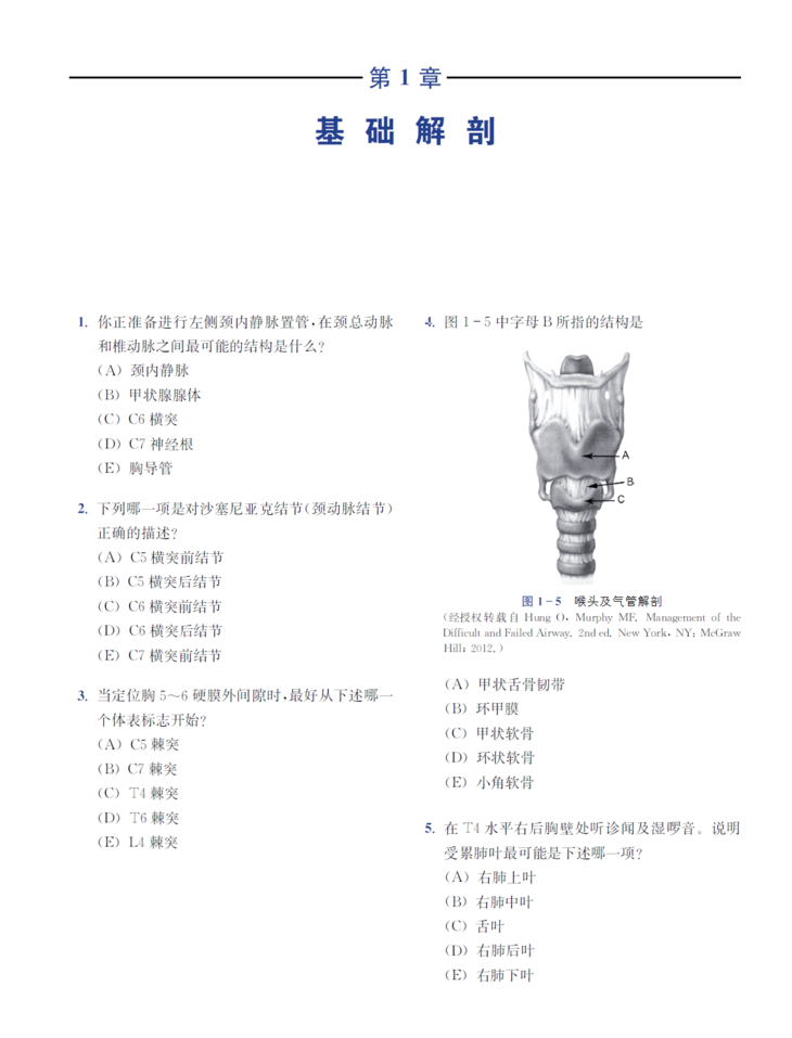 这类干系重大的考试,如美国麻醉学会基础医学考试(ABABASIC考试),备考的压力很大;住院医师培训期间,时间又非常宝贵。不论作为教育工作者,还是在住院医师培训阶段,我们发现高质量的多项选择题对集中学习和获得信心非常有益。然而,目前大多数的习题集主要关注于临床专题,旨在帮助您通过高阶考试(ADVANCED考试)这一“最终”笔试。本习题集的目的是作为“一站式商店”,以补充您的初级阅读。这800多个问题的设计和编写是尤其符合BASIC考试的内容大纲,基本覆盖各个领域。每个问题都附有答案解析:为什么是正确答案,干扰项错在哪里。每个解释都参考重要教材和/或期刊文章。