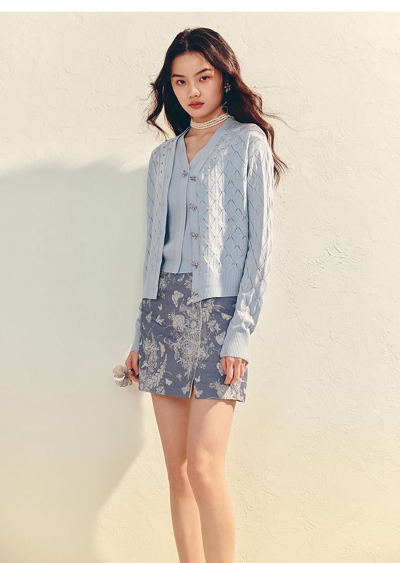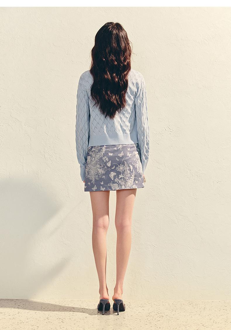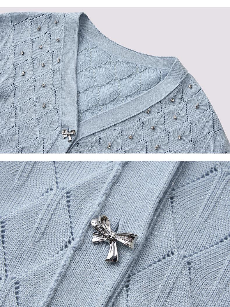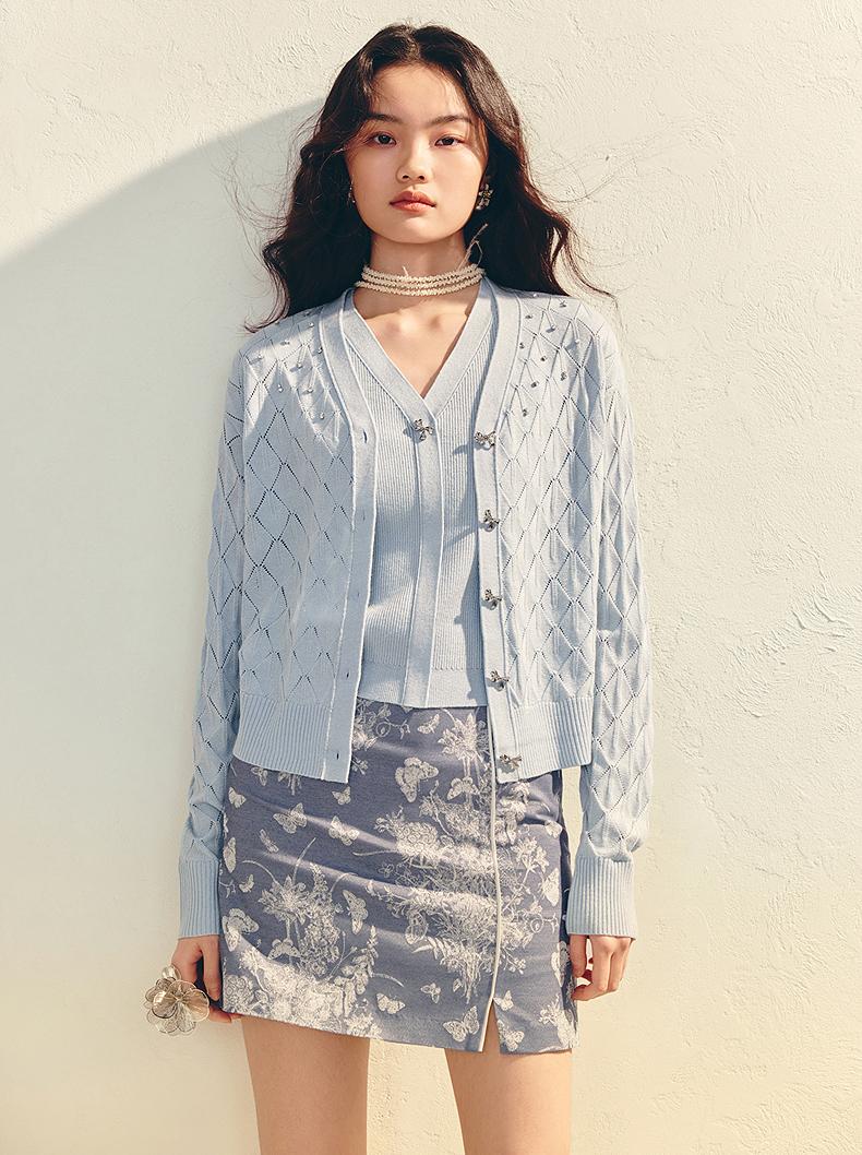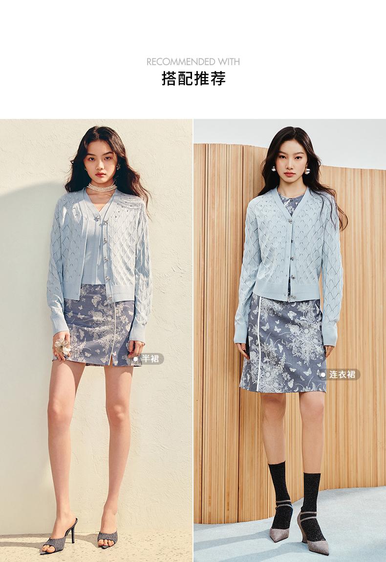MAXRIENY蝴蝶纽扣精致复古菱格上衣2025春款针织修身日常百搭外套(货号:MS86JA022)