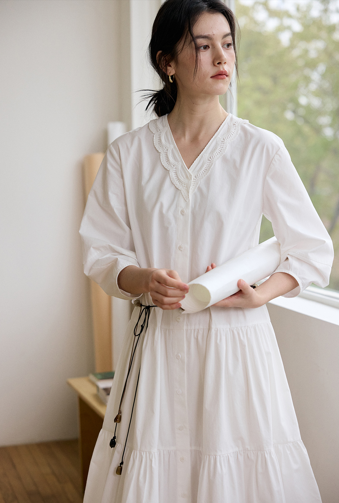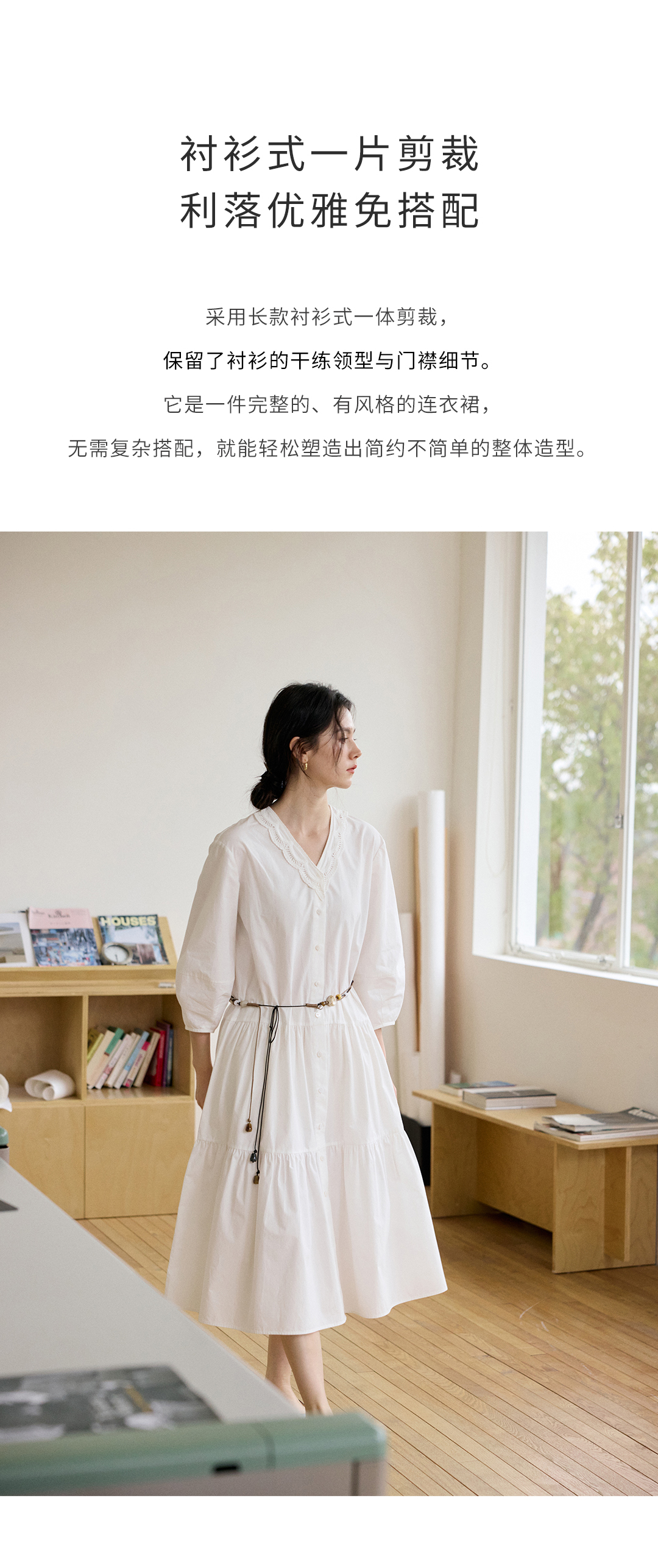 衬衫式长款连衣裙