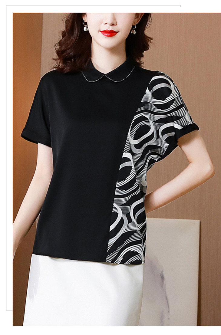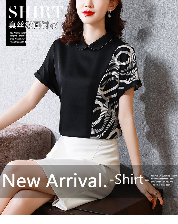 MZ104754夏季潮款短袖宽松设计感女士醋酸绸缎衬衫