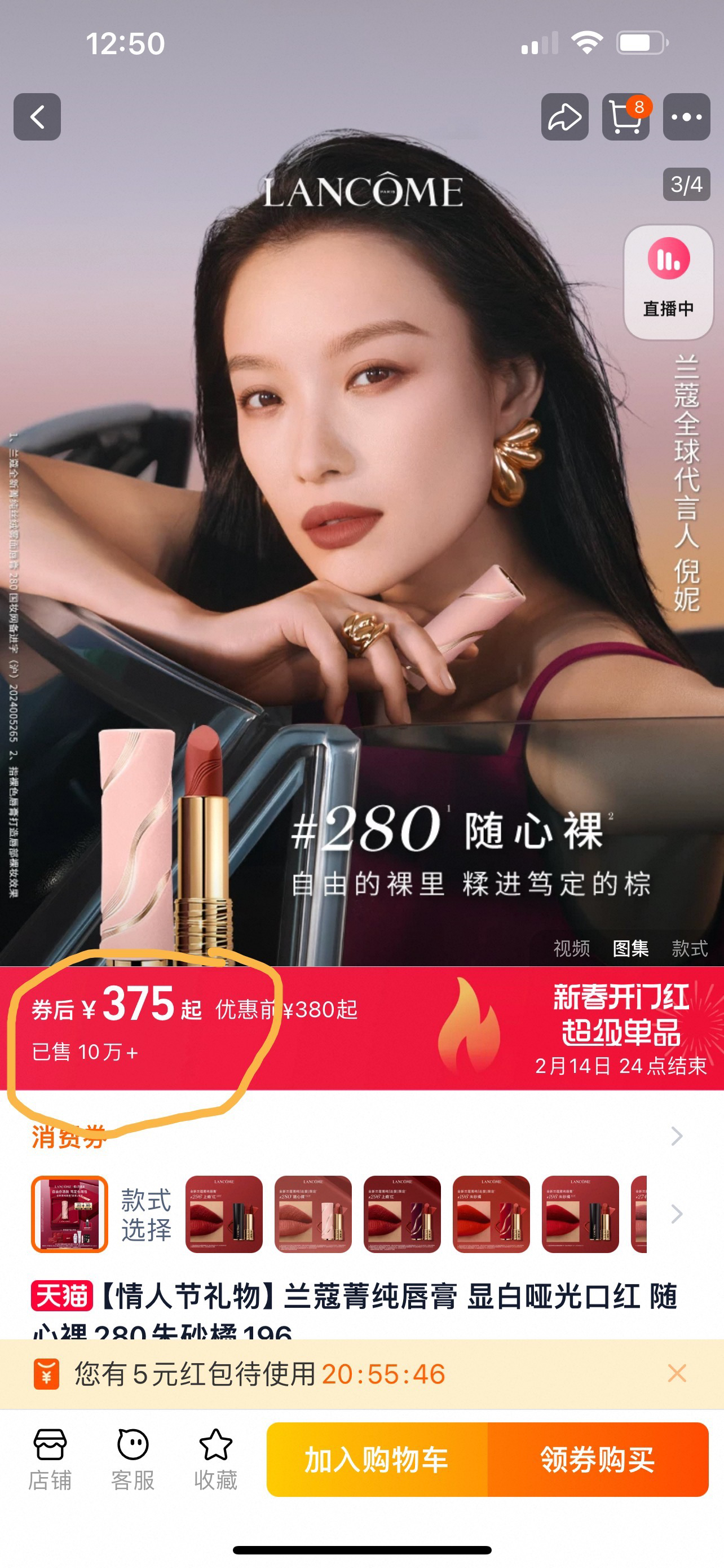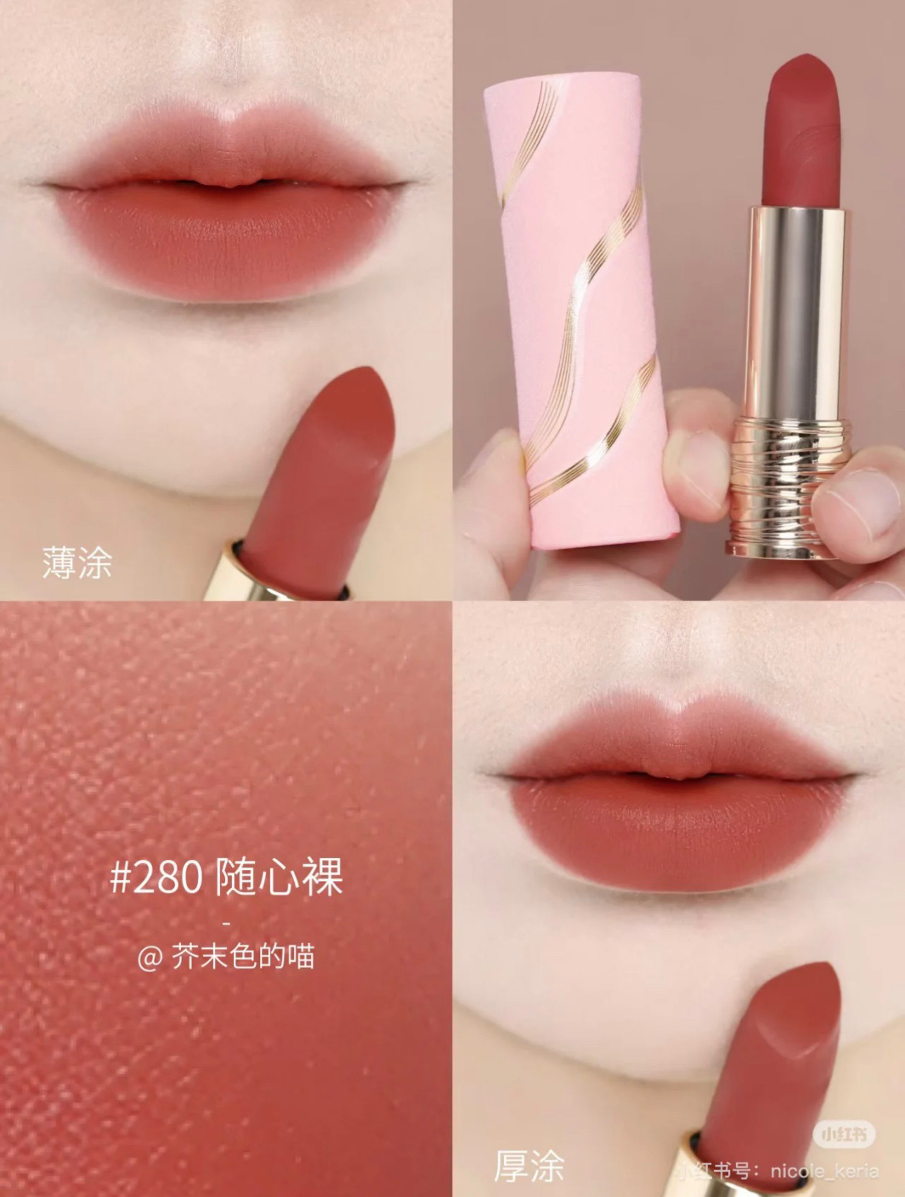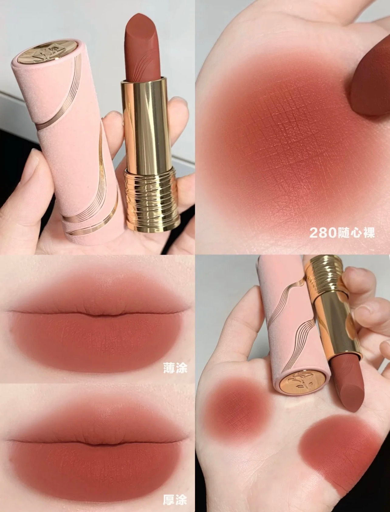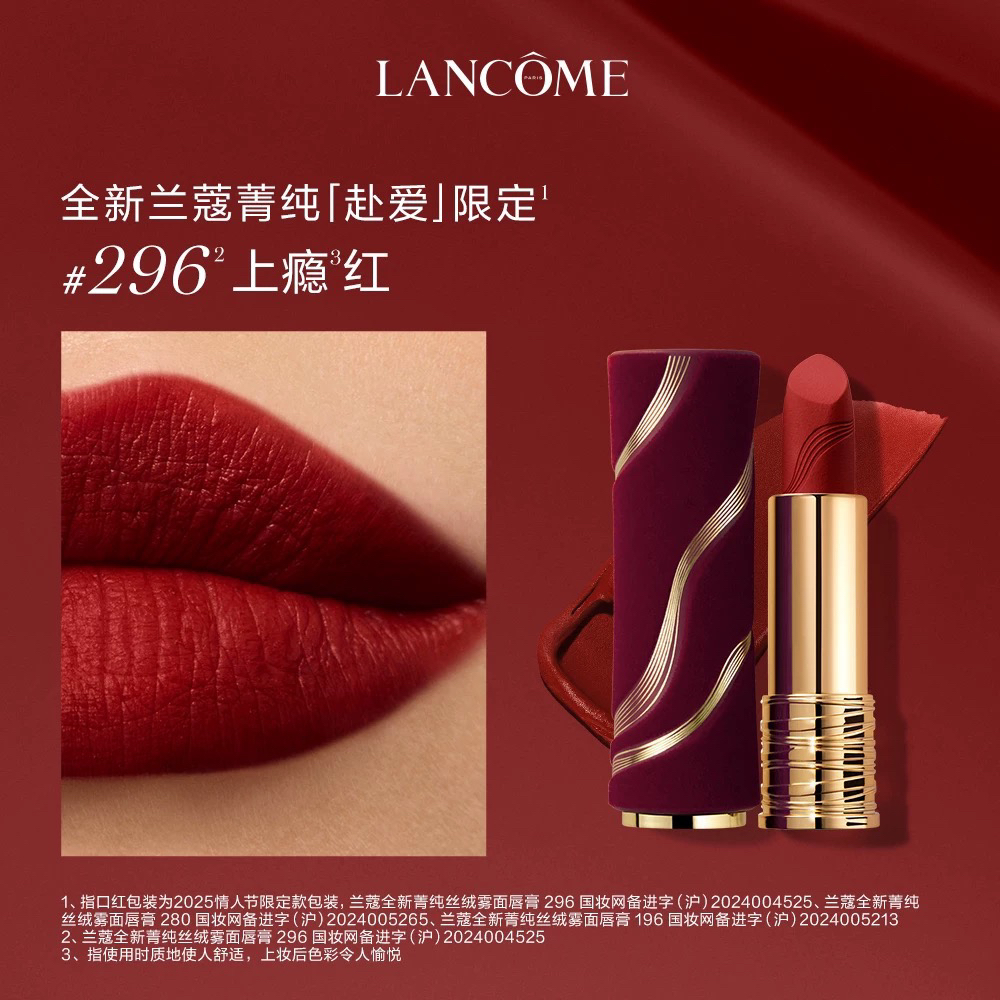 可作为情人节礼物🎁,兰蔻推出的“赴爱限定”口红 鎏金线条 勾勒心之所想,丝绒缱綣 一路向爱而驰!开年及王炸的存在 精致的鎏金线条搭配丝绒外壳 整一个艺术品 高级又有质感 赴爱系列 三个色号: 280#随心裸“ 196#朱砂橘“ 296#上瘾红“ 都是超级经典色号 各路明星大咖追捧的的单品!建议多色入!不啰嗦 喜欢的抓紧囤吧!官网在售375 月销量10W➕ 断货王!真的是太火爆了!开年及王炸!
