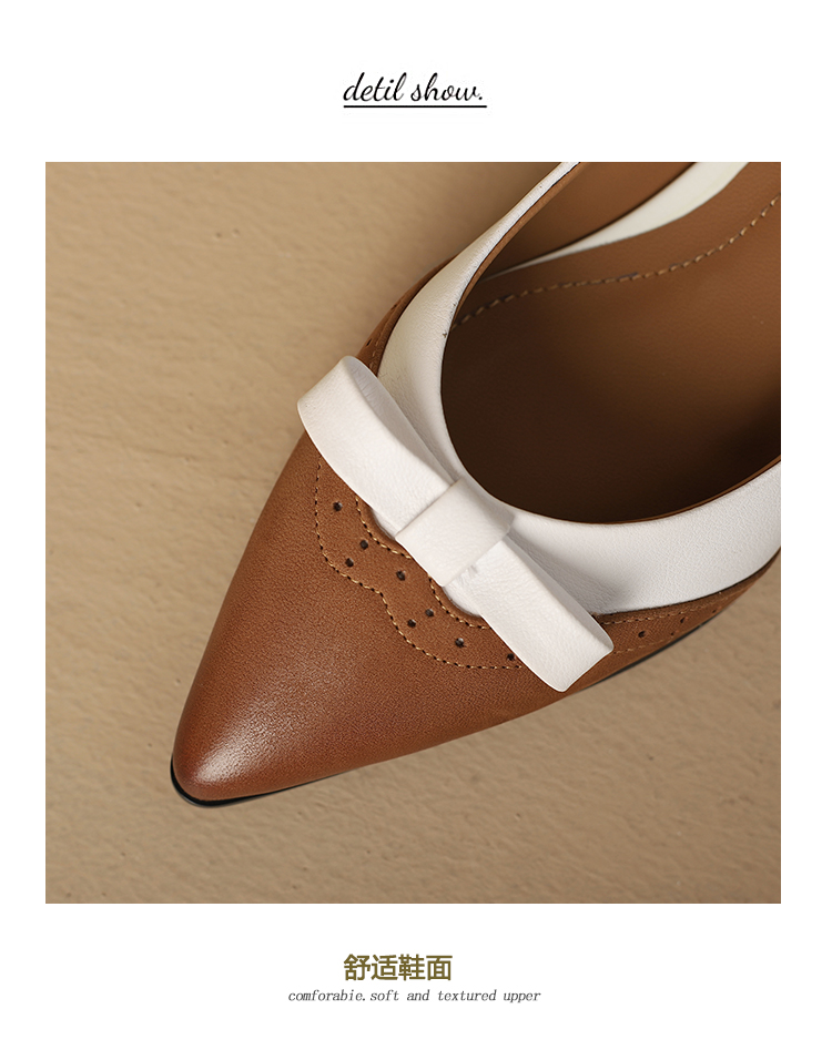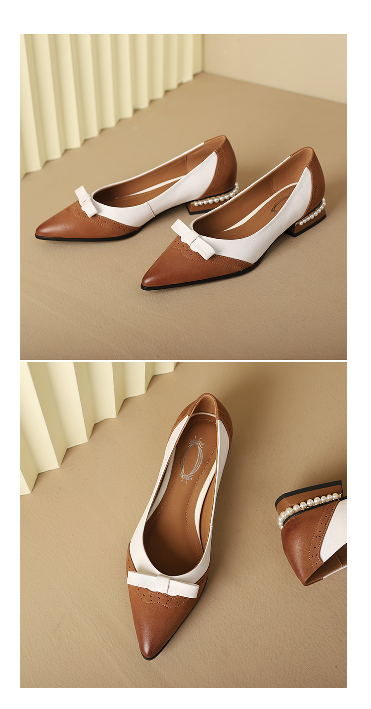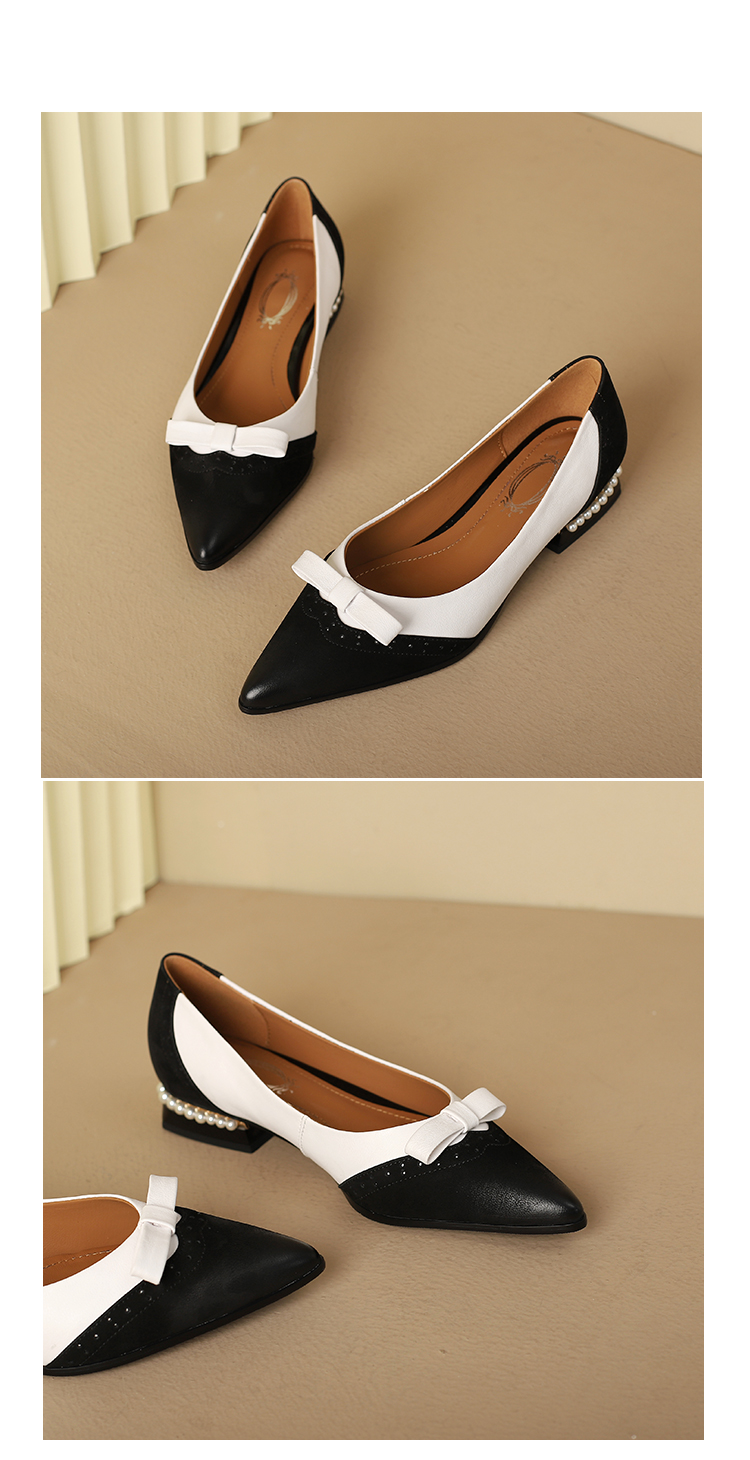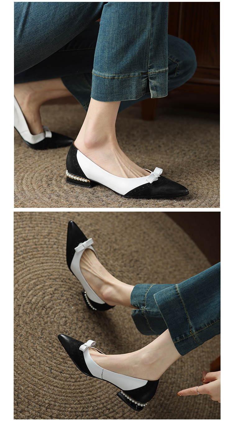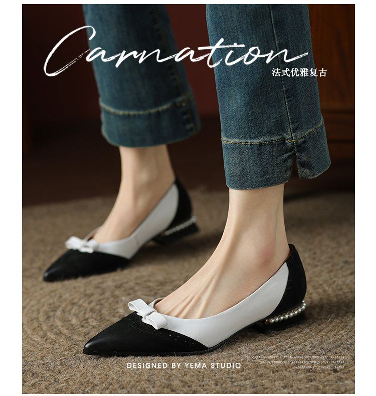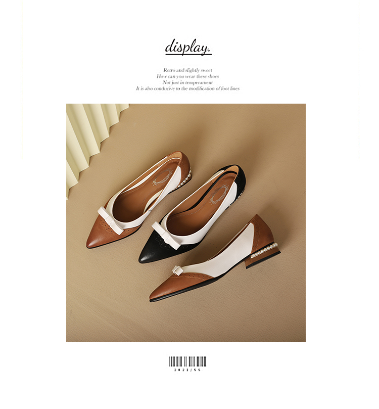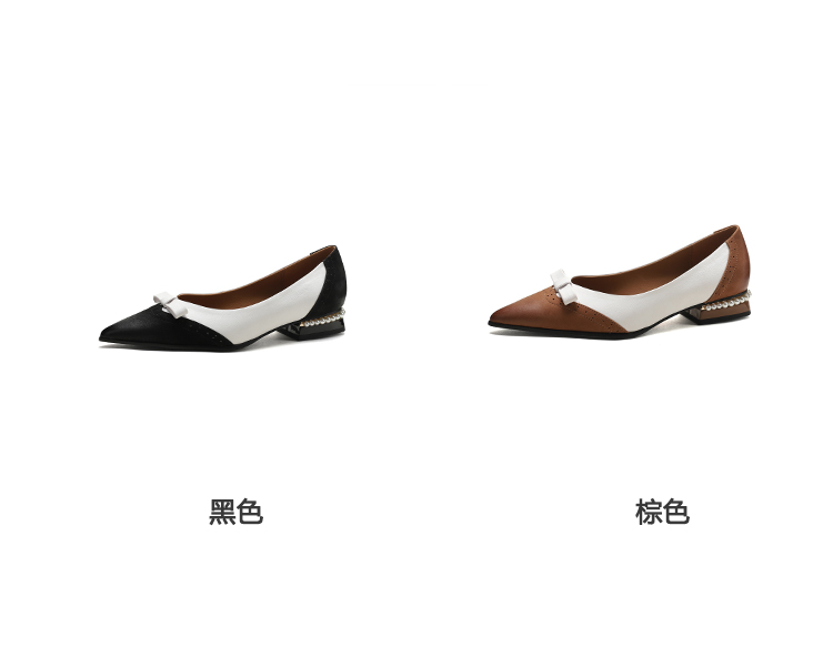 优雅法式,真皮舒适撞色尖头低跟单鞋HYT-7220B
