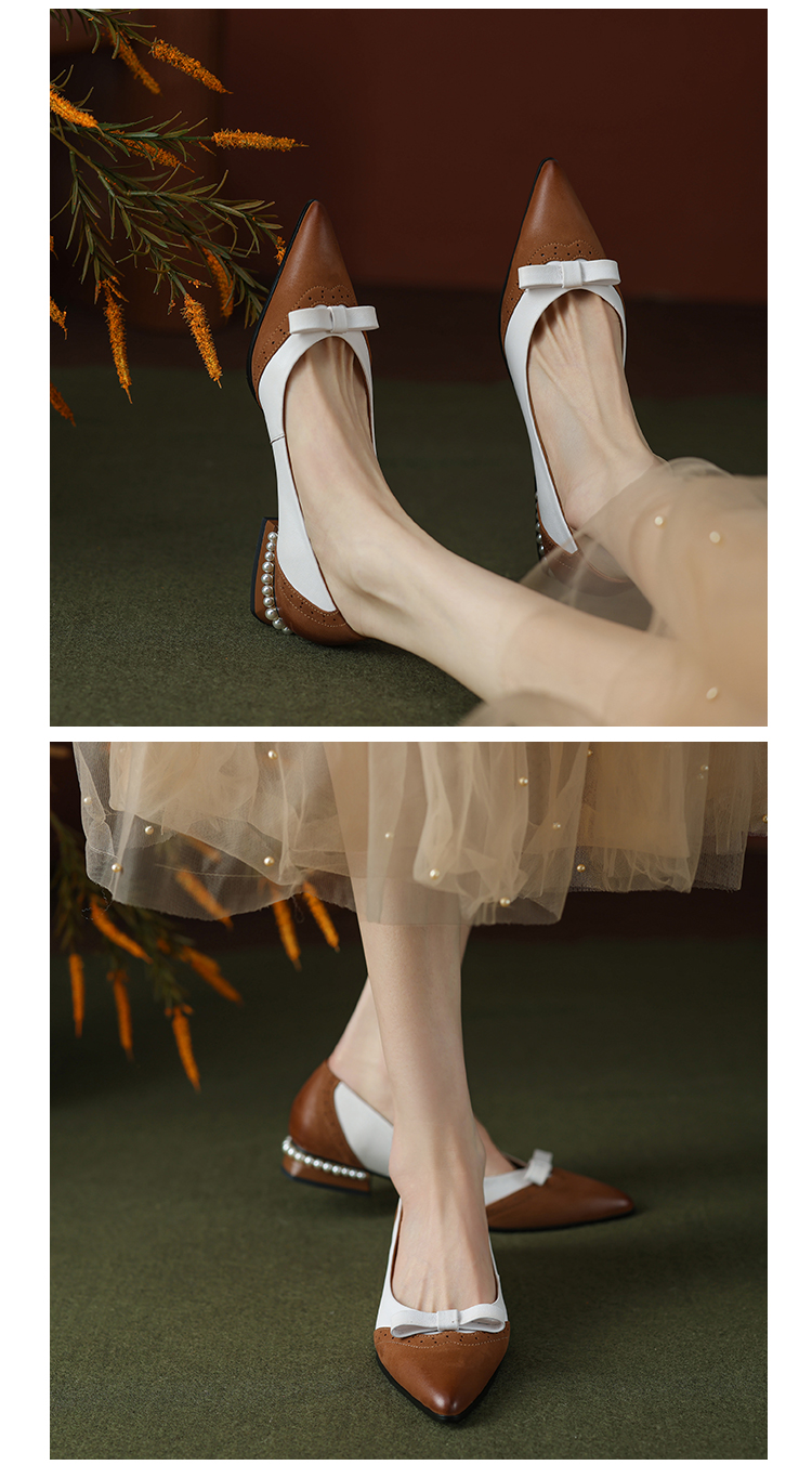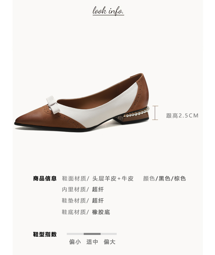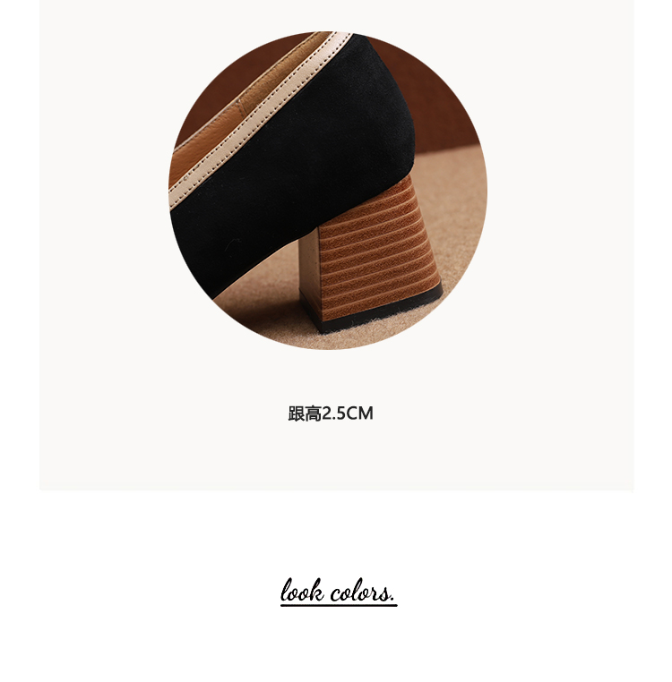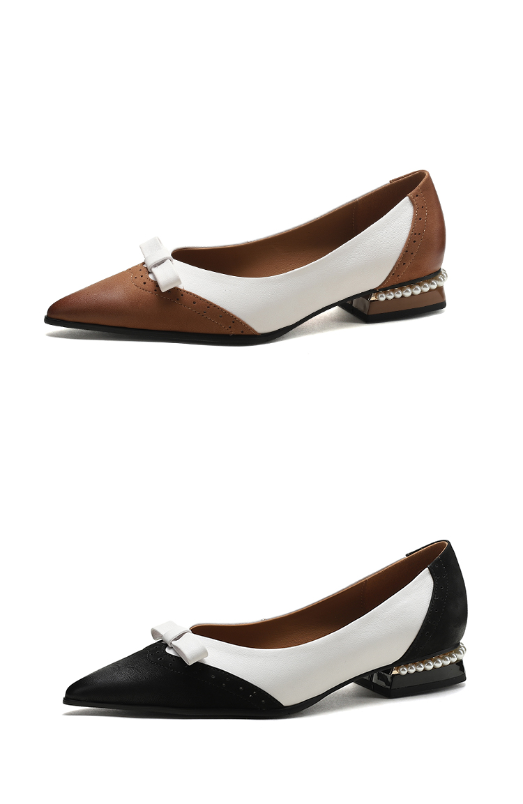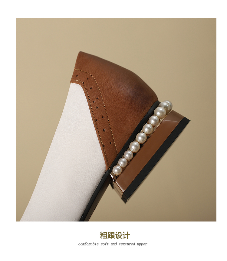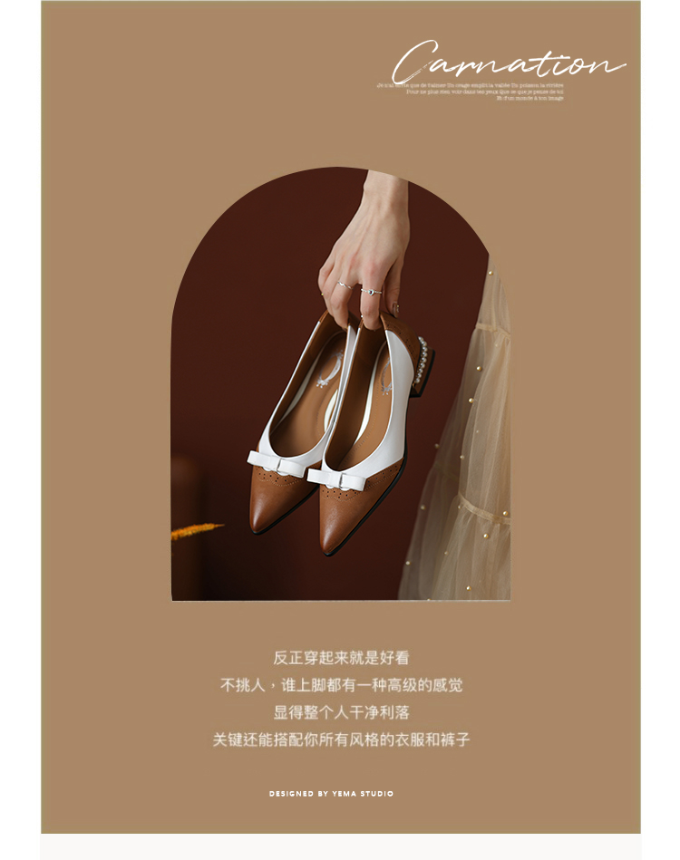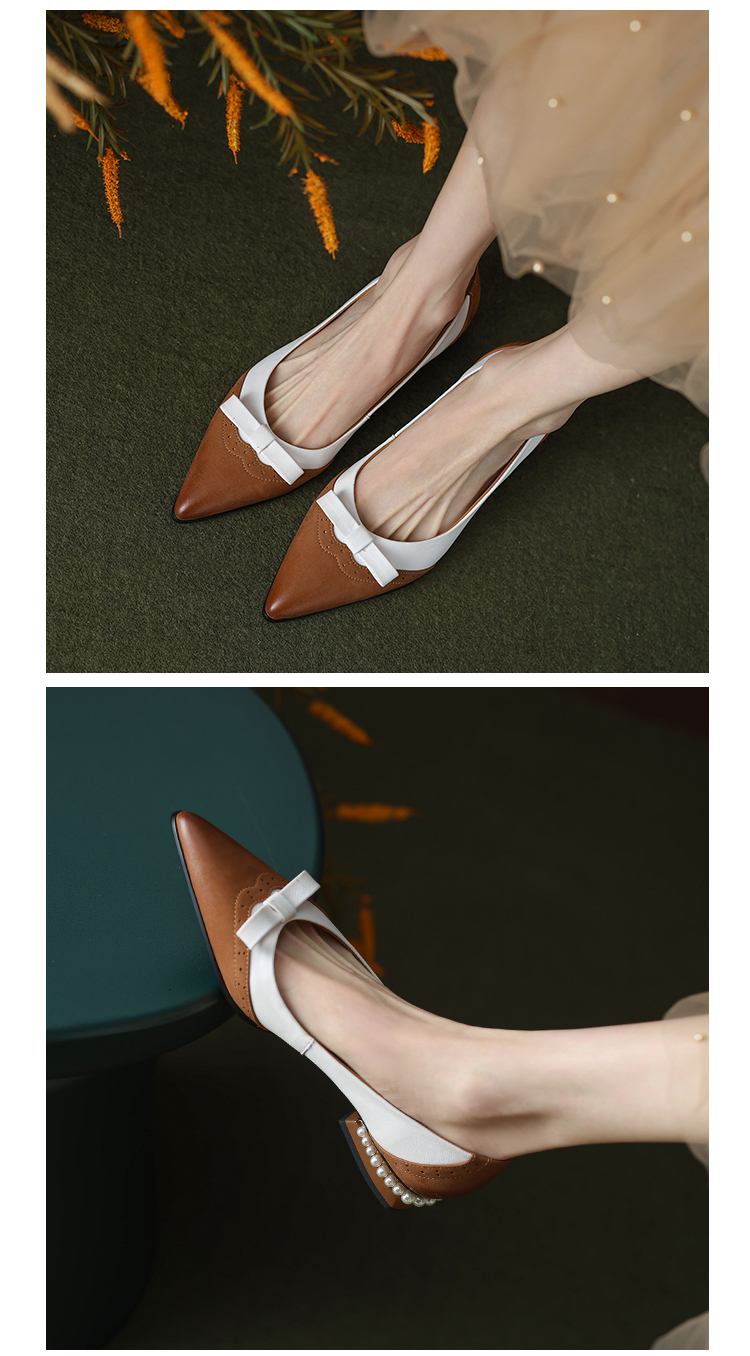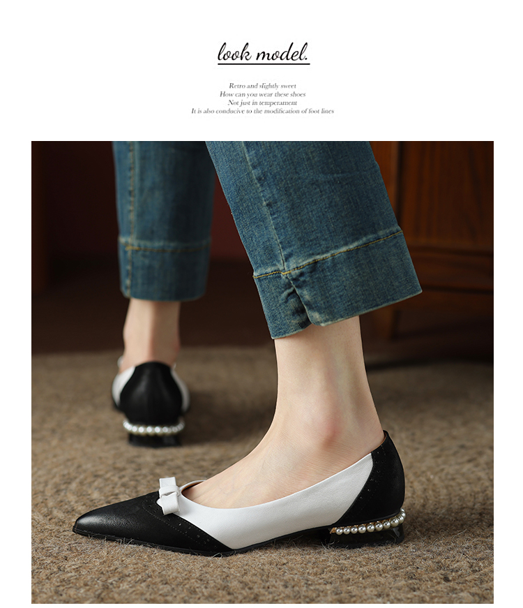 优雅法式,真皮舒适撞色尖头低跟单鞋HYT-7220B