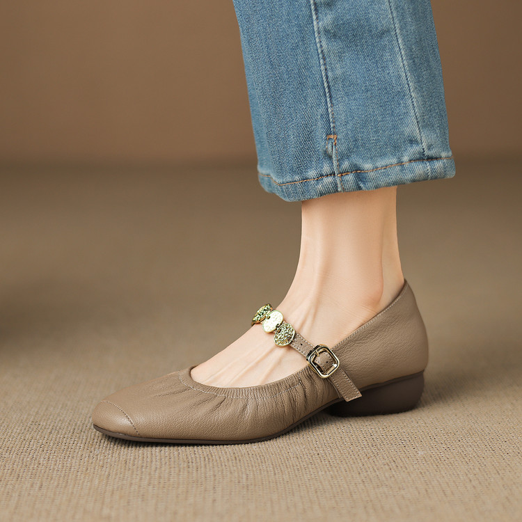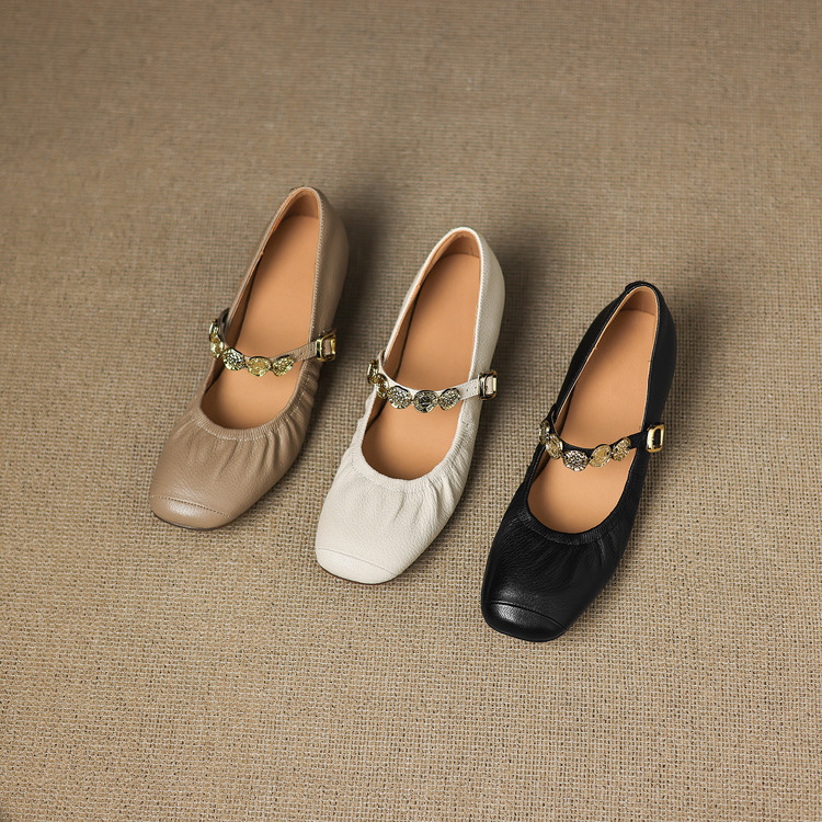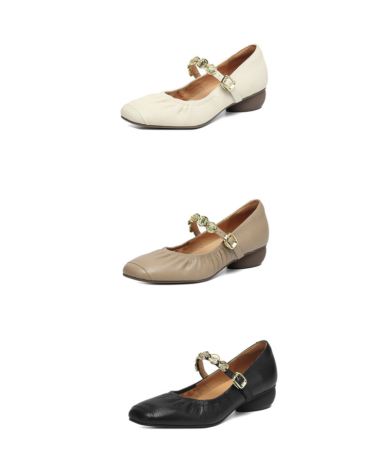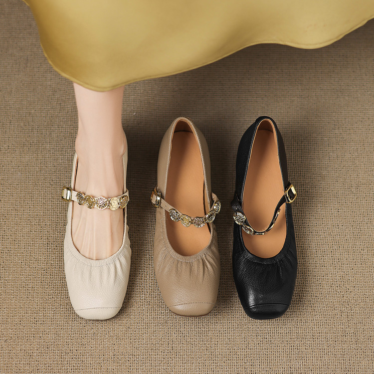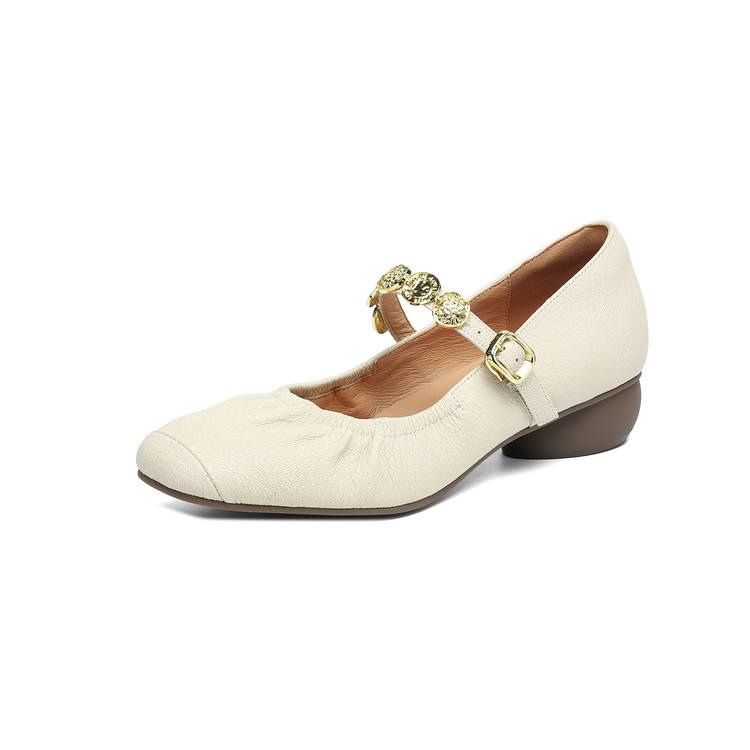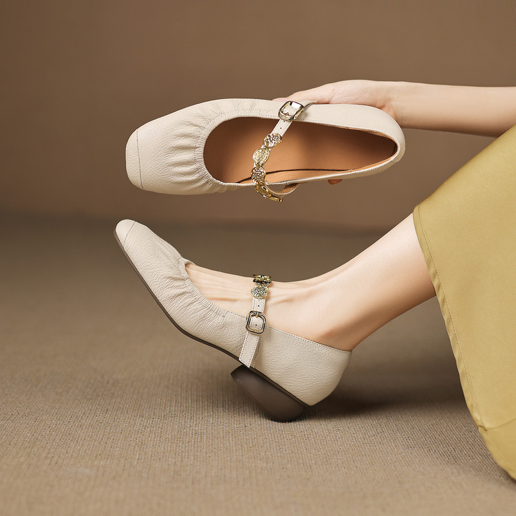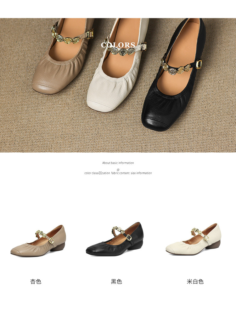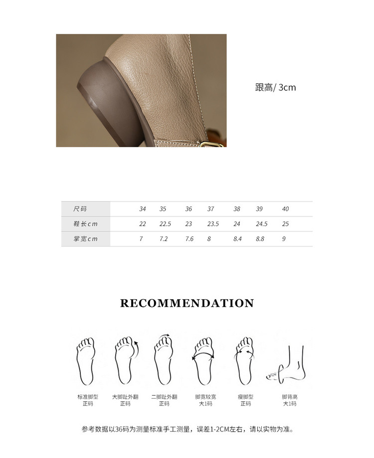 【货 号】8883【鞋面材质】软头层羊皮【内里材质】头层猪皮【鞋垫材质】头层猪皮【鞋 底】牛筋底【跟 高】3cm【颜 色】黑色 杏色 米白色【尺 码】34-39