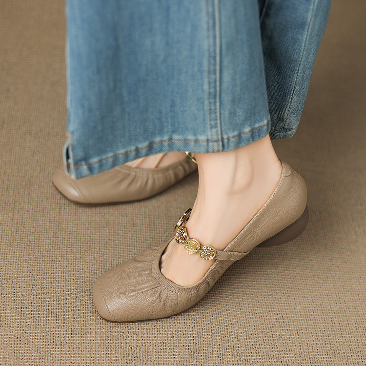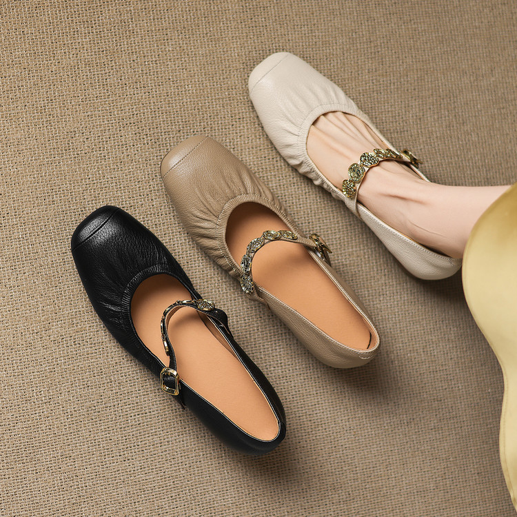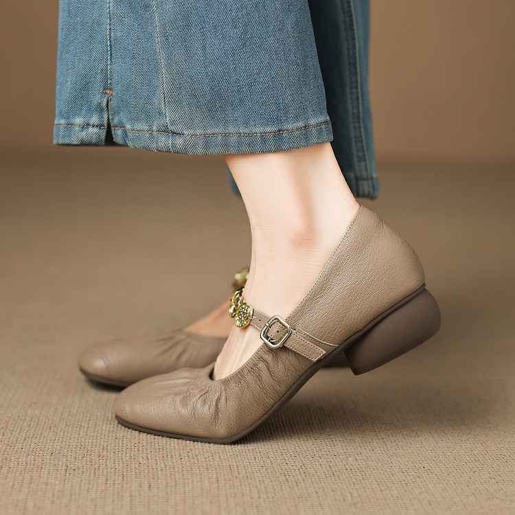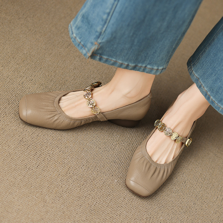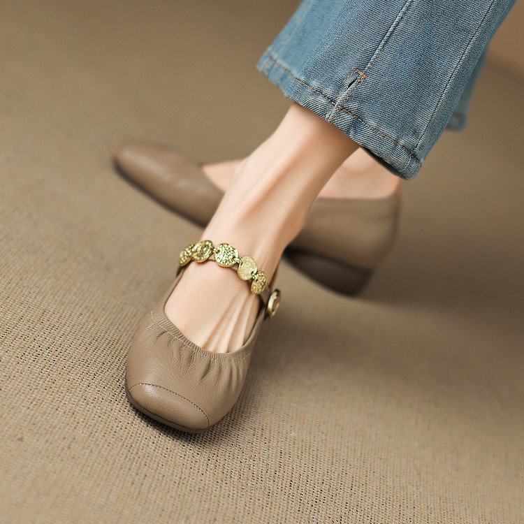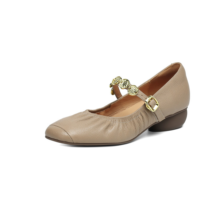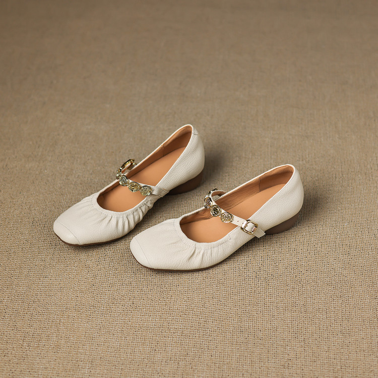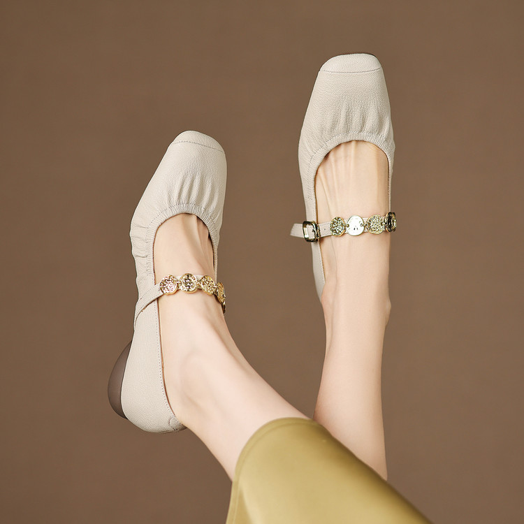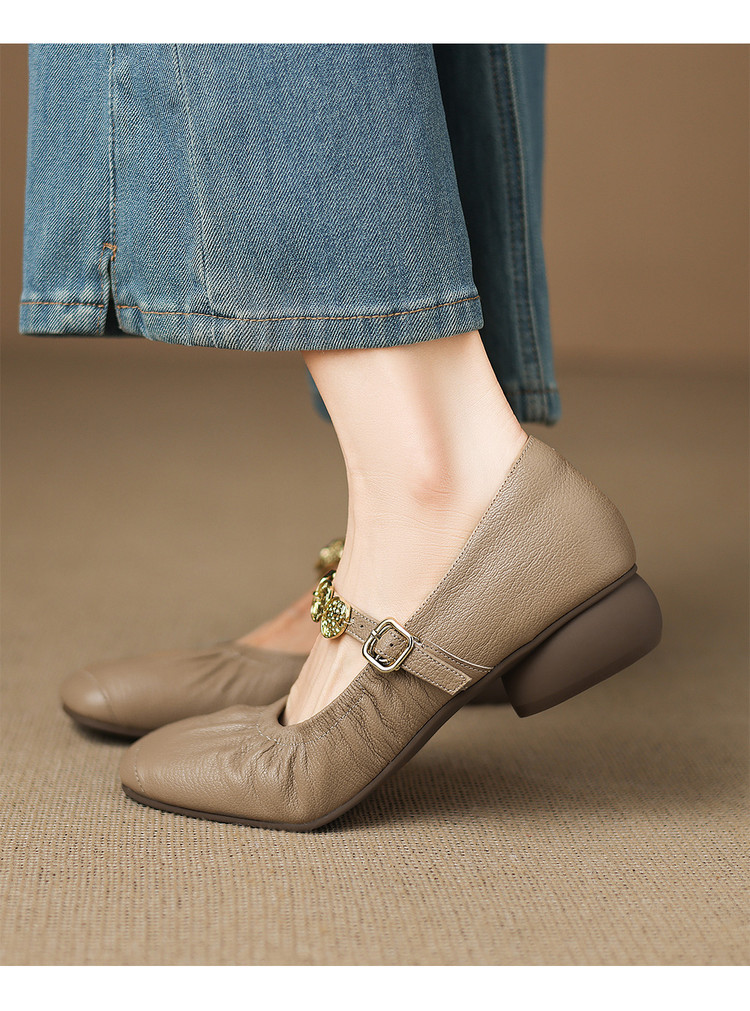 【货 号】8883【鞋面材质】软头层羊皮【内里材质】头层猪皮【鞋垫材质】头层猪皮【鞋 底】牛筋底【跟 高】3cm【颜 色】黑色 杏色 米白色【尺 码】34-39