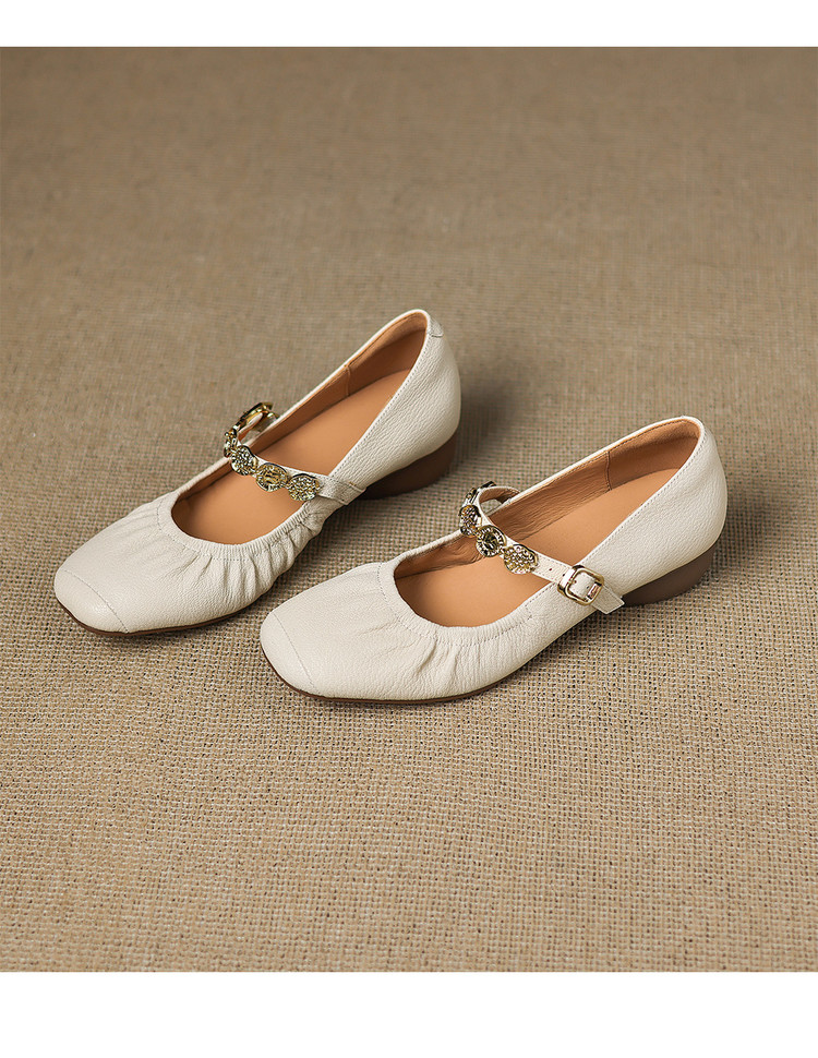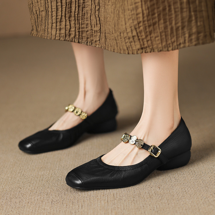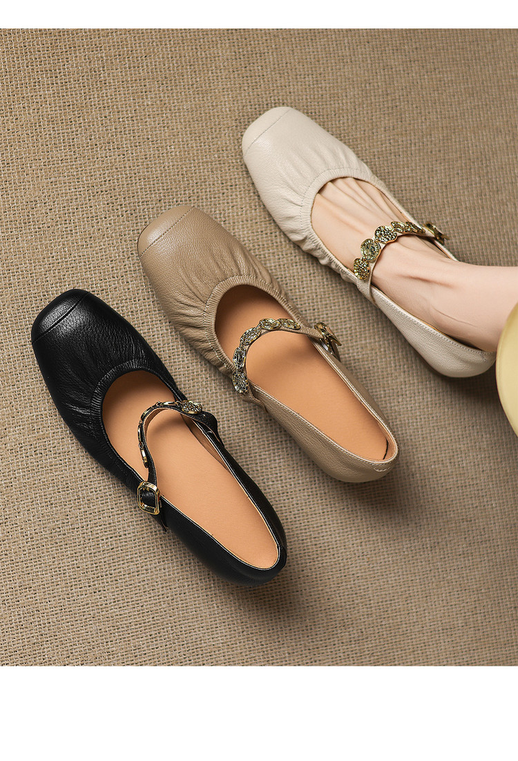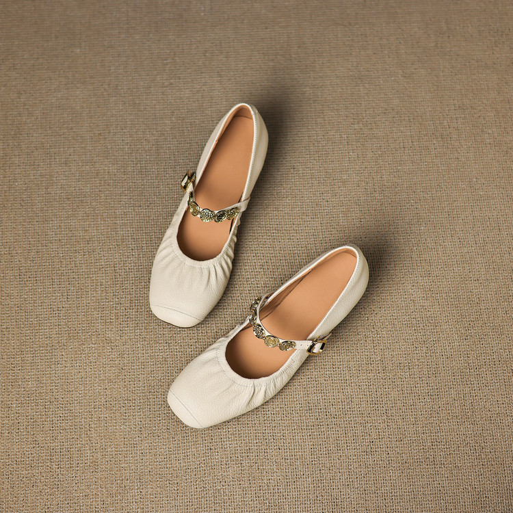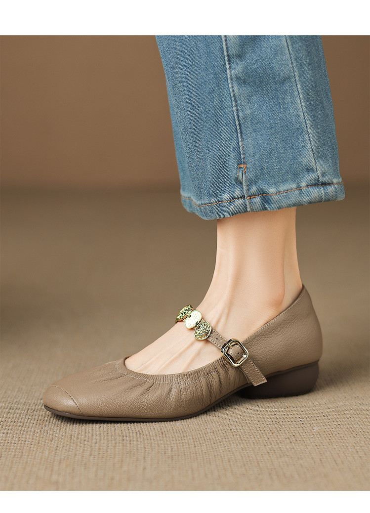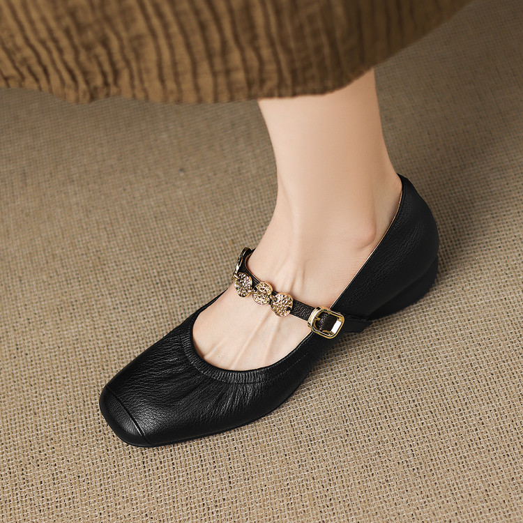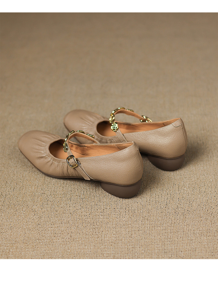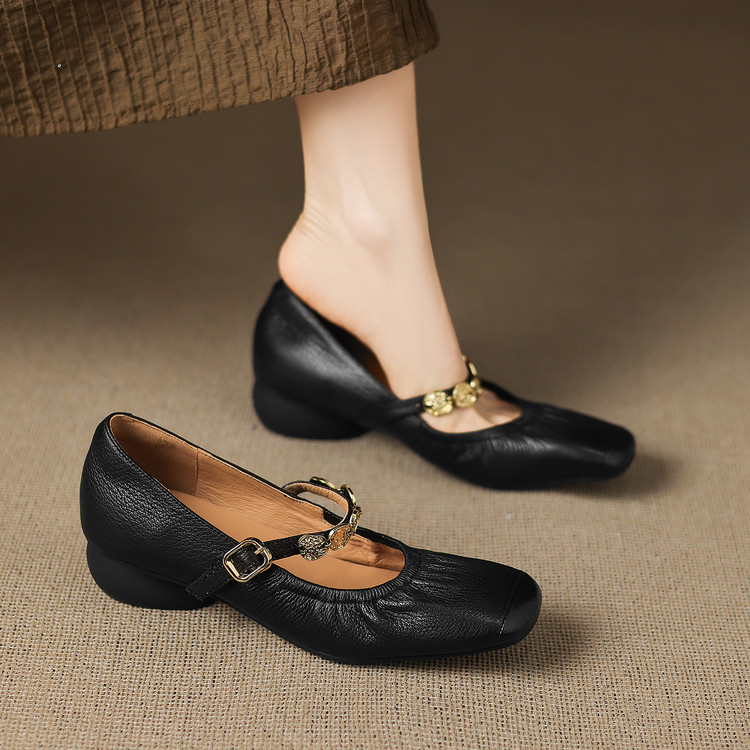 【货 号】8883【鞋面材质】软头层羊皮【内里材质】头层猪皮【鞋垫材质】头层猪皮【鞋 底】牛筋底【跟 高】3cm【颜 色】黑色 杏色 米白色【尺 码】34-39