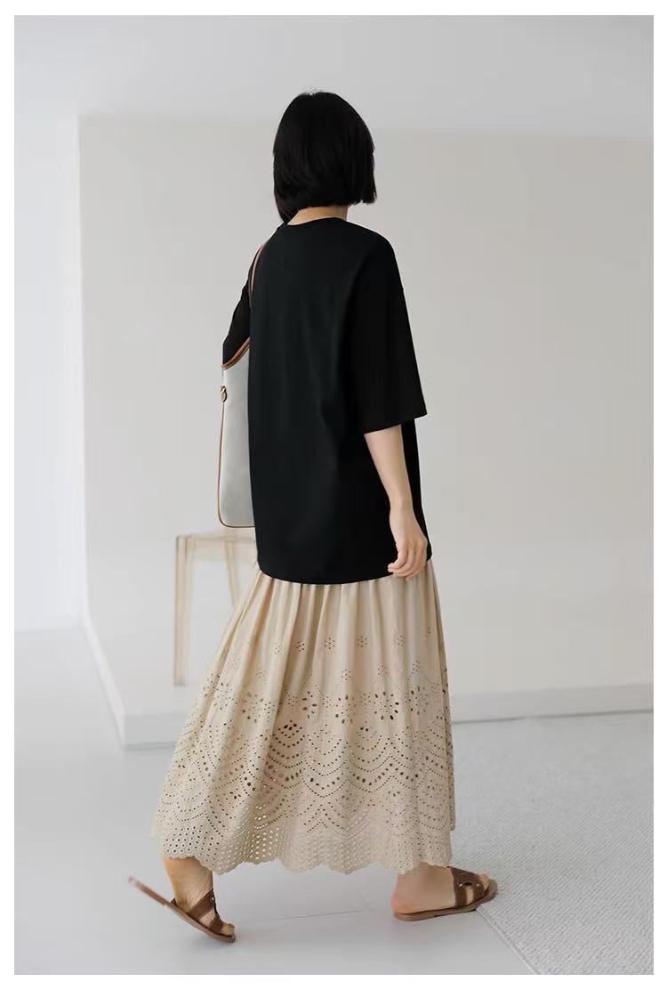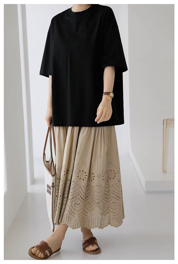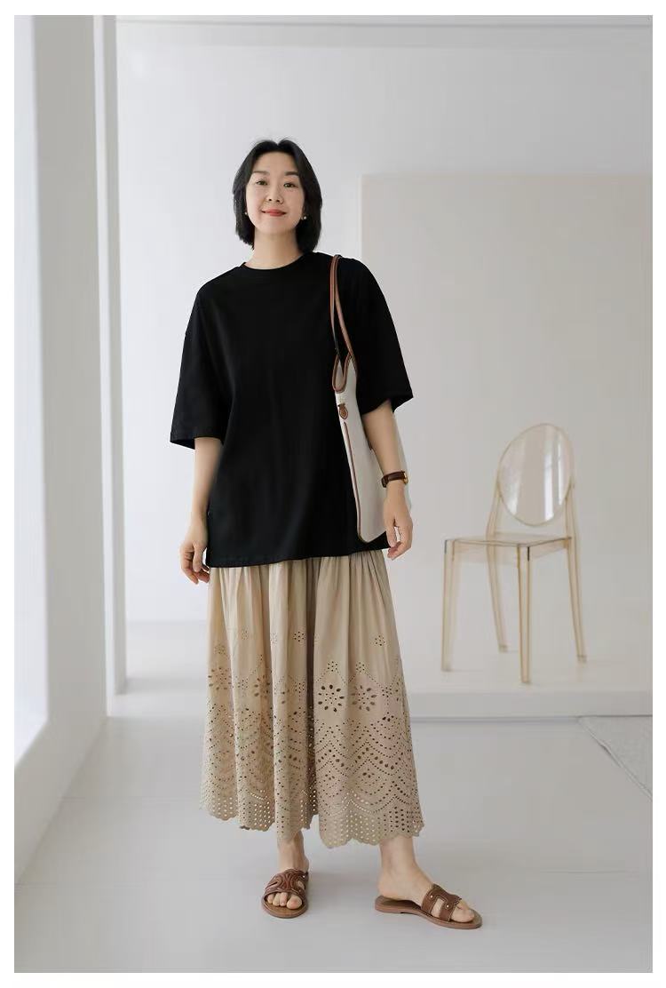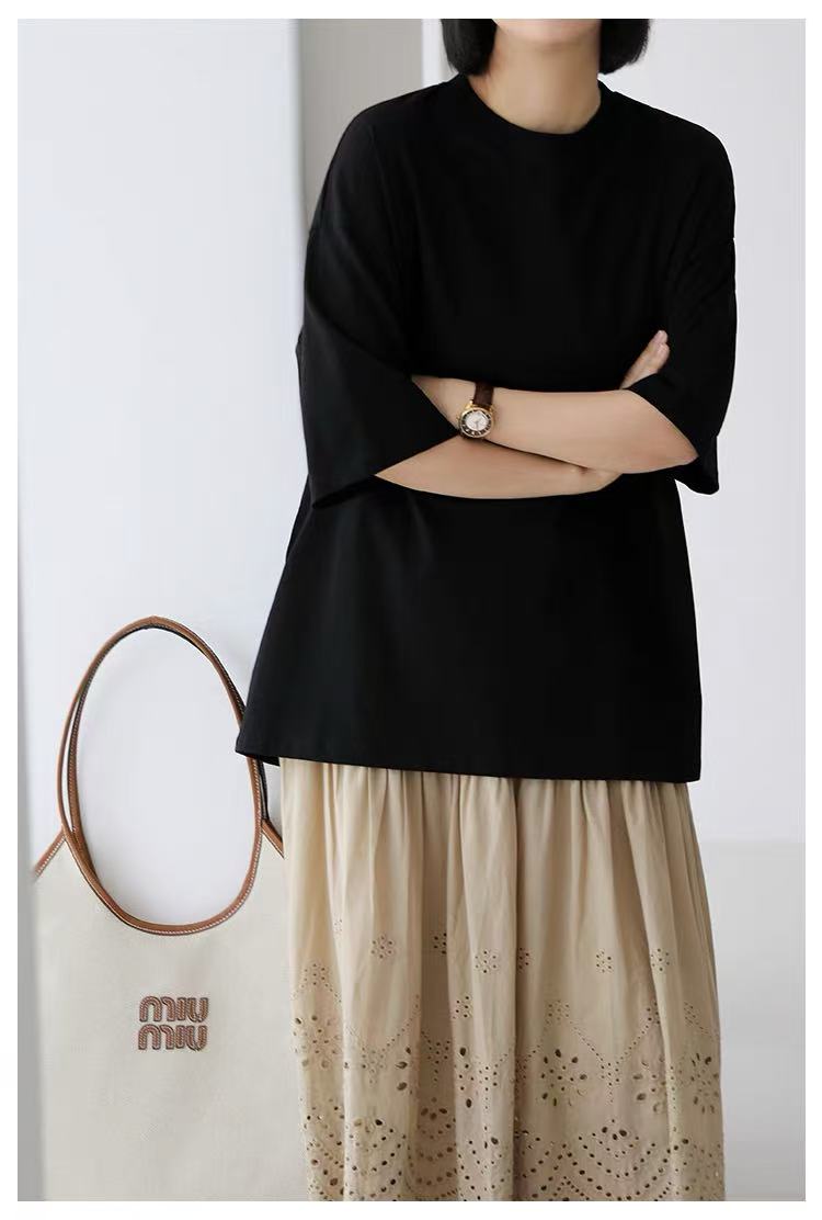 清仓价2025~(高克重-纯黑)100%棉落肩袖大版短袖T恤-喜出