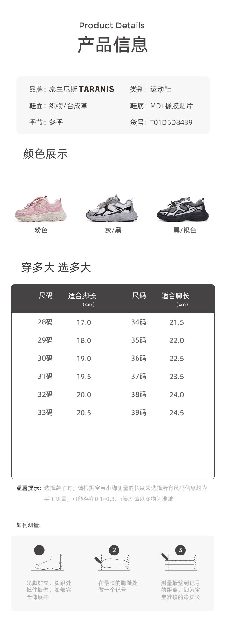 【新品】泰兰尼斯中大童冬款加绒时尚炫酷运动鞋T01D5D8439