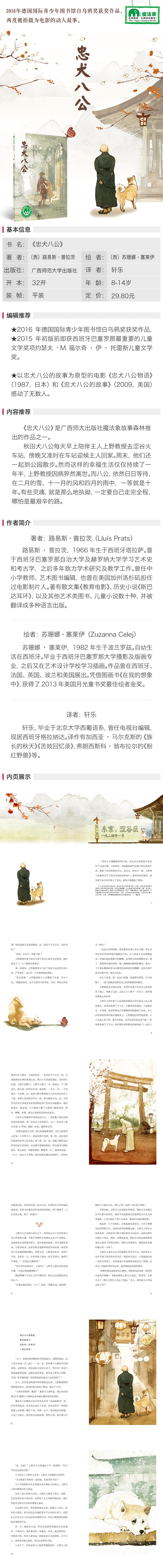 | ★2016年德国国际青少年图书馆白乌鸦奖获奖作品,2015年初版前即获西班牙巴塞罗那最重要的儿童文学奖项约瑟夫·M.福尔奇·伊·托雷斯儿童文学奖。 ★以忠犬八公的故事为原型的电影《忠犬八公物语》(1987,日本)和《忠犬八公的故事》(2009,美国)感动了无数人。 ★1994年日本文化广播网播放了一段修复的录音带,录音带中正是八公的吠声。在八公去世59年之后,上百万人再次收听了它的声音。 ★爱,在静默的时光中涌流不息。八公沉默的等待,在我们心中轰然作响——它尽其一生,感恩哪怕最短暂的相伴。 |