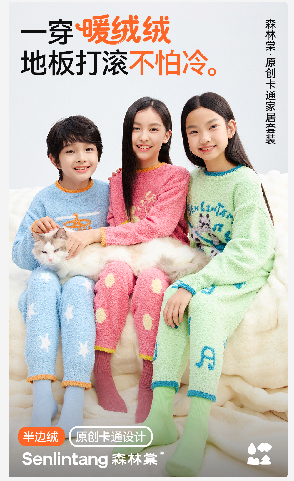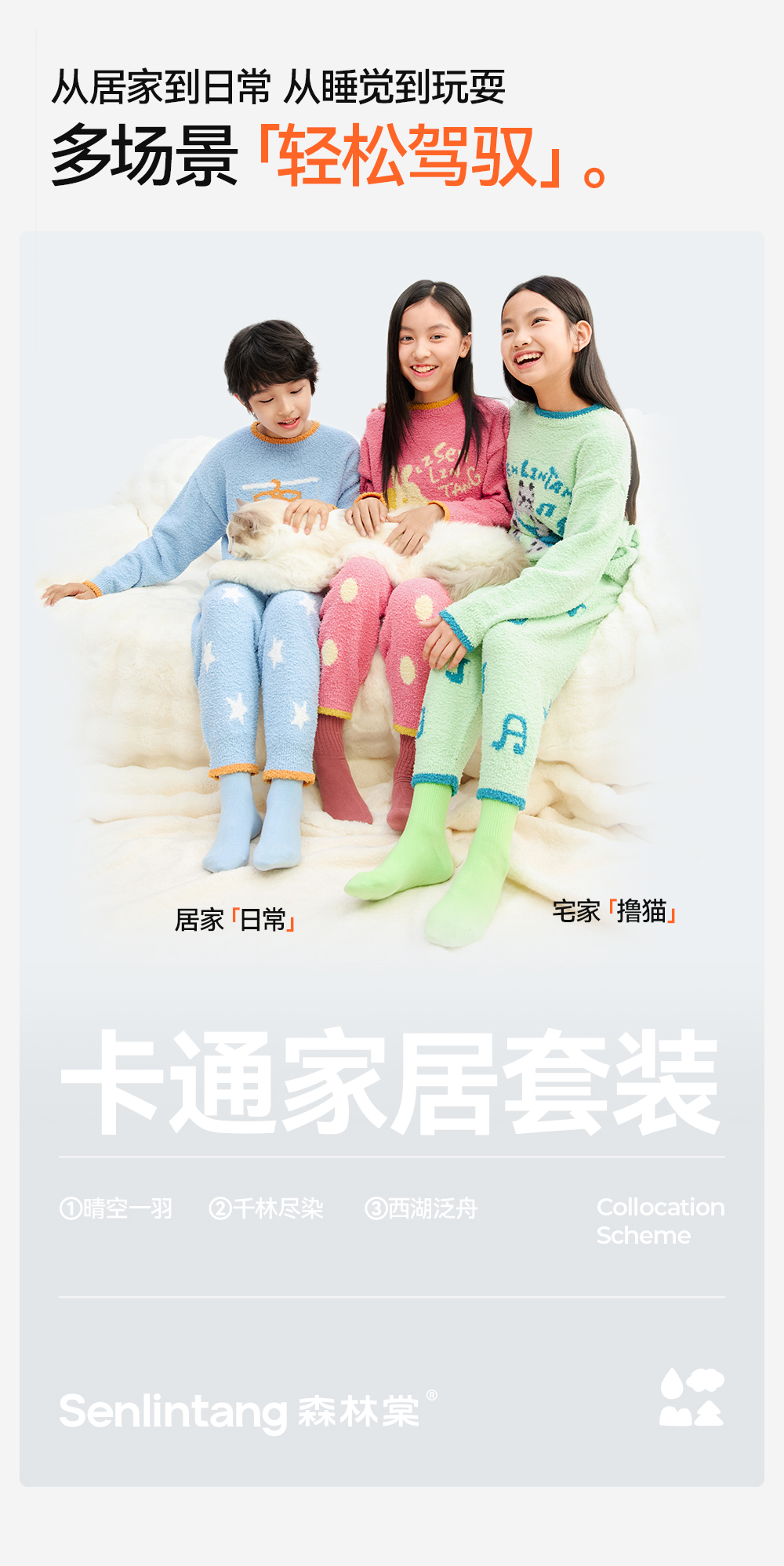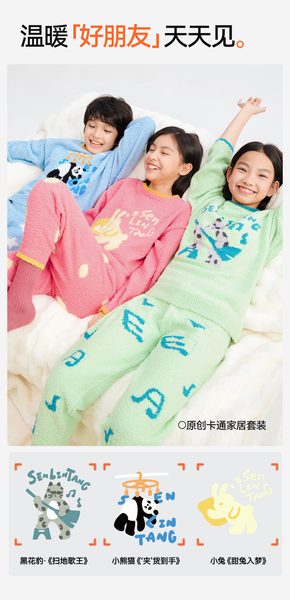 【原创卡通家居套装】森林棠25冬季新款男童女童暖绒绒保暖休闲家居服睡衣80612504