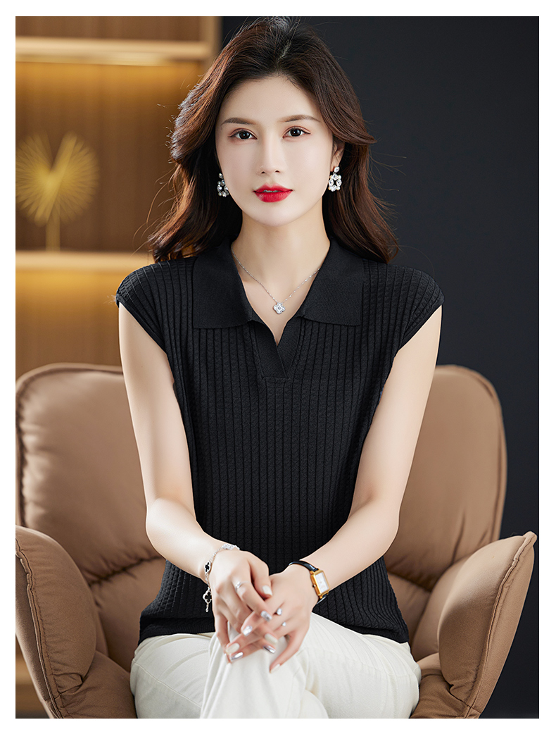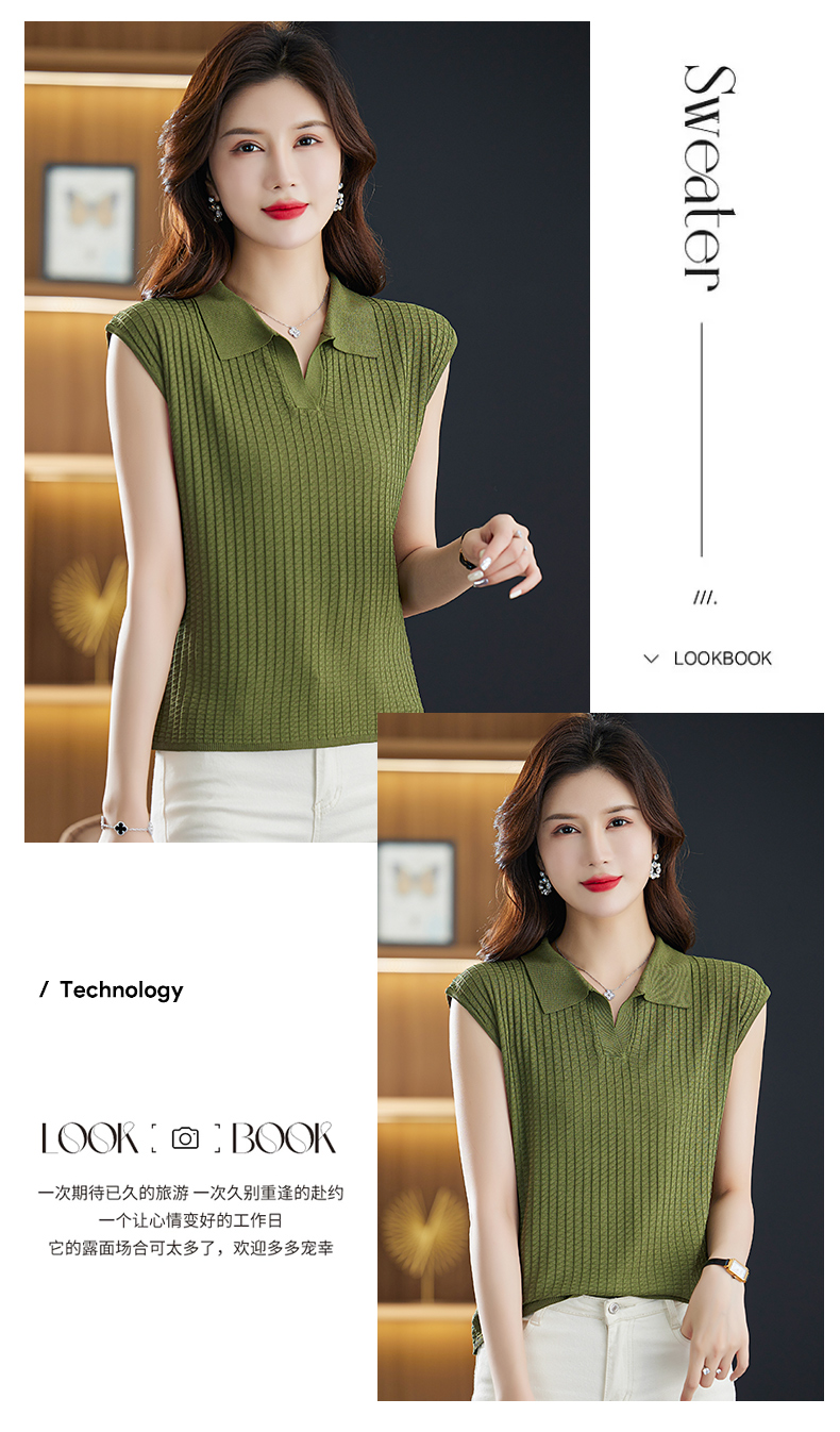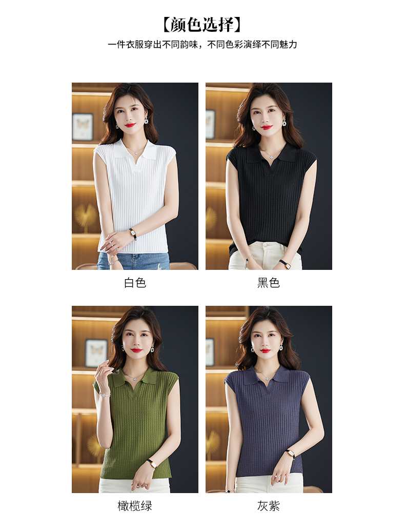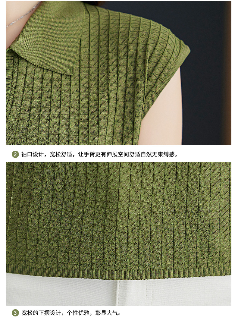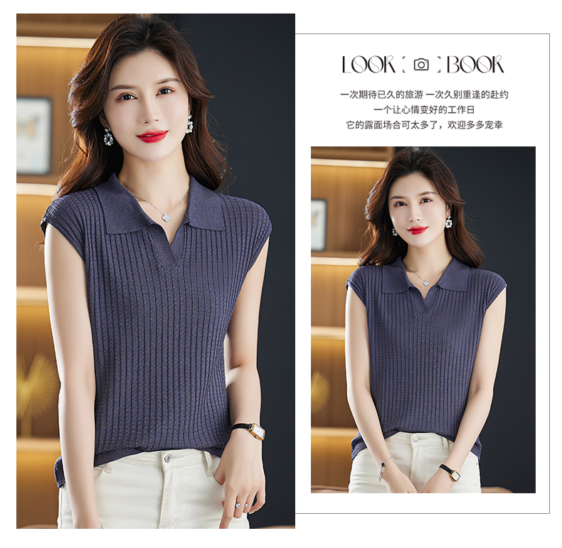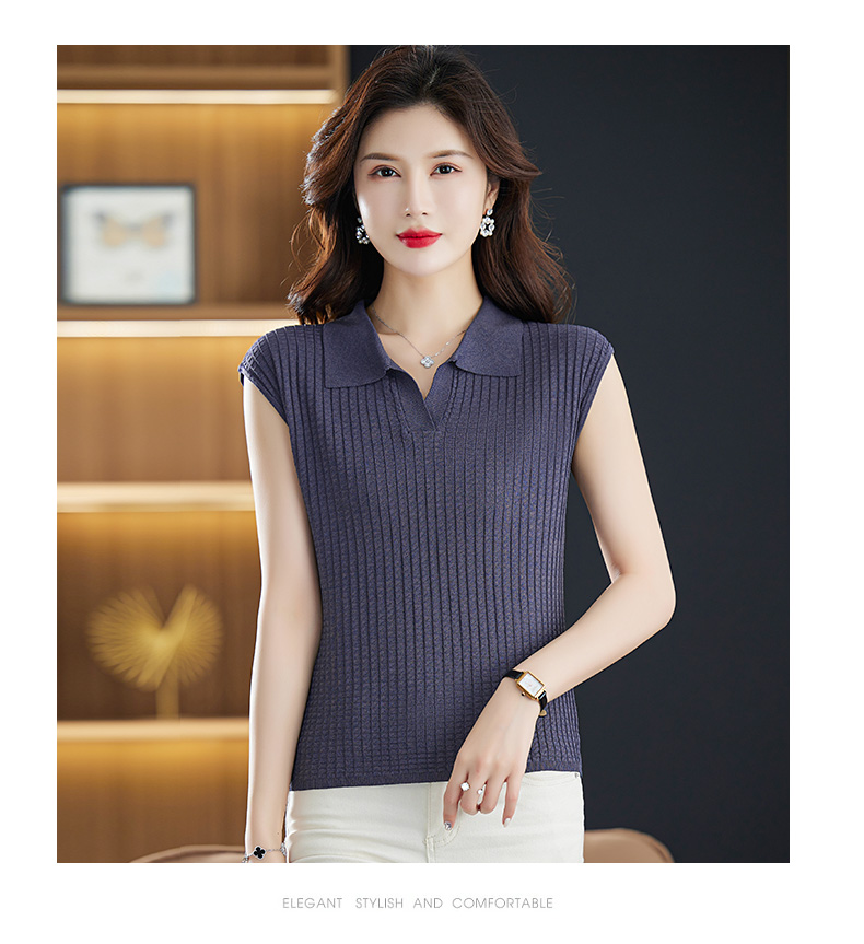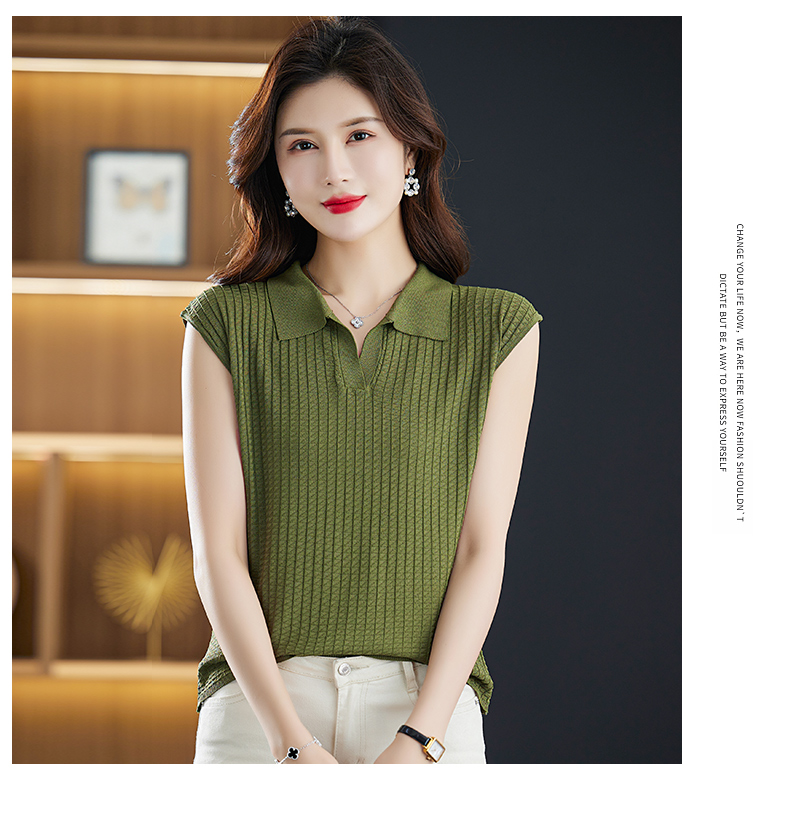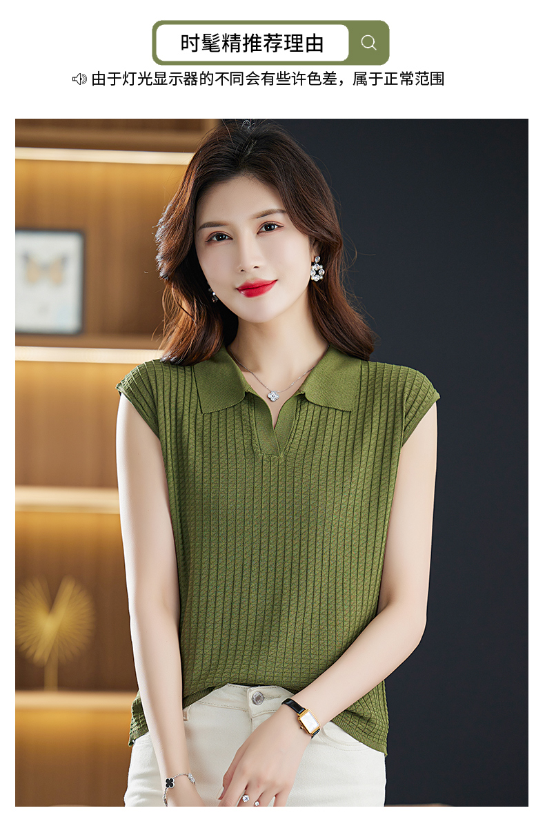 薄款翻领无袖t恤,夏季新款妈妈夏装洋气polo衫冰丝针织衫CC-89-3313