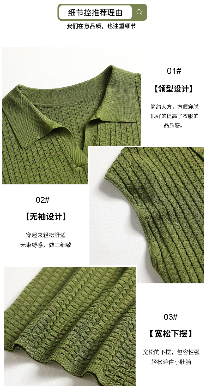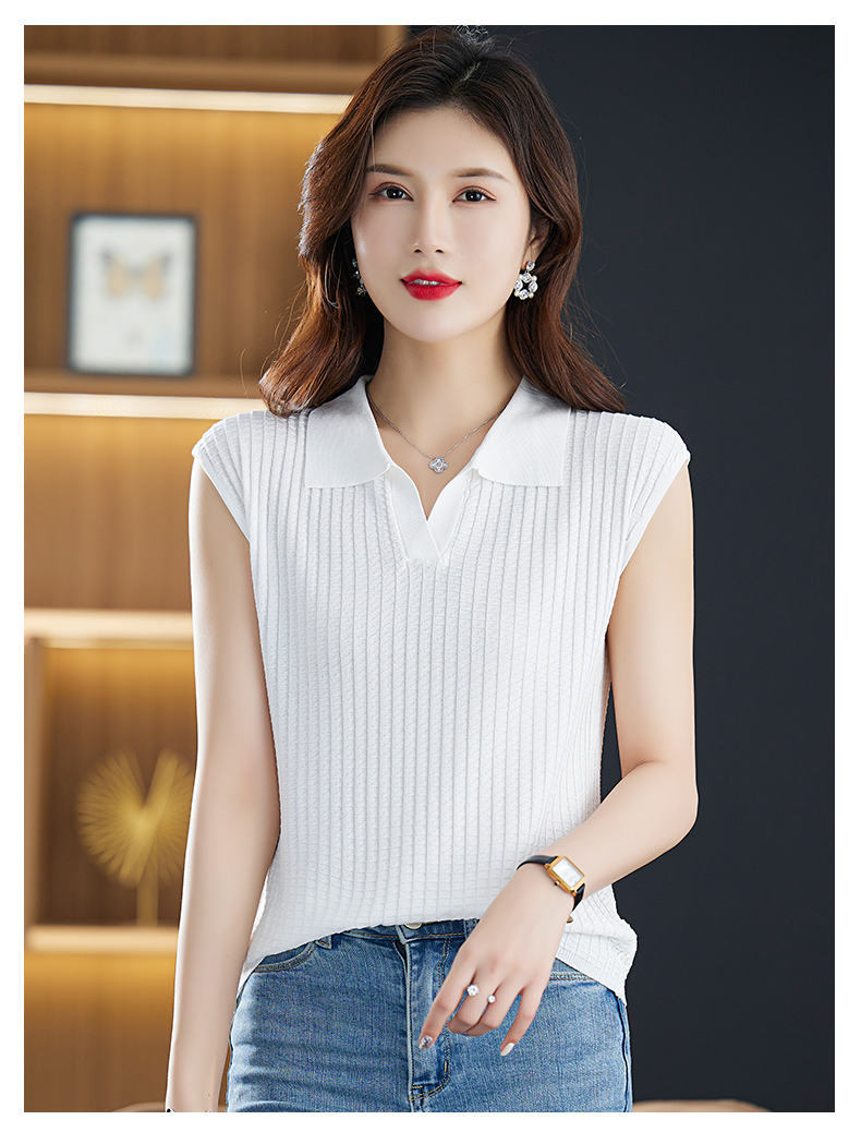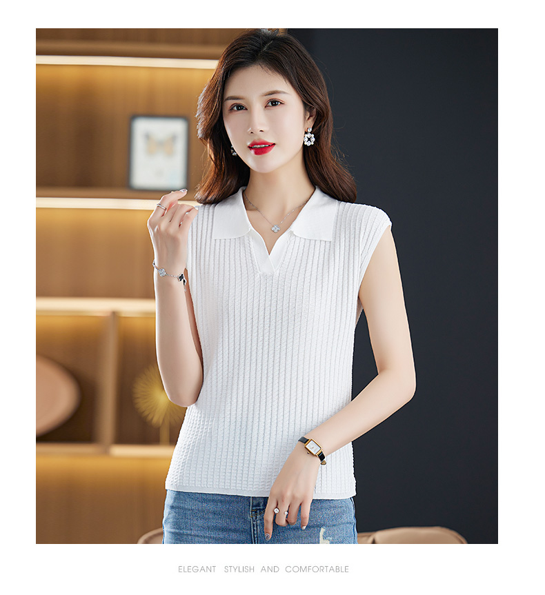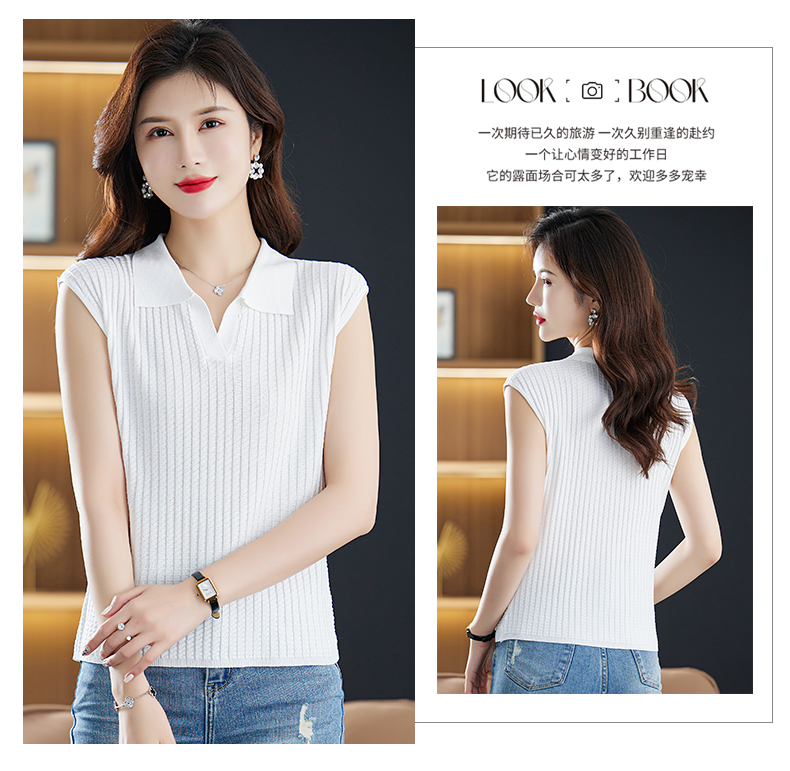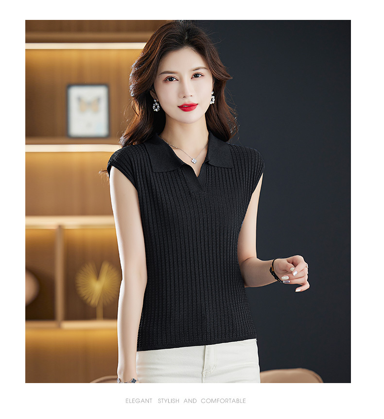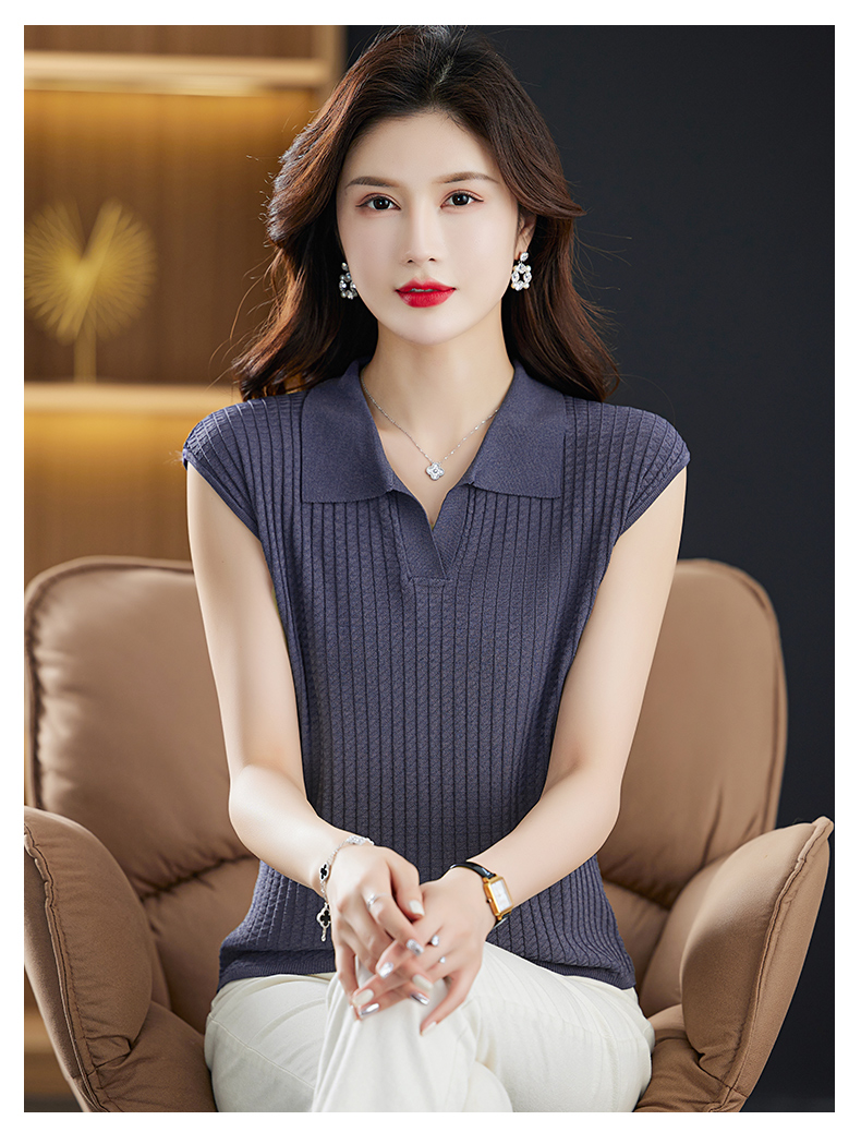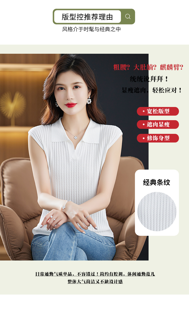 薄款翻领无袖t恤,夏季新款妈妈夏装洋气polo衫冰丝针织衫CC-89-3313