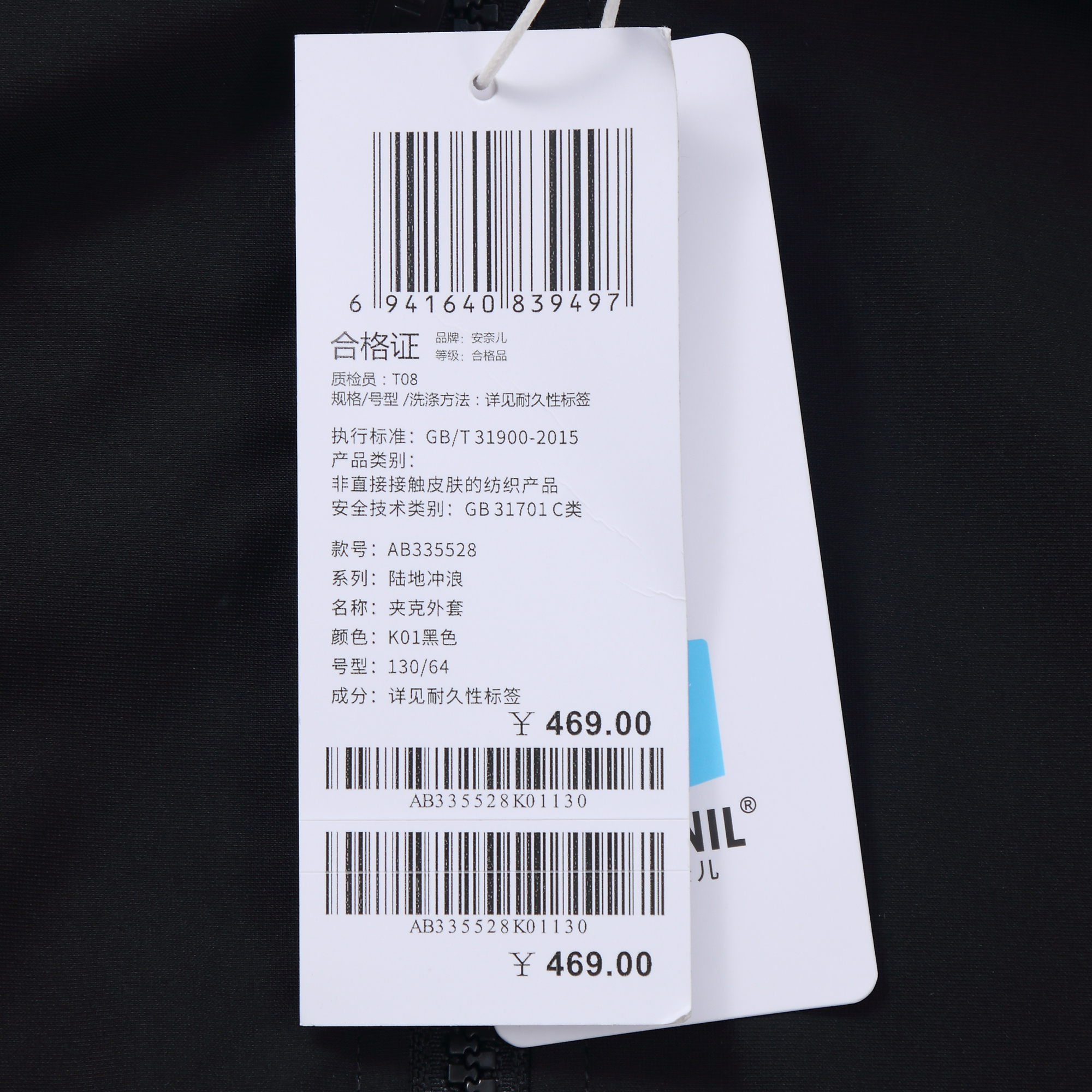 【商场同款】男童休闲运动防风夹克外套2023年秋季新款安奈儿童装AB335528