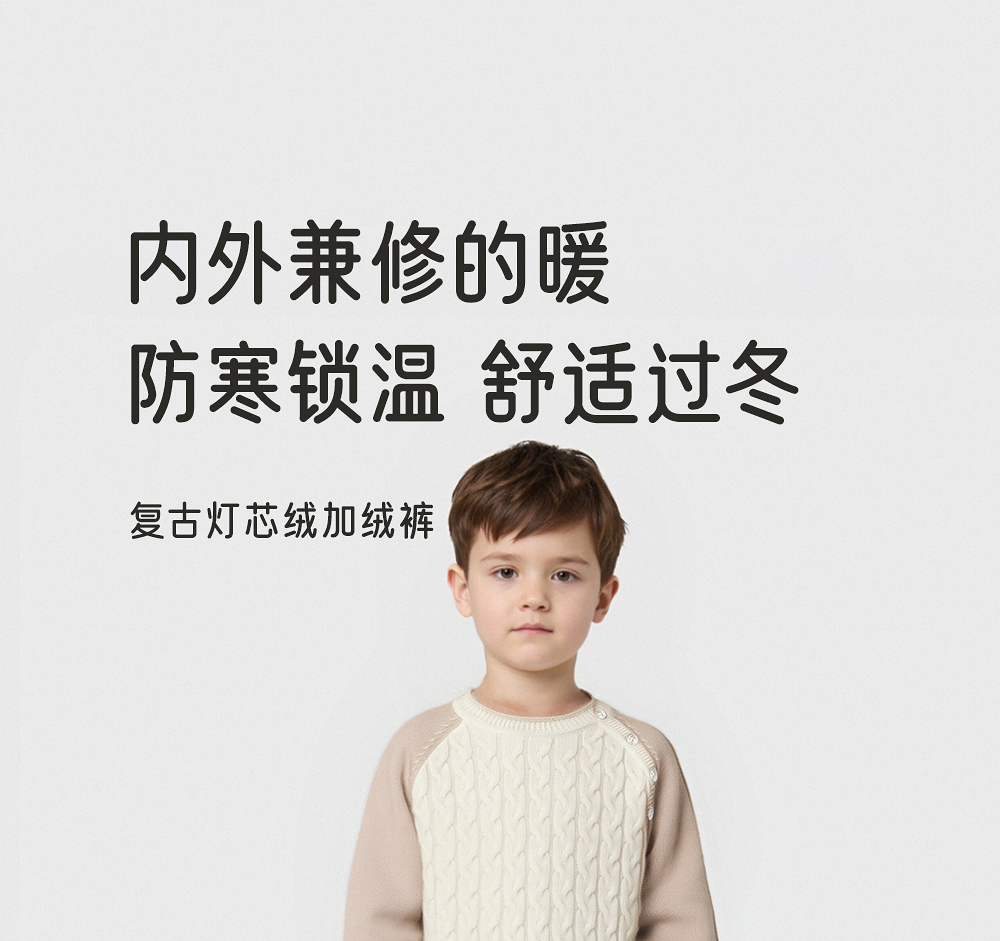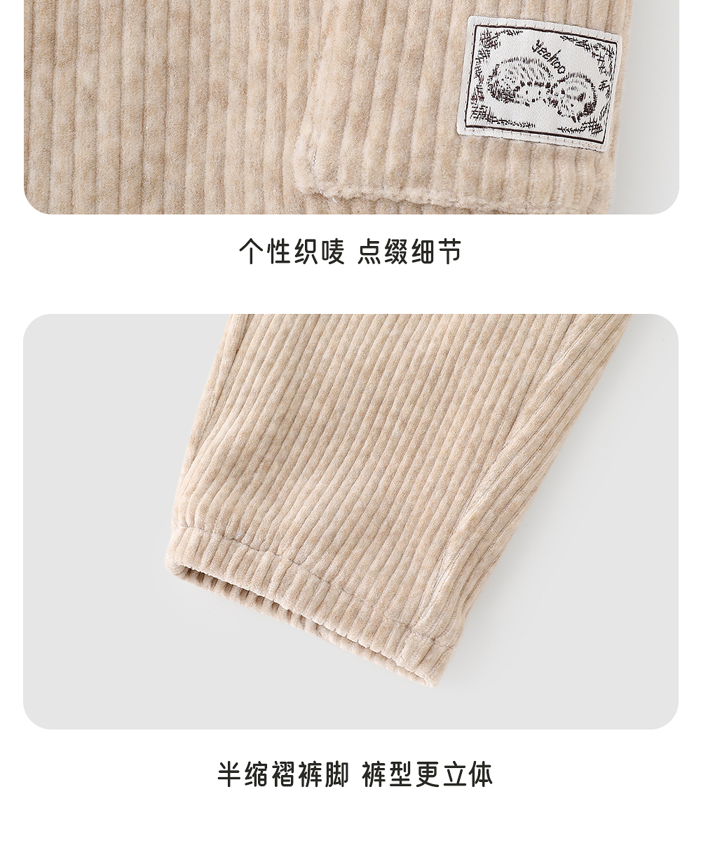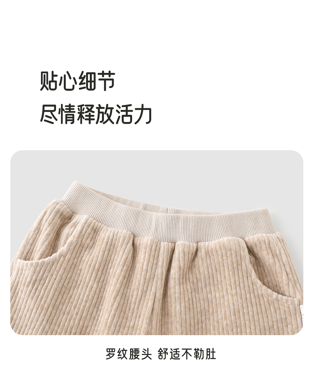【商场同款】英氏儿童裤子灯芯绒摇粒绒秋冬男童保暖防寒休闲新款