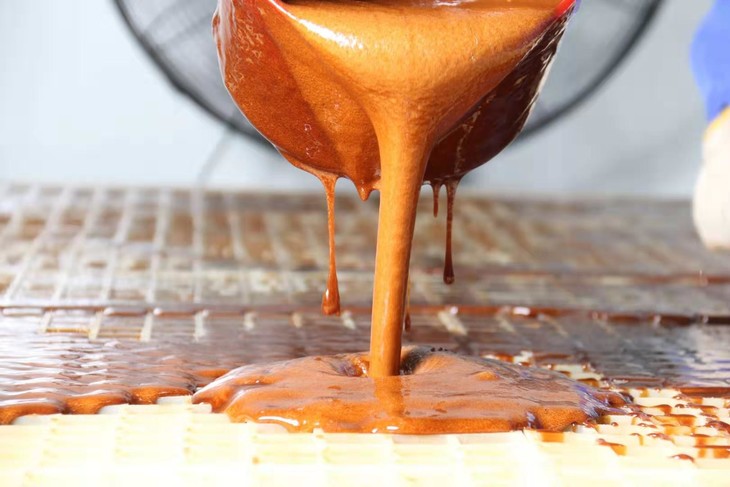 汁榨好,经过多次过滤后就上锅开始熬制。熬制过程中需要熬汤师傅不停的搅拌并根据经验换锅,起锅!