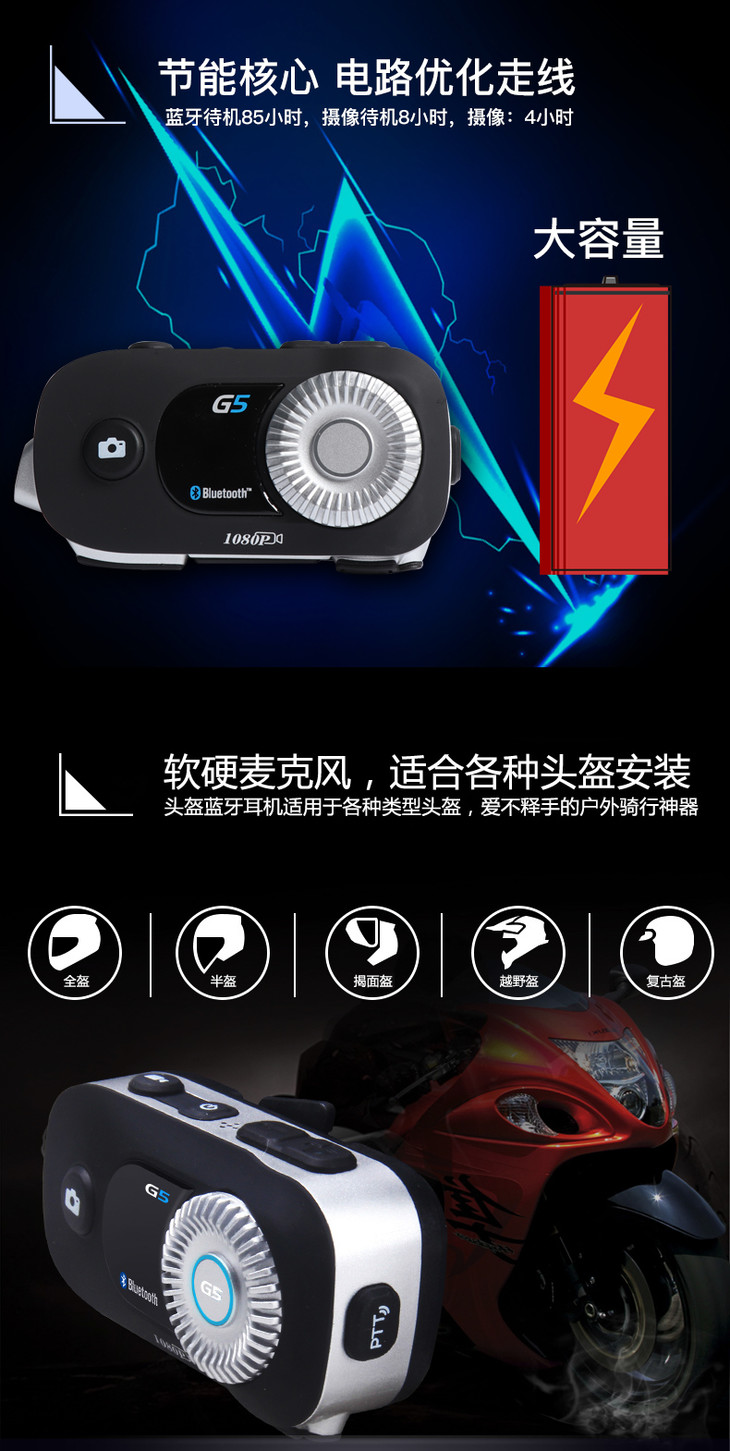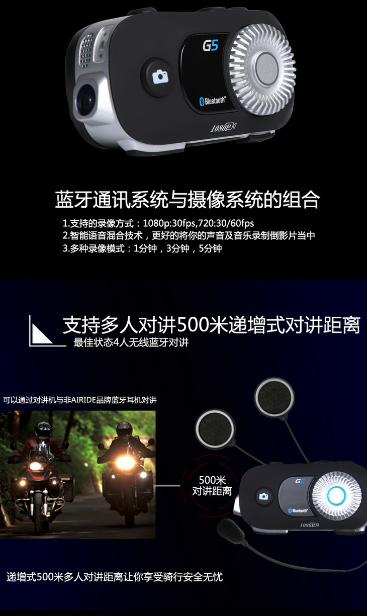 AIRIDE G5头盔耳机蓝牙行车记录仪对讲摄像一体机